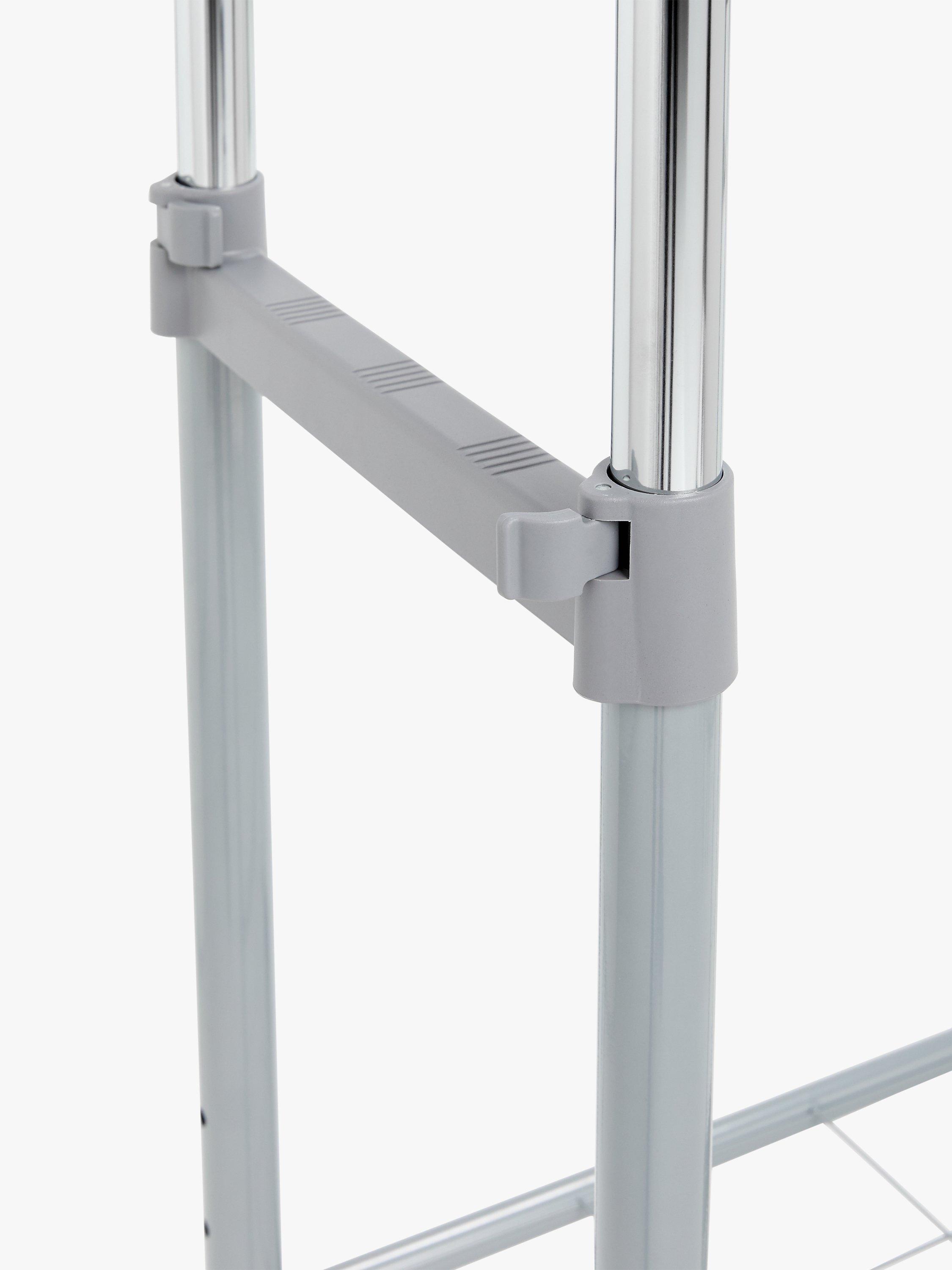Ideal for extending wardrobe space, this wheeled garment rail has two height adjustable rails (up to a maximum height of 175cm).