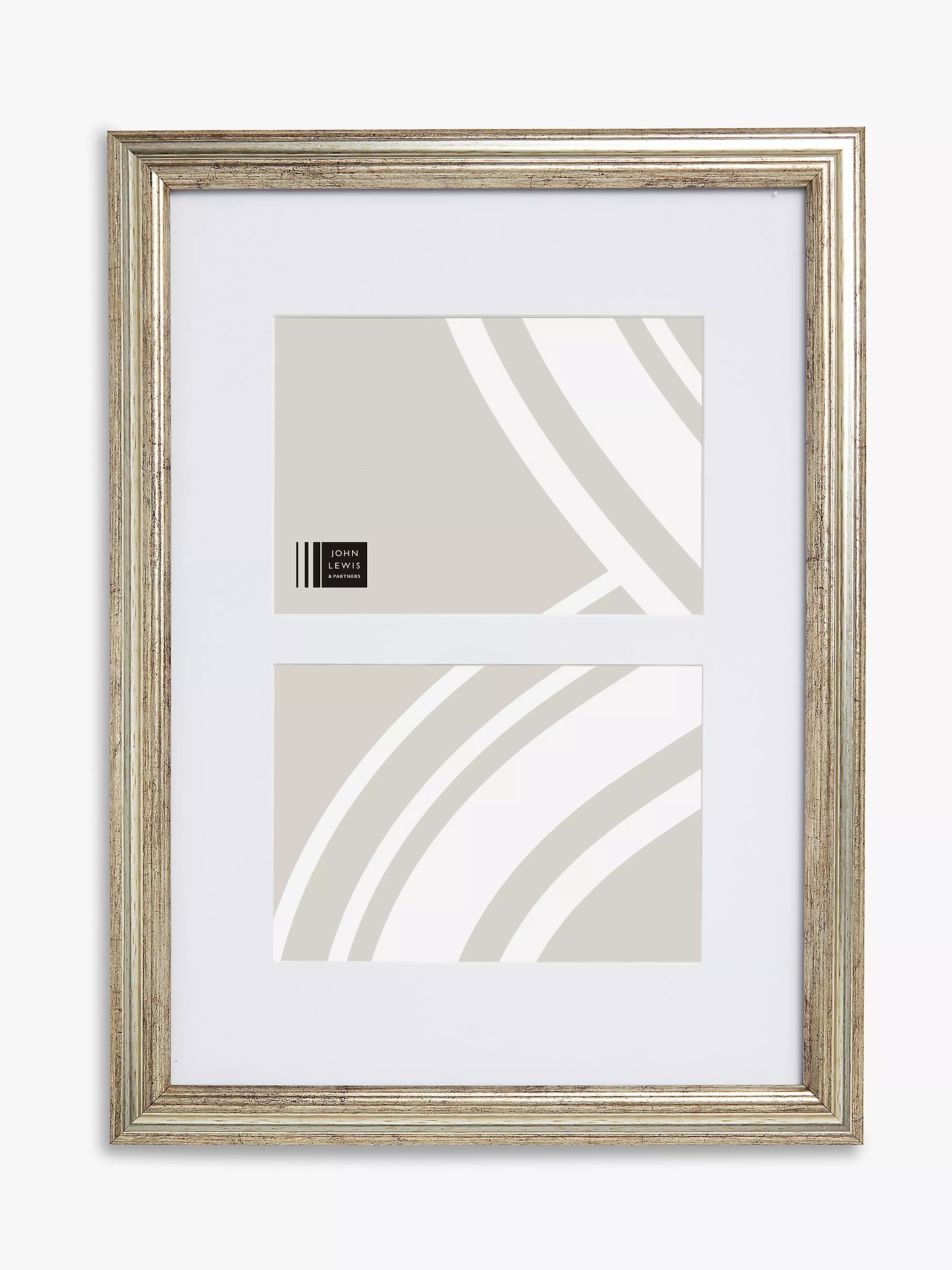 An elegant and classic double photo frame with a ribbed design in an antique finish. The frame is ready to hang on your wall, vertically or horizontally.