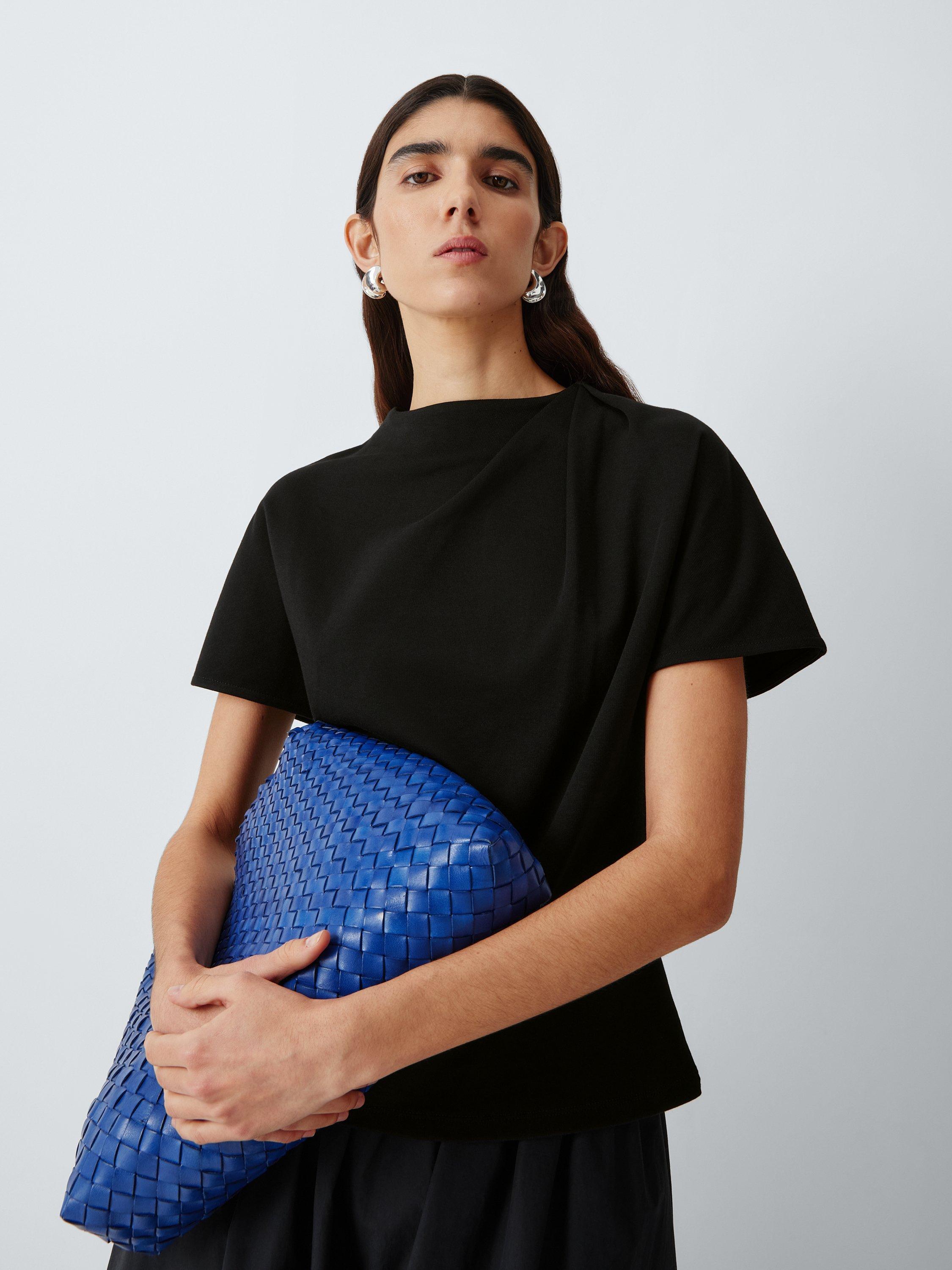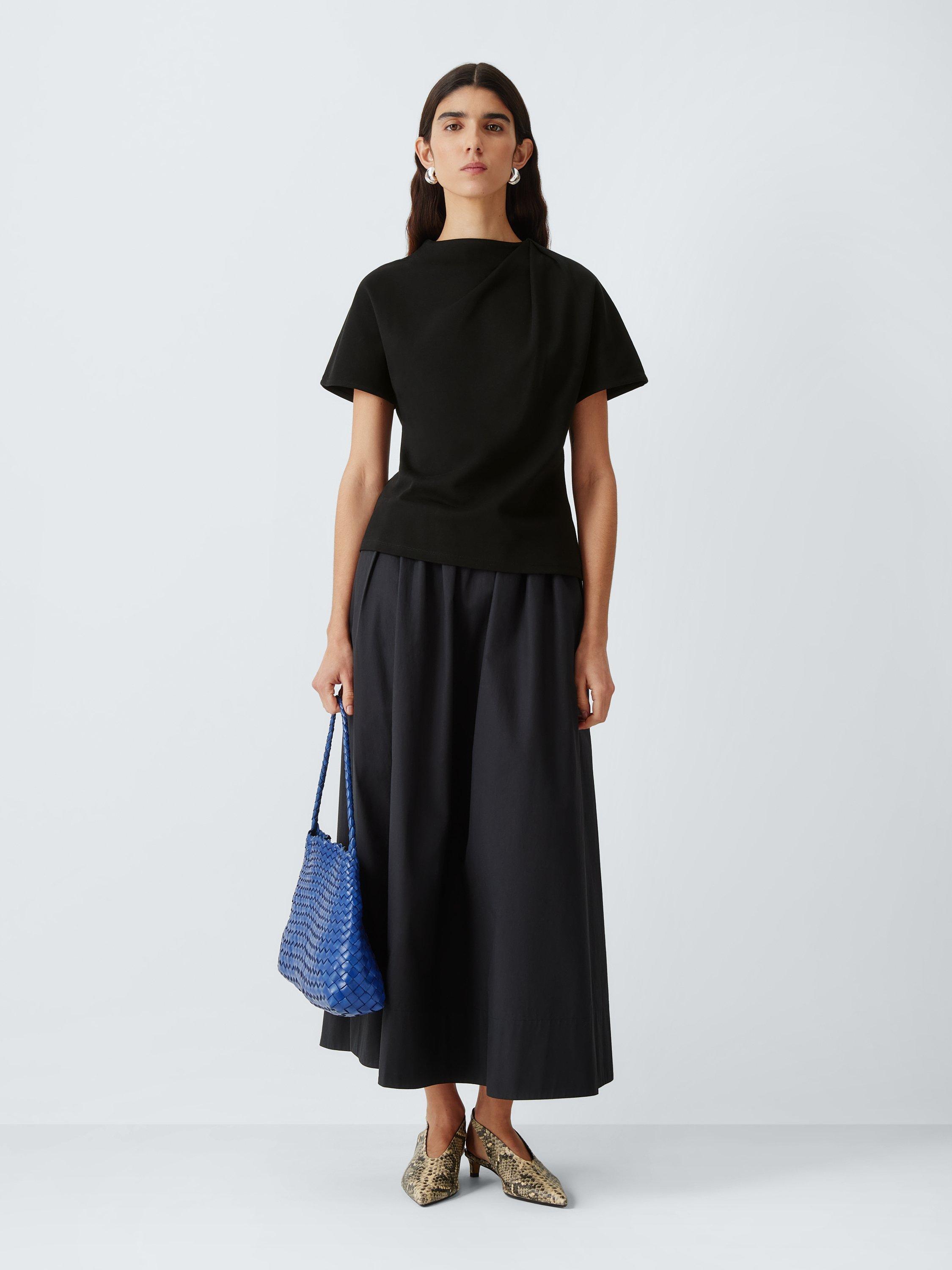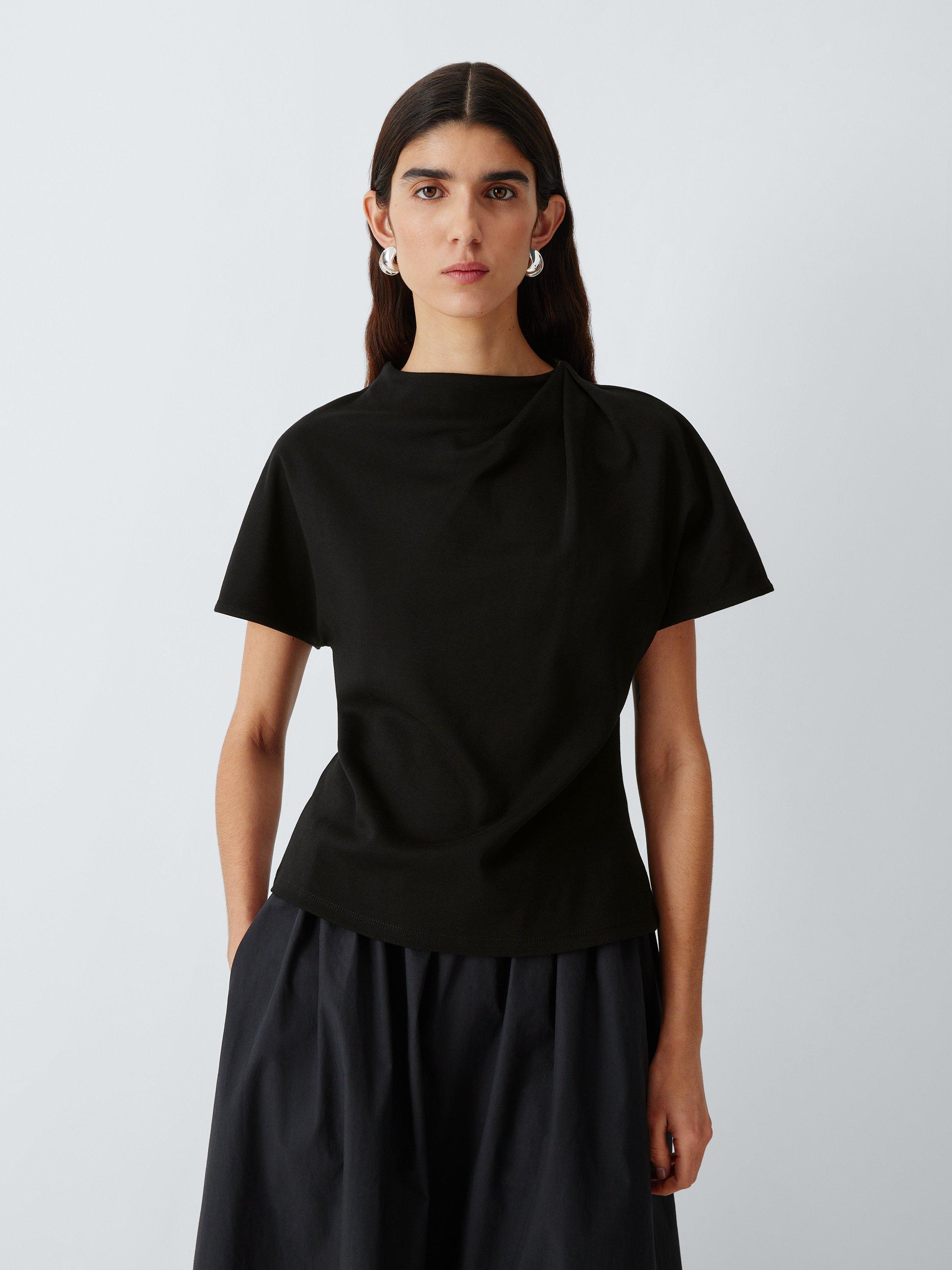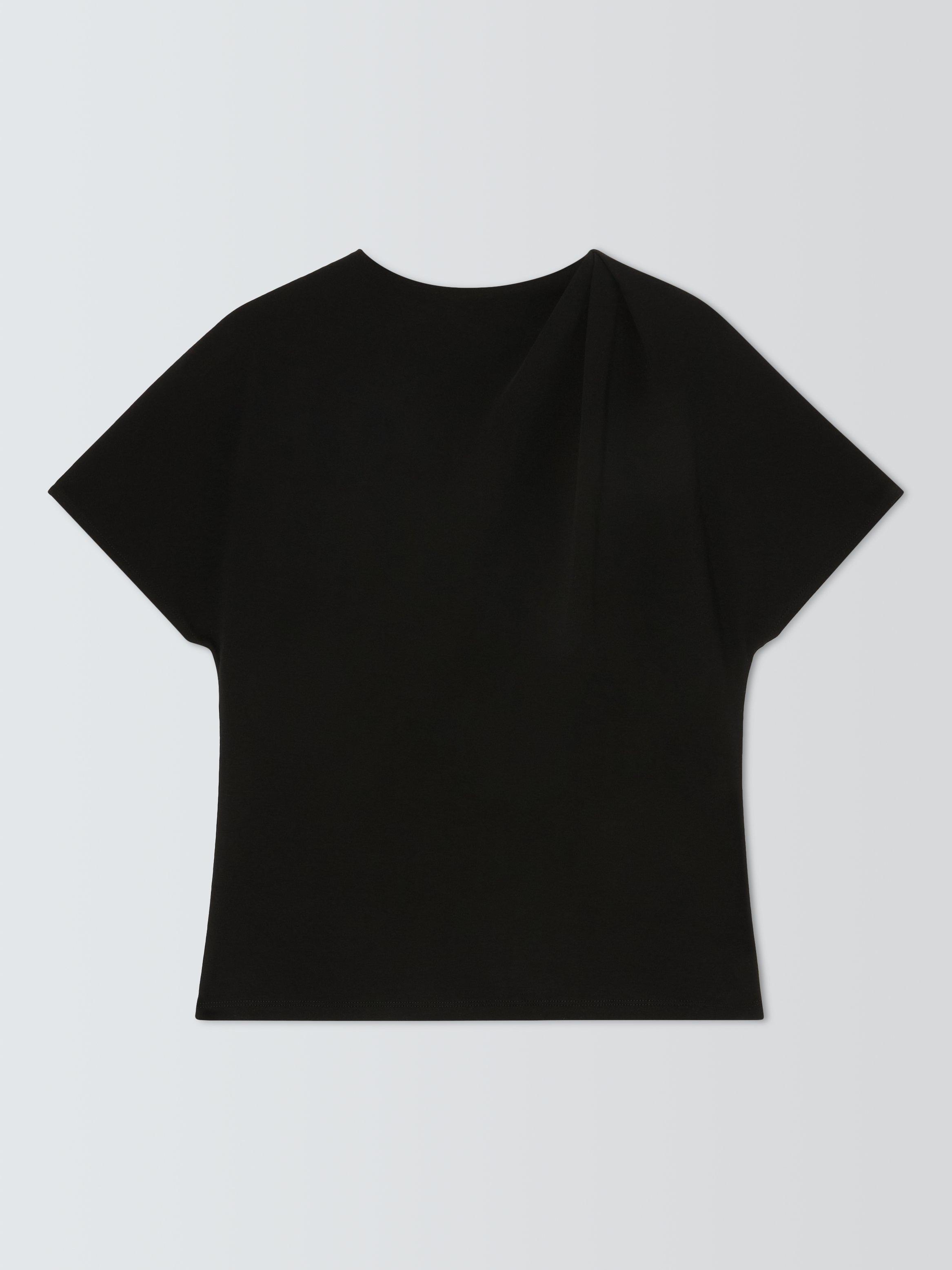 John LewisDrape Neck Short Sleeve Cotton Top, Black