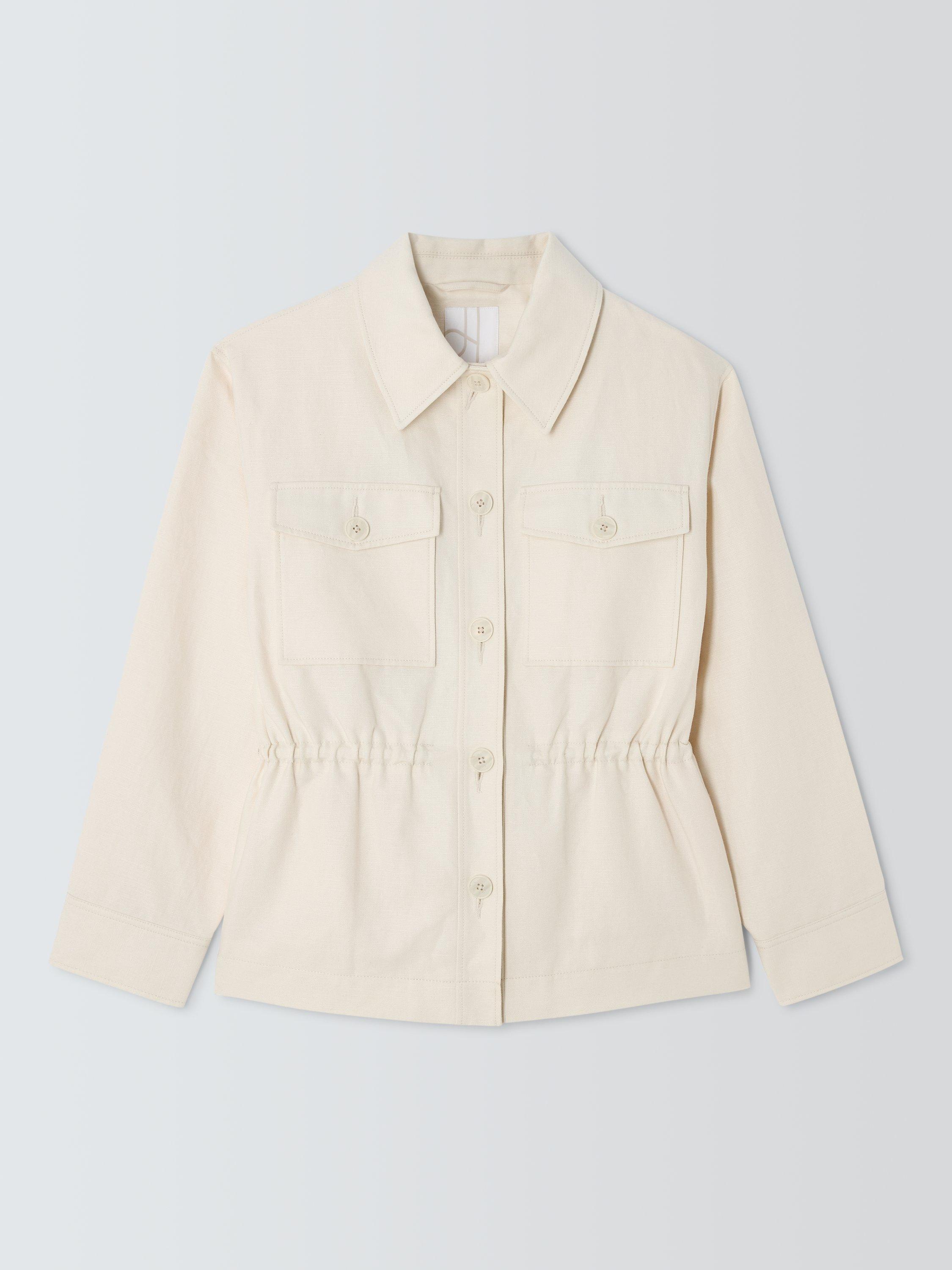 An adjustable internal drawcord on this jacket allows you to shift effortlessly between a structured, feminine silhouette and a relaxed, utilitarian look. The blend of linen and cotton provides a sophisticated tactile balance, offering the signature crispness and breathability of linen with the soft, hardwearing durability of cotton.