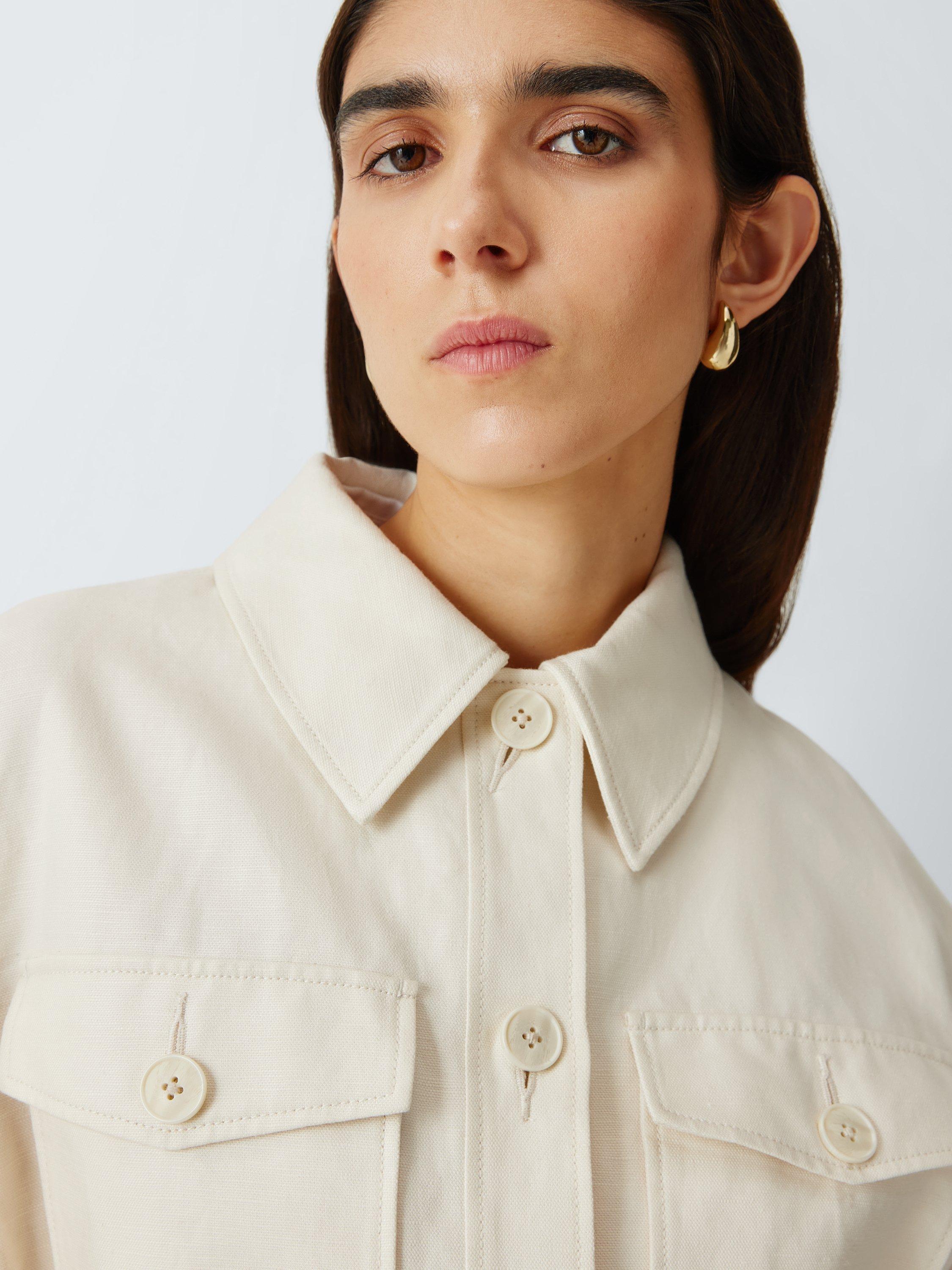 Refined workwear details, including a classic pointed collar and symmetrical chest pockets, bring a considered edge to this essential transitional layer. Designed to soften with age while retaining its shape, the lightweight fabric drapes beautifully over summer dresses or fine knits.