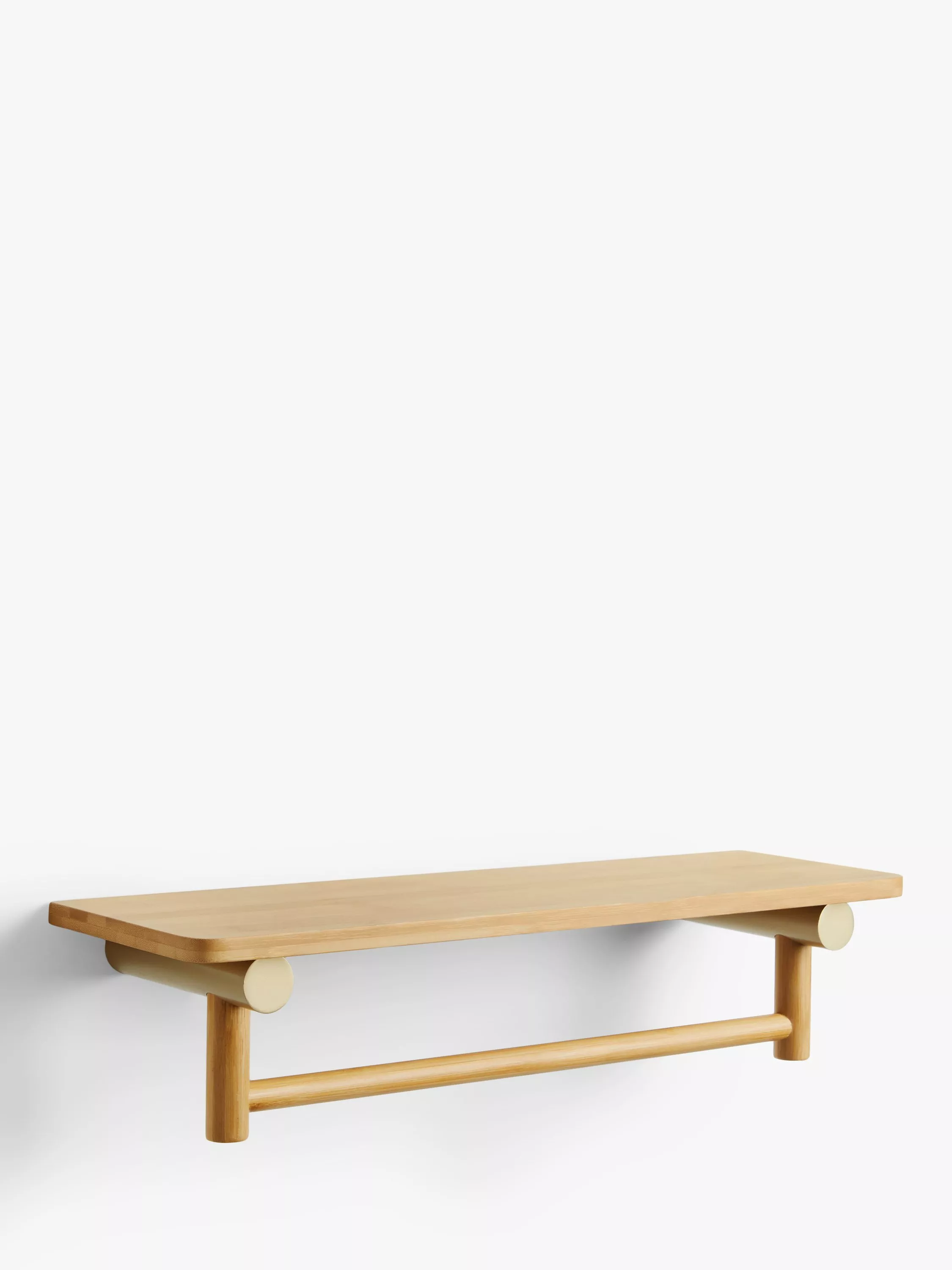 Bamboo is a particularly popular material to use in the bathroom as its organic nature and light colouring brings an instant zen feeling, so we've used it as the main material for this shelf and towel rail bar. Brass-finish supports bring the whole piece together, complementing the bamboo in colour whilst also adding a vintage touch.