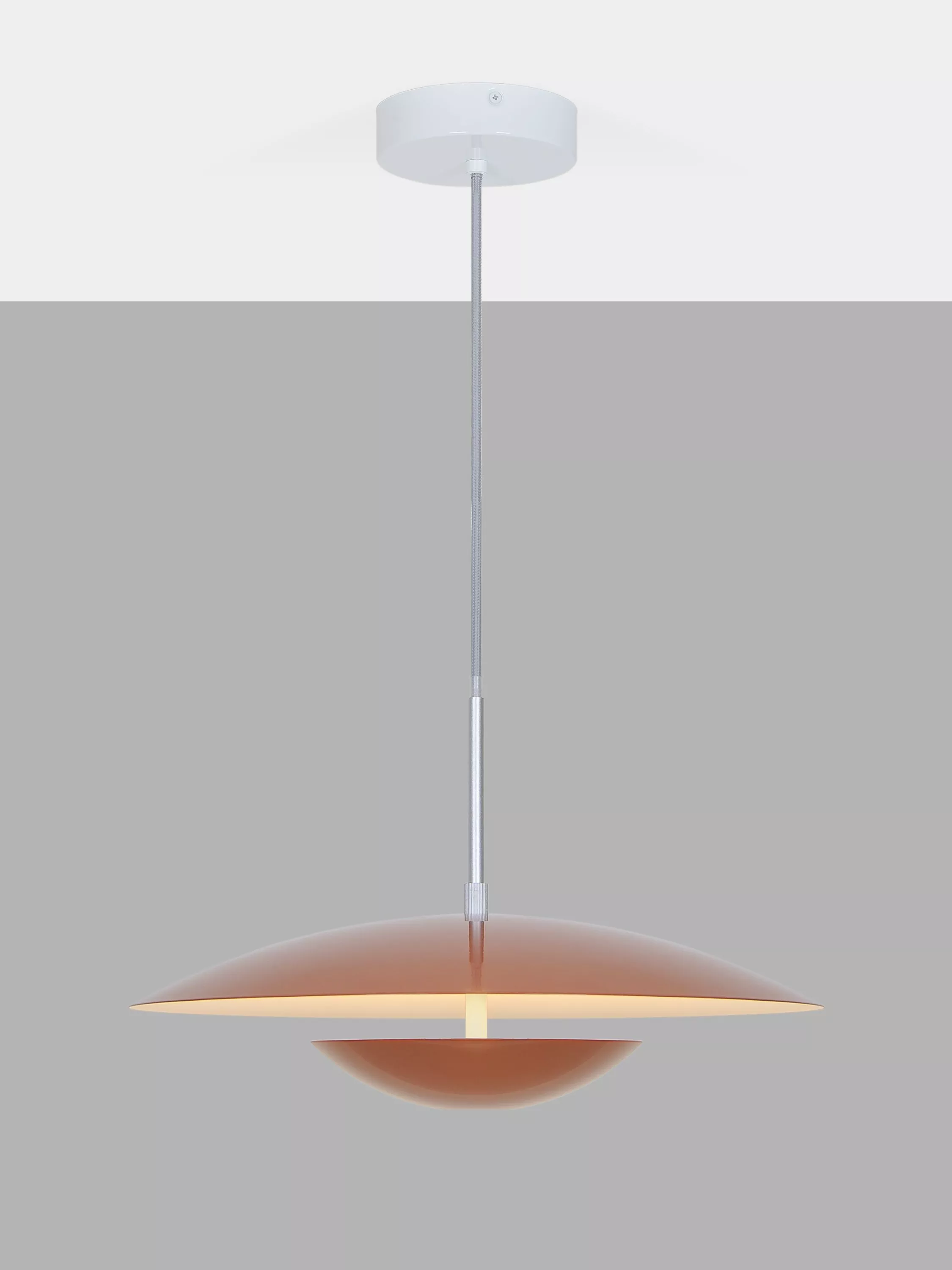 Made from steel and finished in extra glossy paint, it has a contemporary slimline profile. The drop is easily adjustable from the ceiling cover to suit your space.