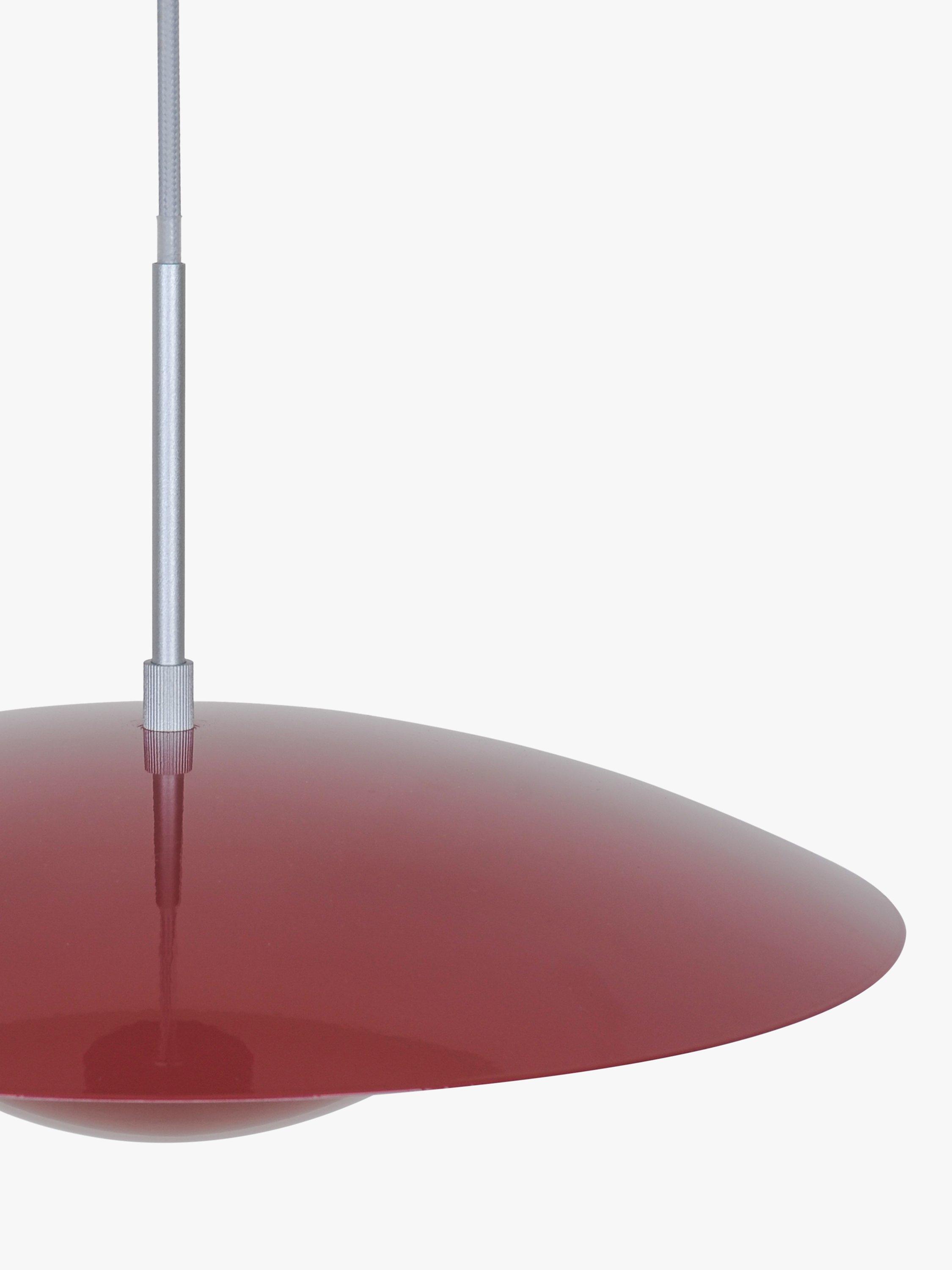 Made from steel and finished in extra glossy paint, it has a contemporary slimline profile. The drop is easily adjustable from the ceiling cover to suit your space.