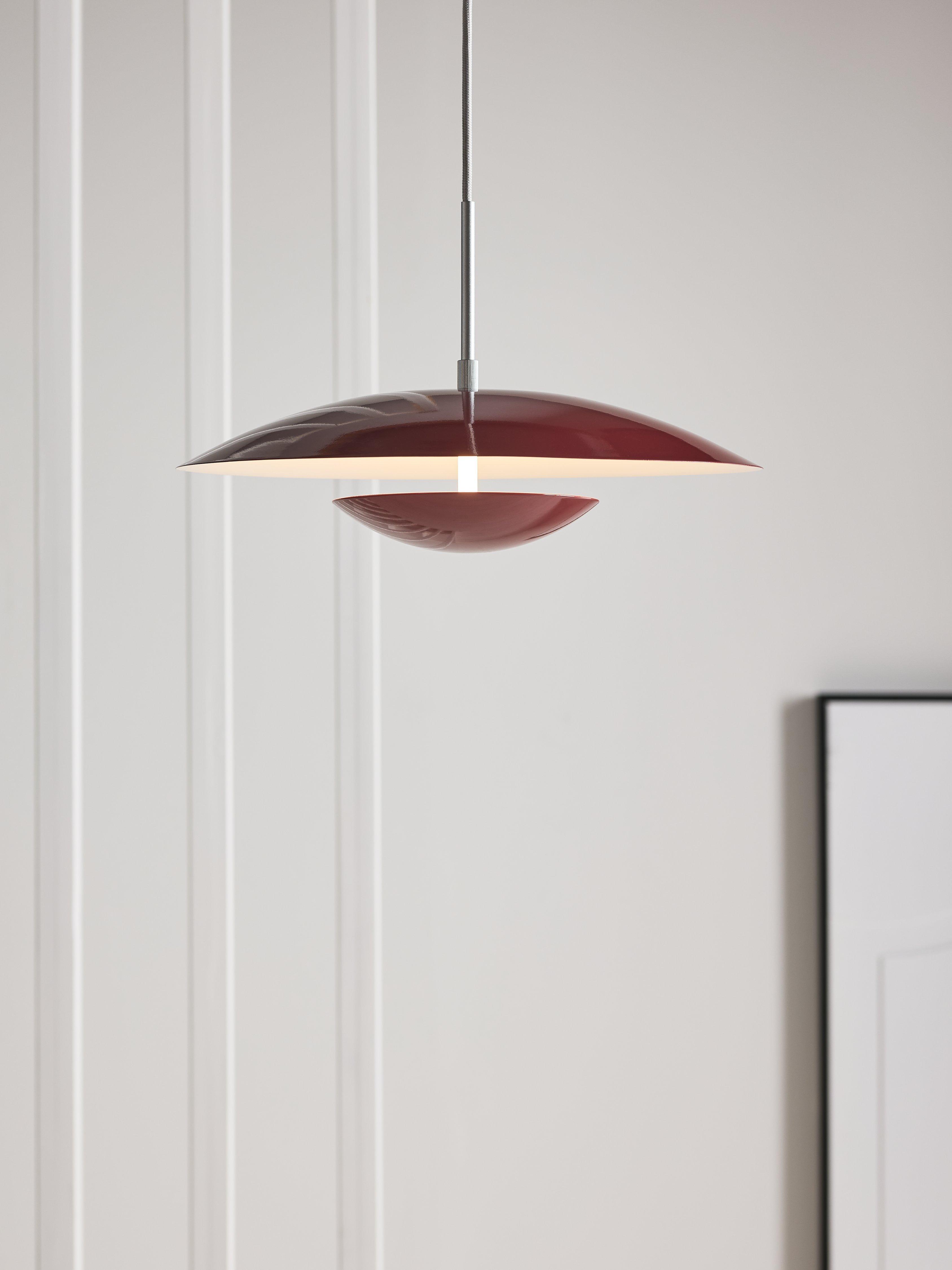 Add a splash of style to your home with this Scandinavian-inspired integrated LED pendant. A modern silhouette that creates a focal point in any room, Duomo features a large domed shade with a smaller inverted dome underneath.