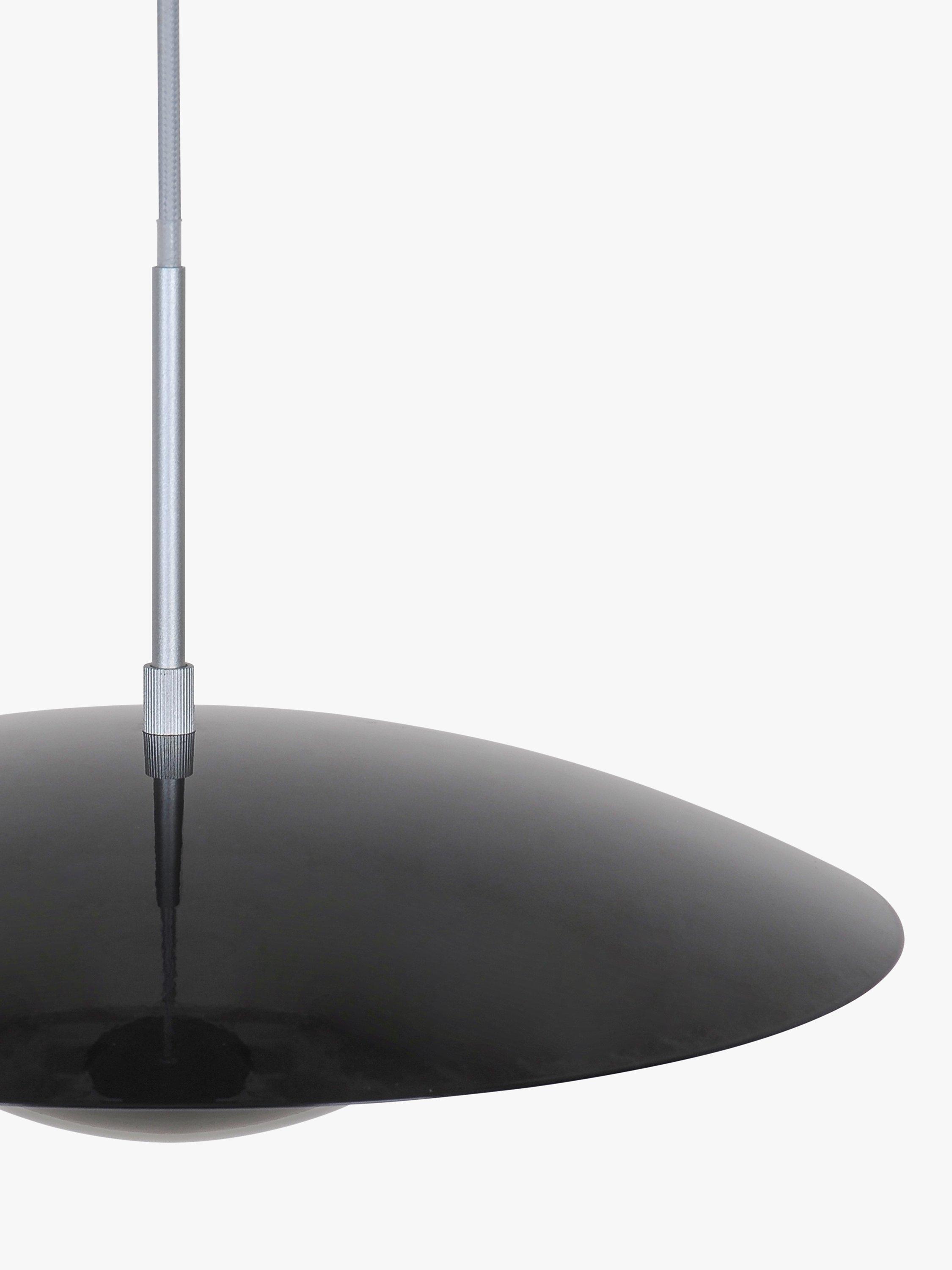 Made from steel and finished in extra glossy paint, it has a contemporary slimline profile. The drop is easily adjustable from the ceiling cover to suit your space.