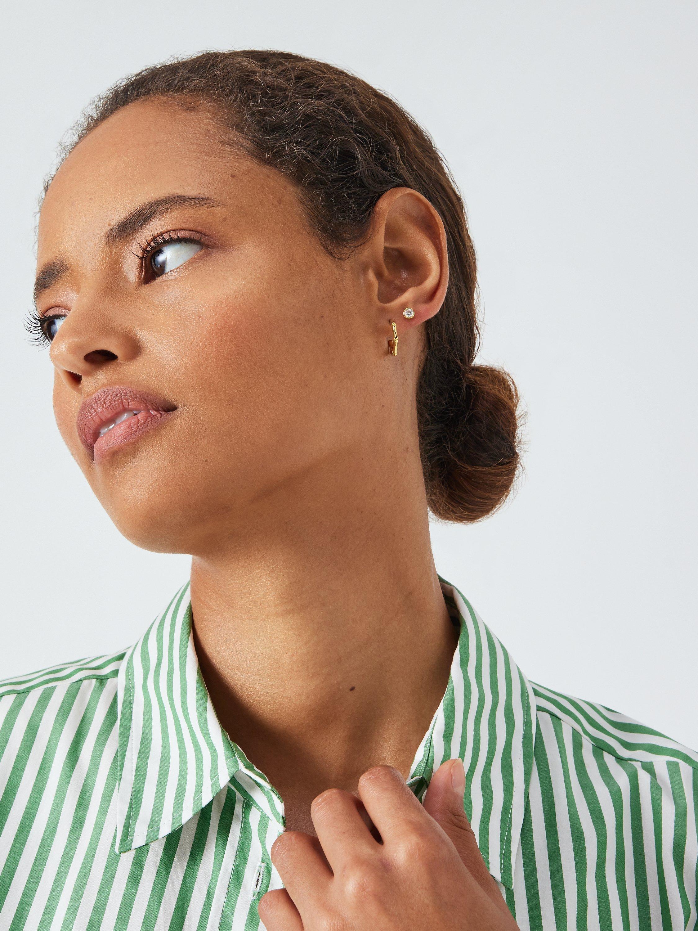 Beautiful in its simplicity, these hoop earrings from our Earring Edit range feature an elegant bamboo style detailing. Secured with post fittings, these earrings are for pierced ears only.