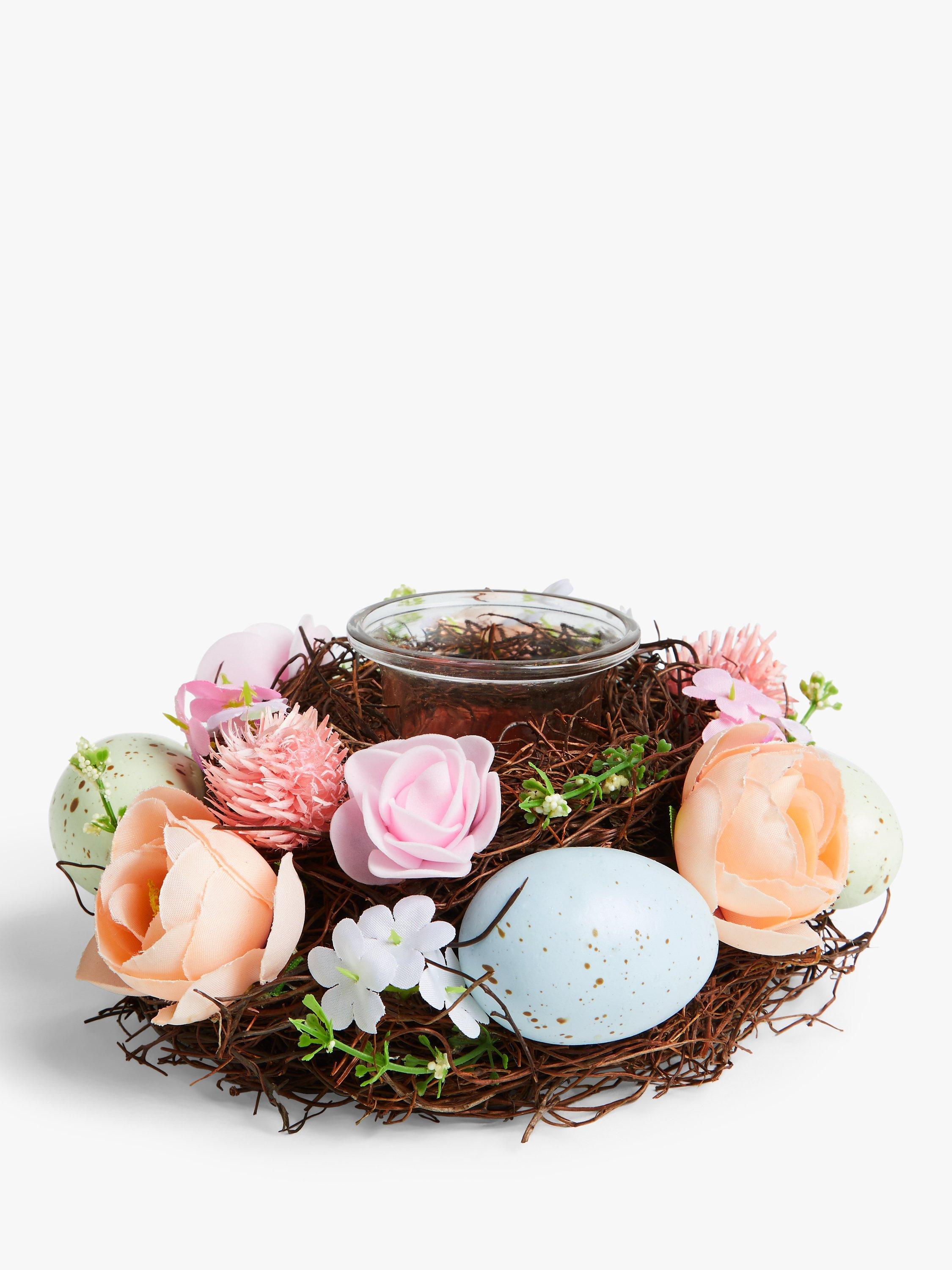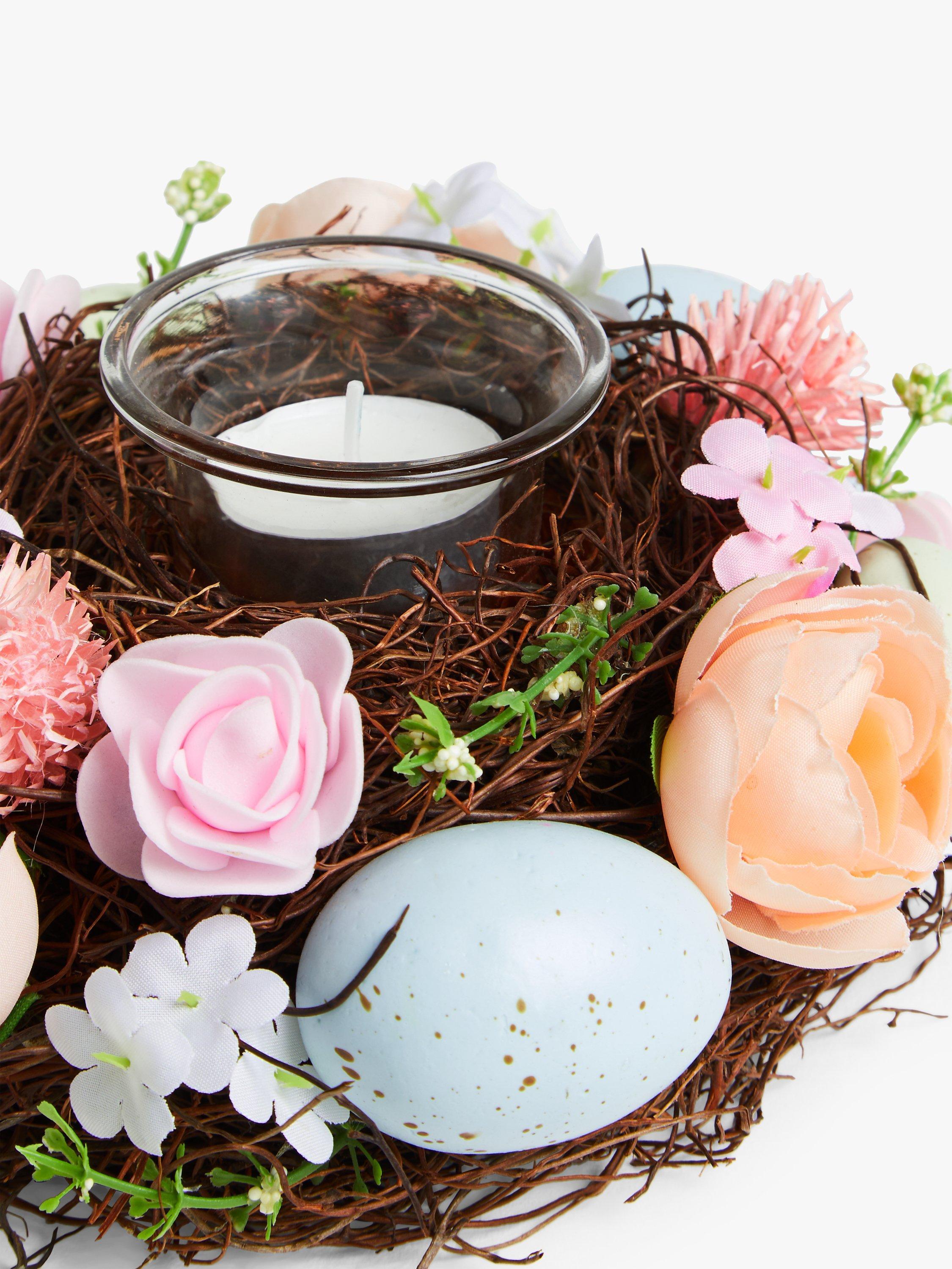 Decorated with speckled eggs and flowers, this tealight holder will make a pretty centrepiece for your Easter table.
