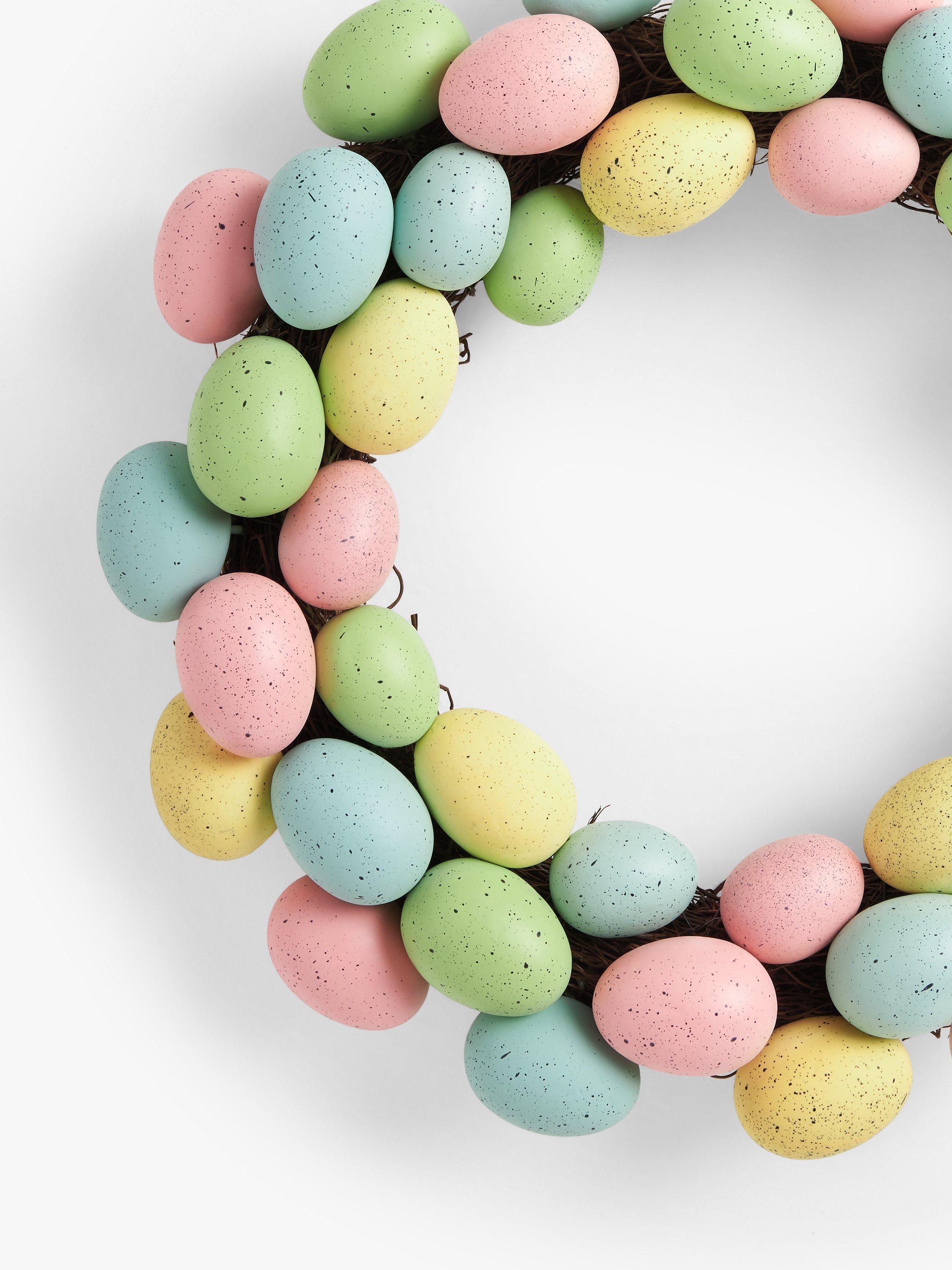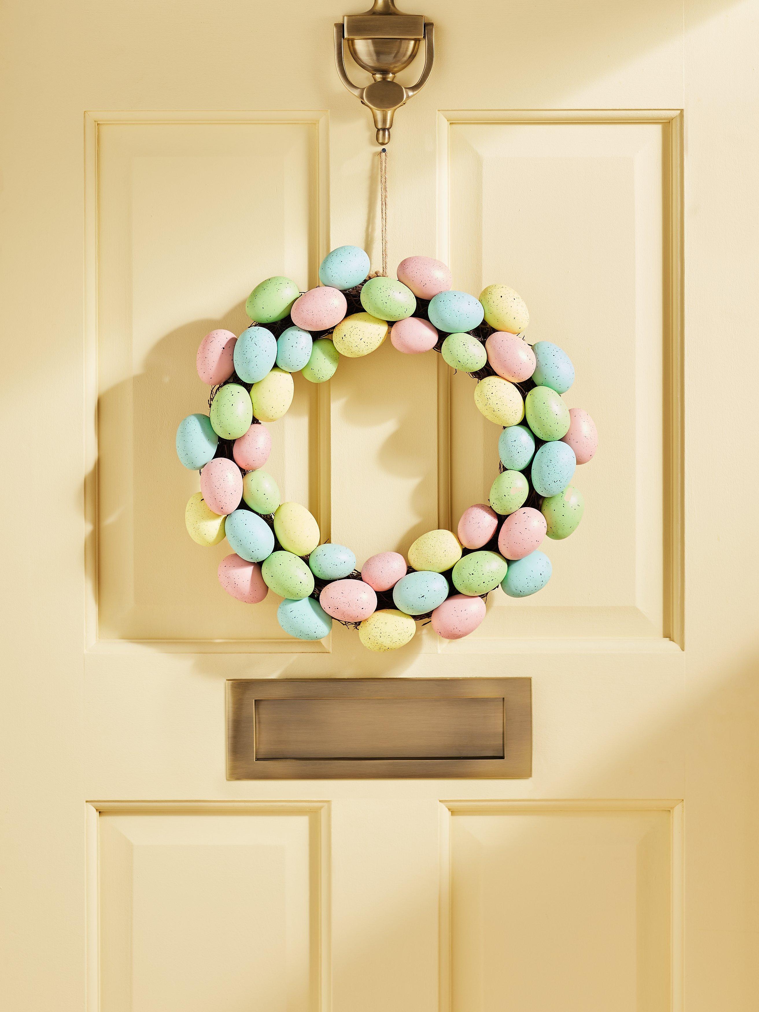 This charming Easter wreath is decorated with dozens of realistic eggs in an array of pretty pastel colours.
