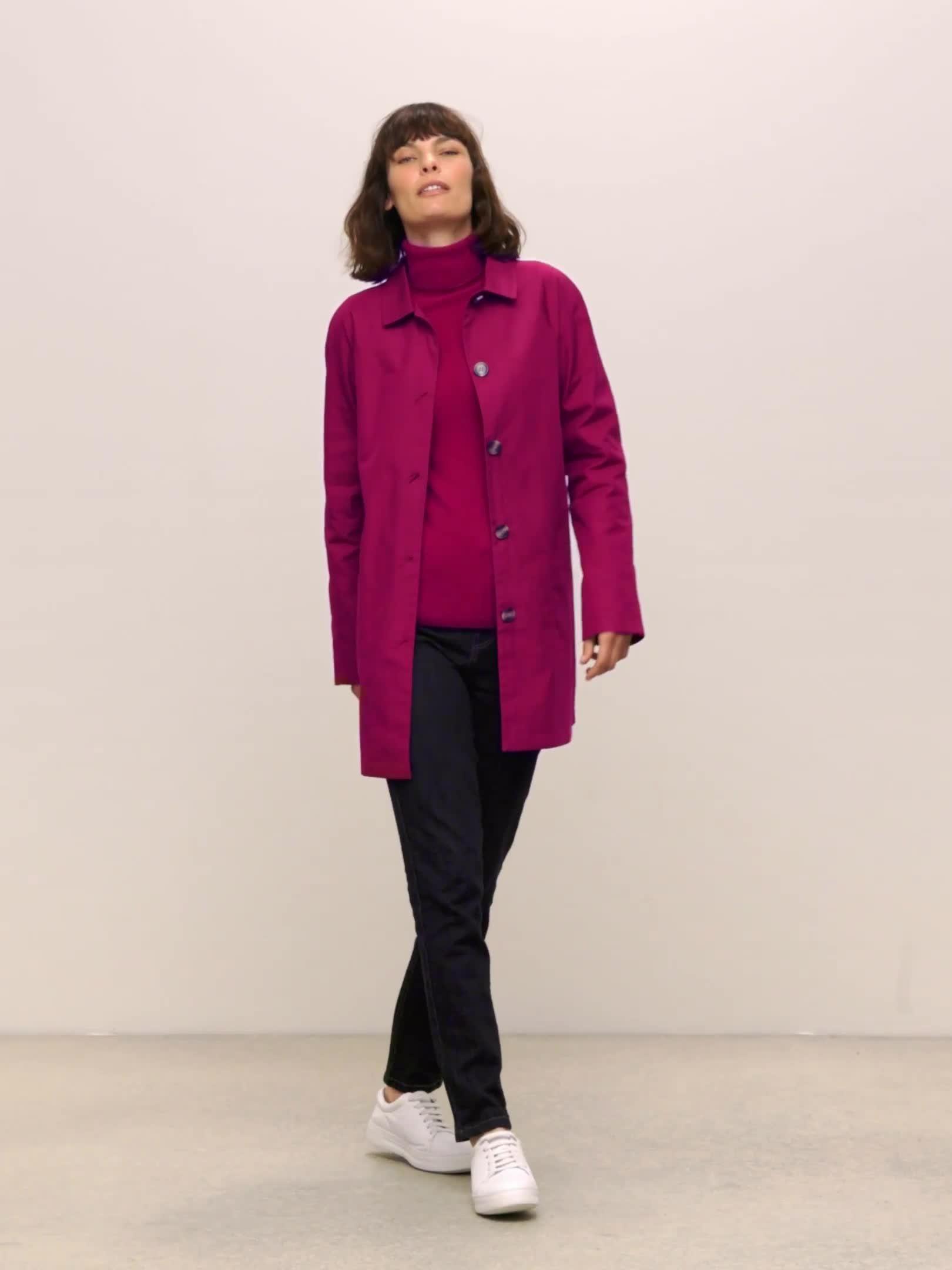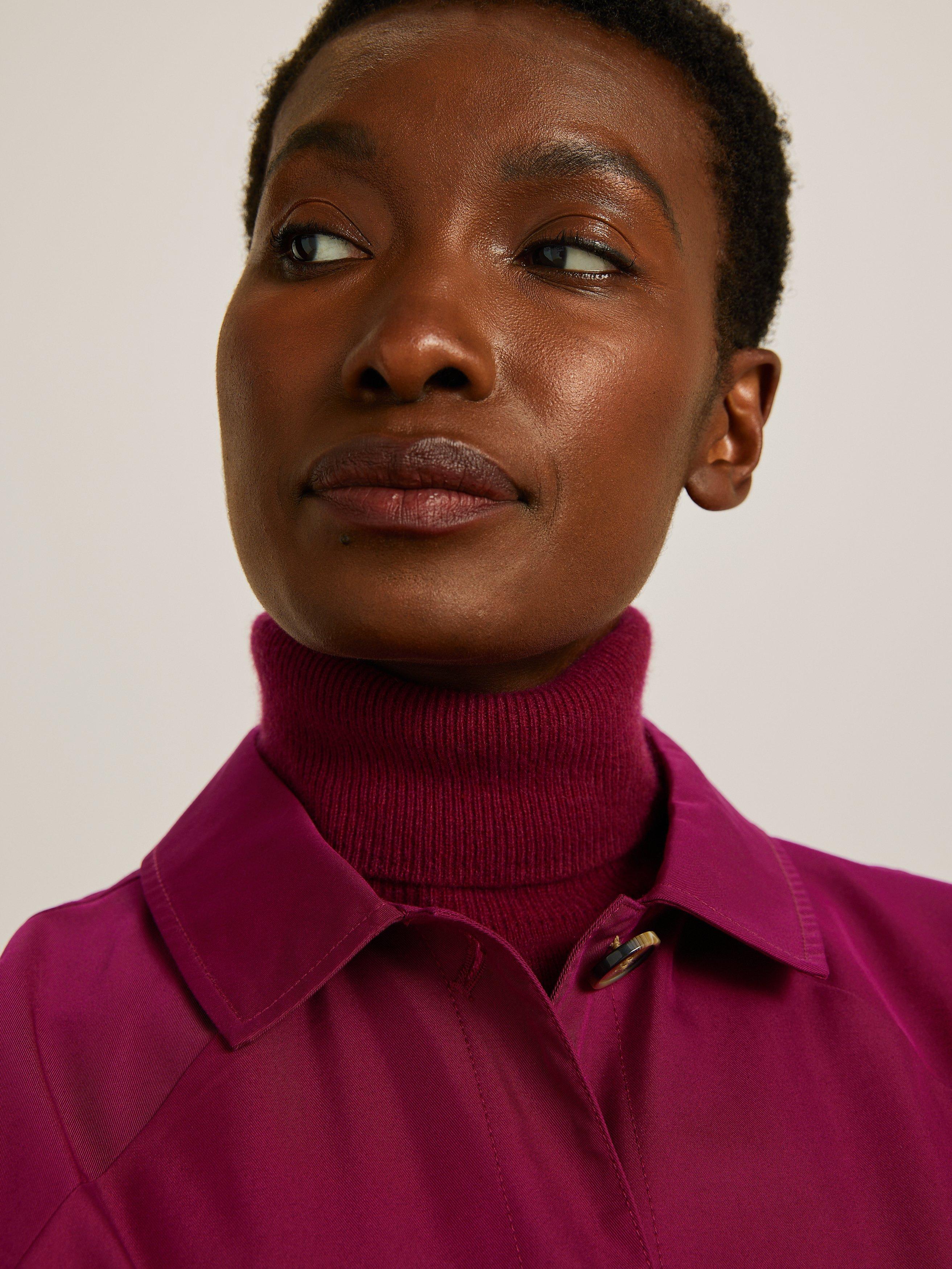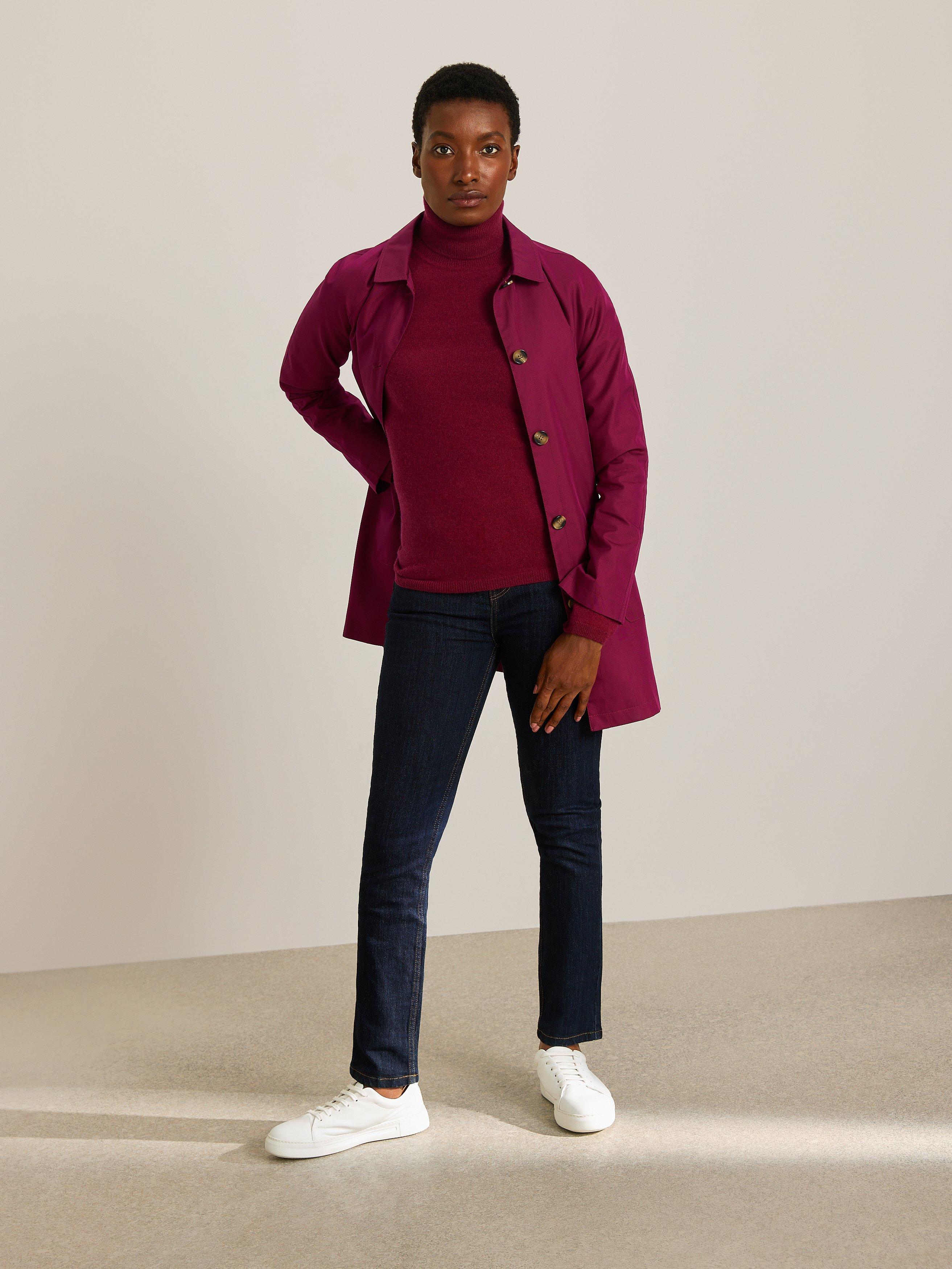 Our take on a classic style, we've cut our mac to a shorter length for a modern touch. Framed by a classic collared neckline, the clean silhouette has been punctuated by contrast tortoiseshell button whilst pockets offer storage for loose essentials and chilly hands.