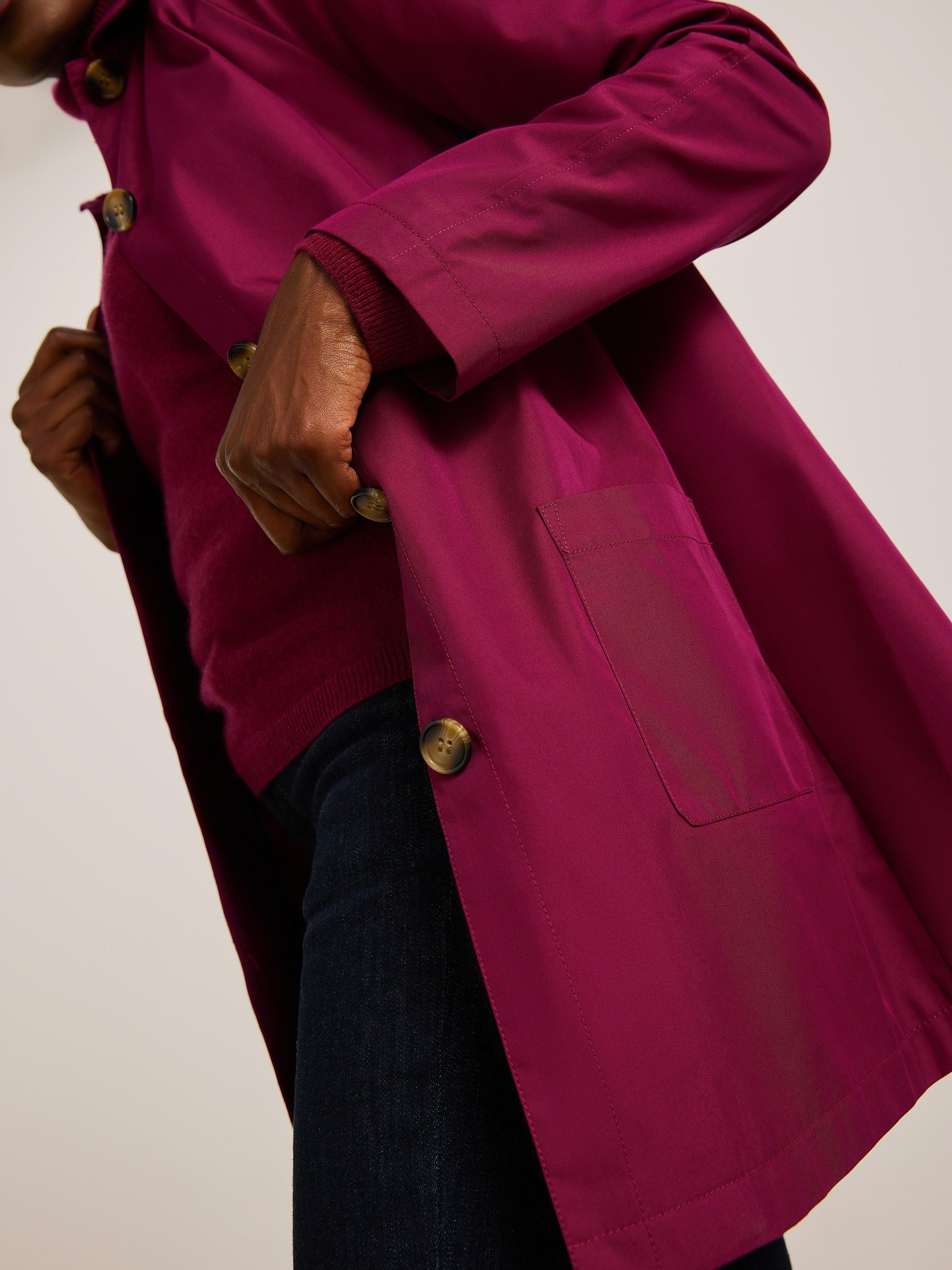 Our take on a classic style, we've cut our mac to a shorter length for a modern touch. Framed by a classic collared neckline, the clean silhouette has been punctuated by contrast tortoiseshell button whilst pockets offer storage for loose essentials and chilly hands.