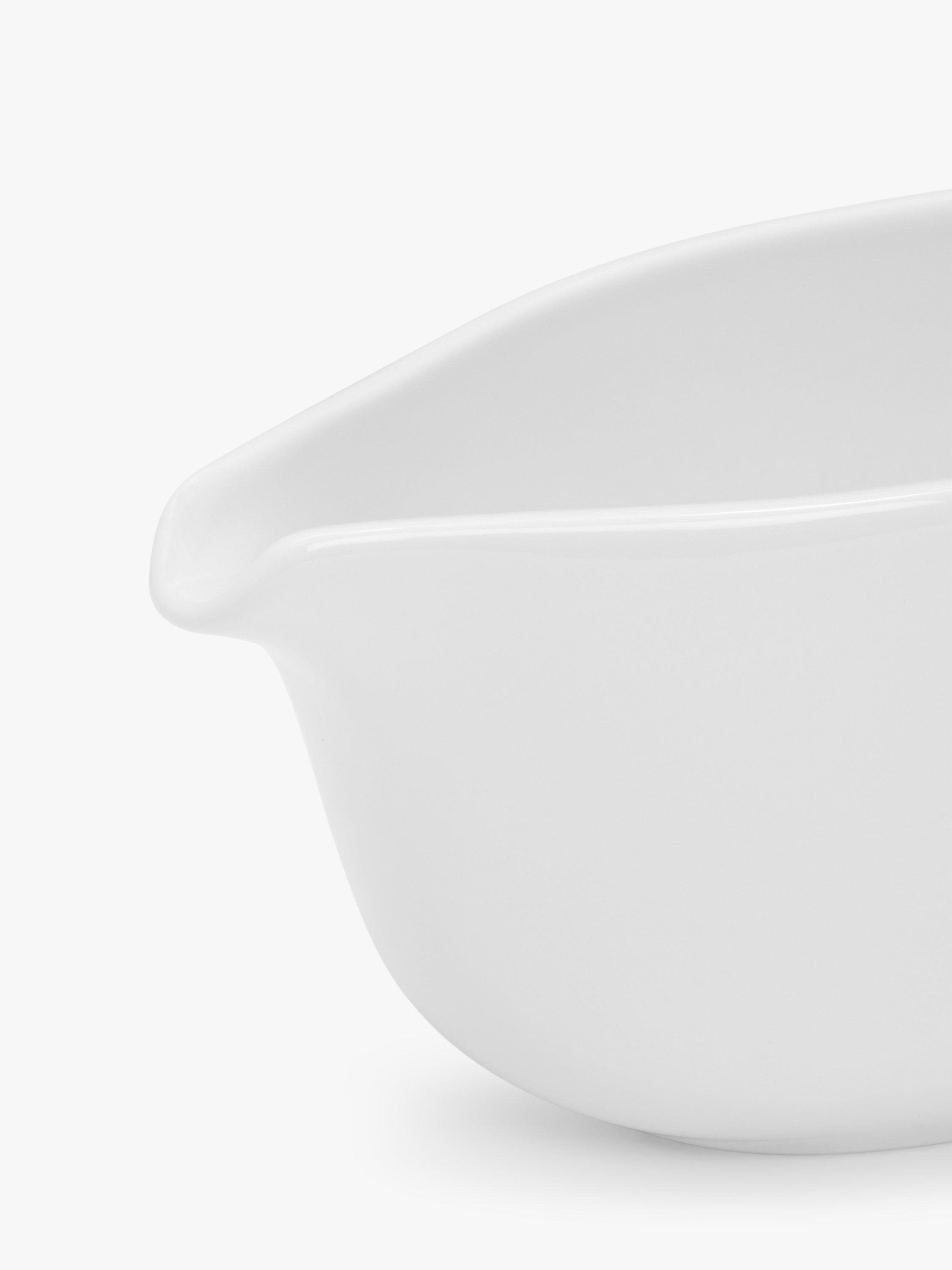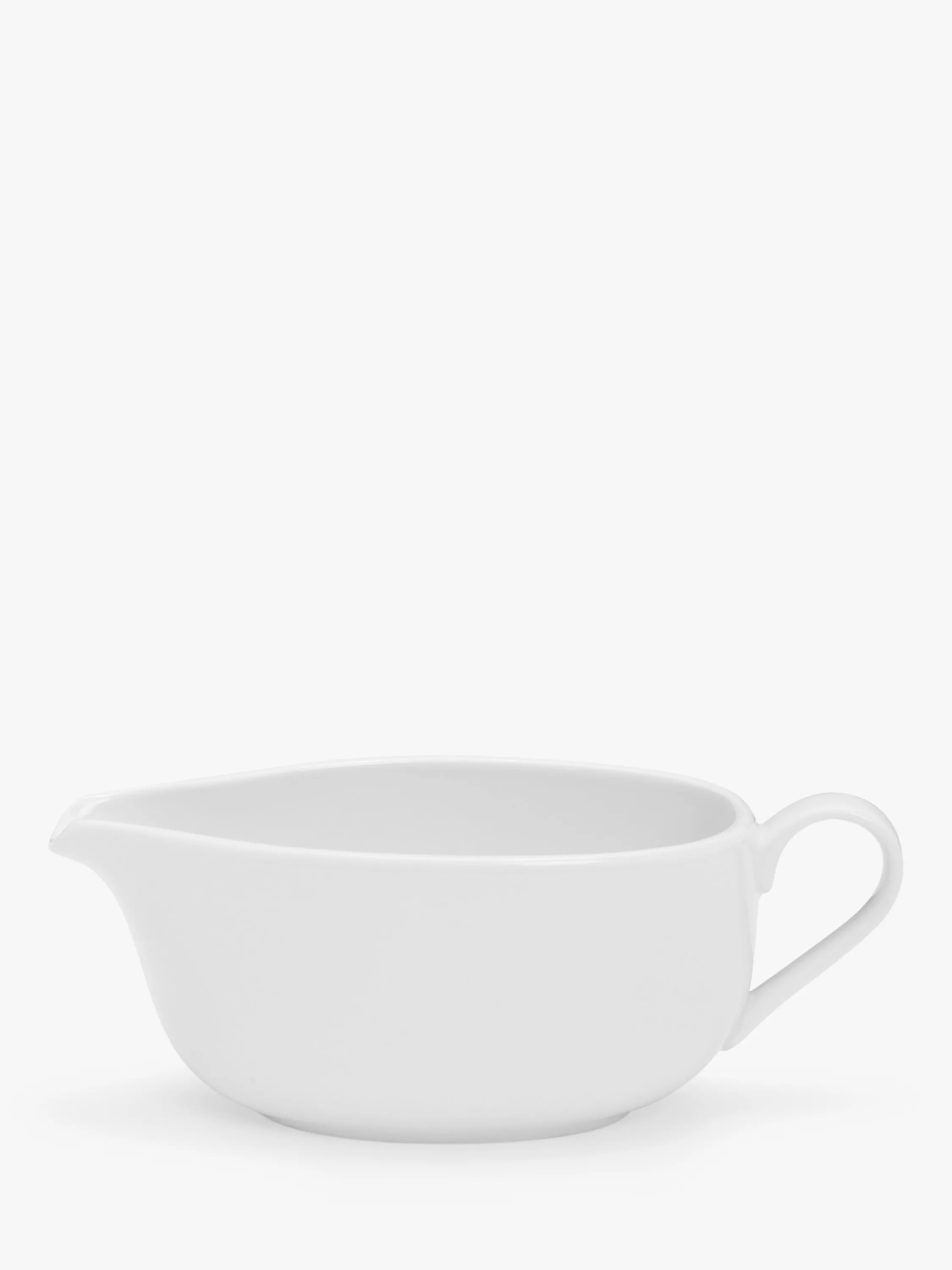 A simple, clean and contemporary design for your dining table, this gravy boat is made of resilient porcelain. It's dishwasher, microwave and freezer safe for easy everyday use.