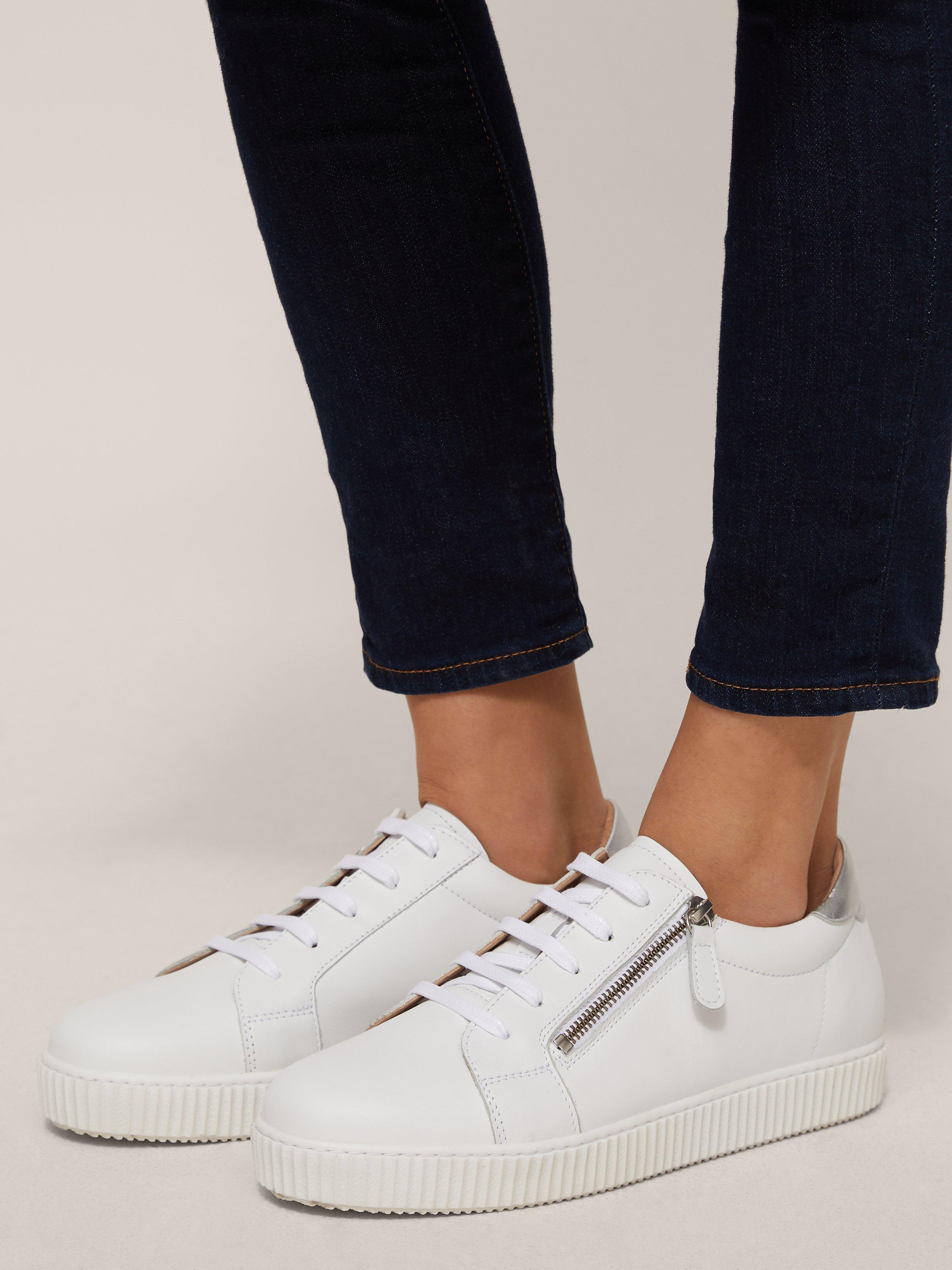 Made in Portugal for us in leather, the trainers feature lace-up detailing and a zipper that not only looks good but makes putting them on very speedy - no messing with laces. The chunky flatform sole offers a contemporary finish.
