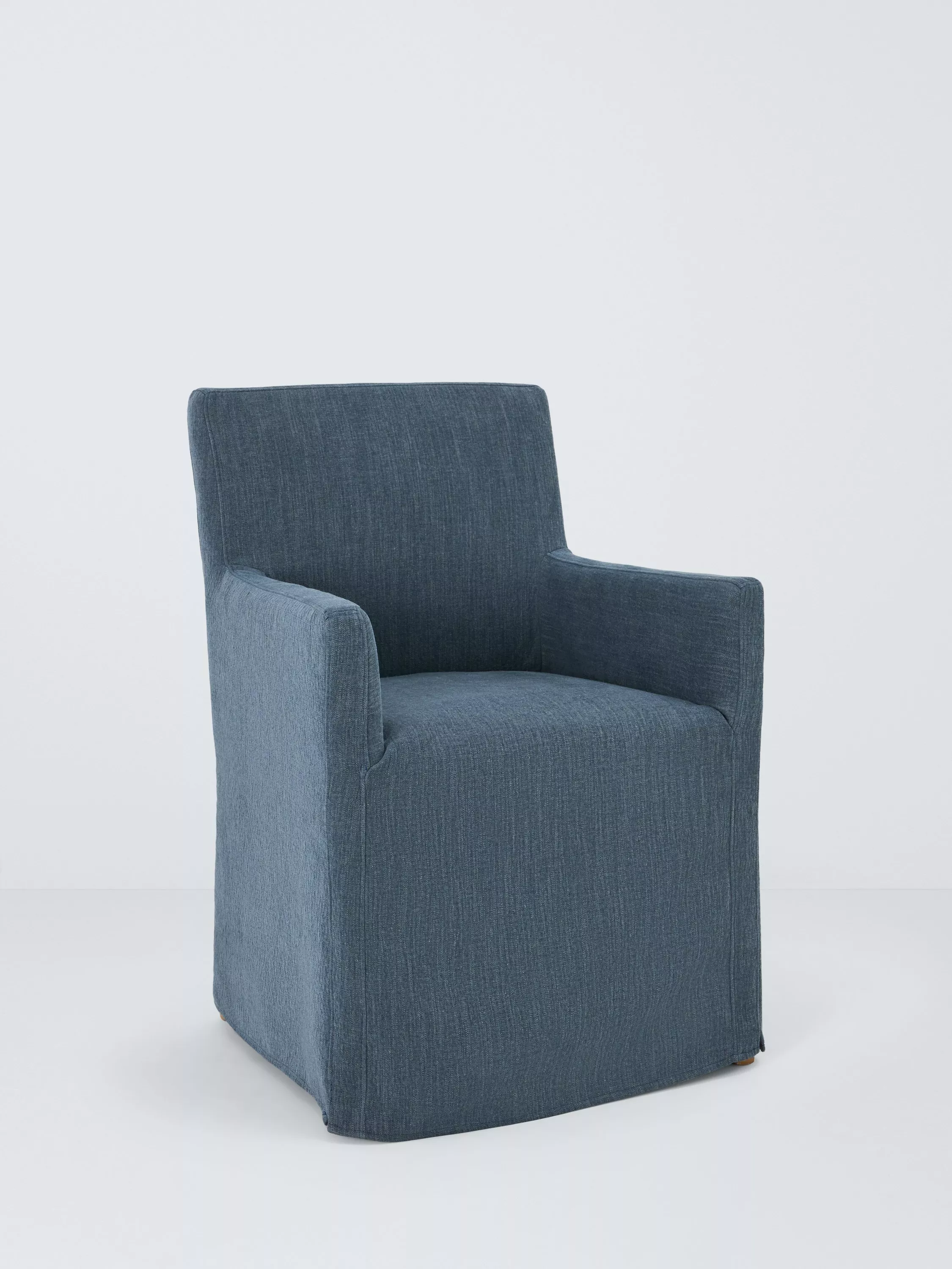 A modern take on classic simplicity, the Edith chair blends comfort with understated sophistication. With a fitted loose cover in a soft, textured fabric that drapes elegantly to the floor, it offers a tailored silhouette ideal for dining or occasional settings.
