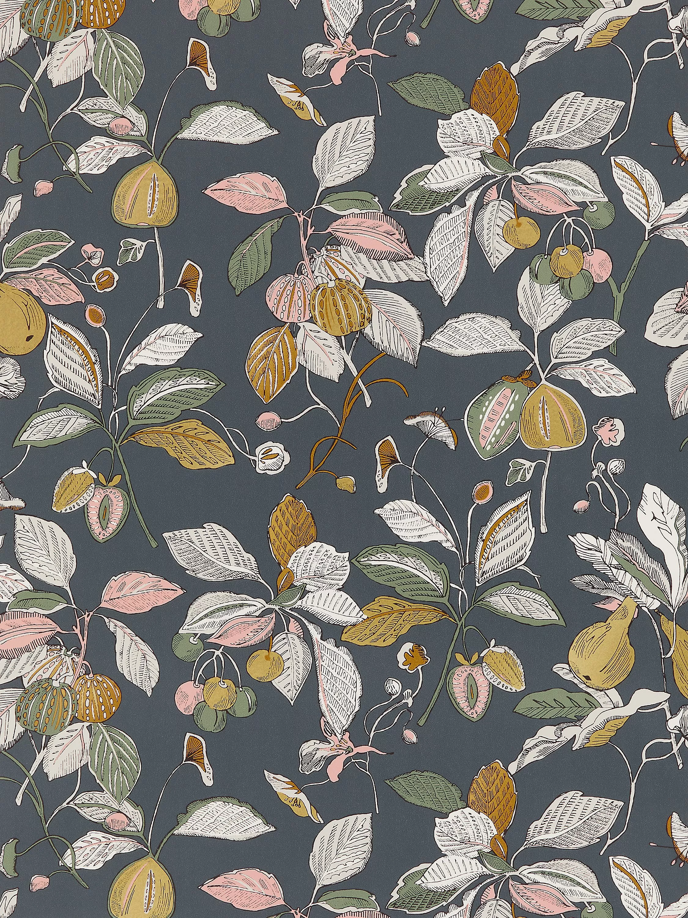 An intricate leaves and fruit print in three colourways.