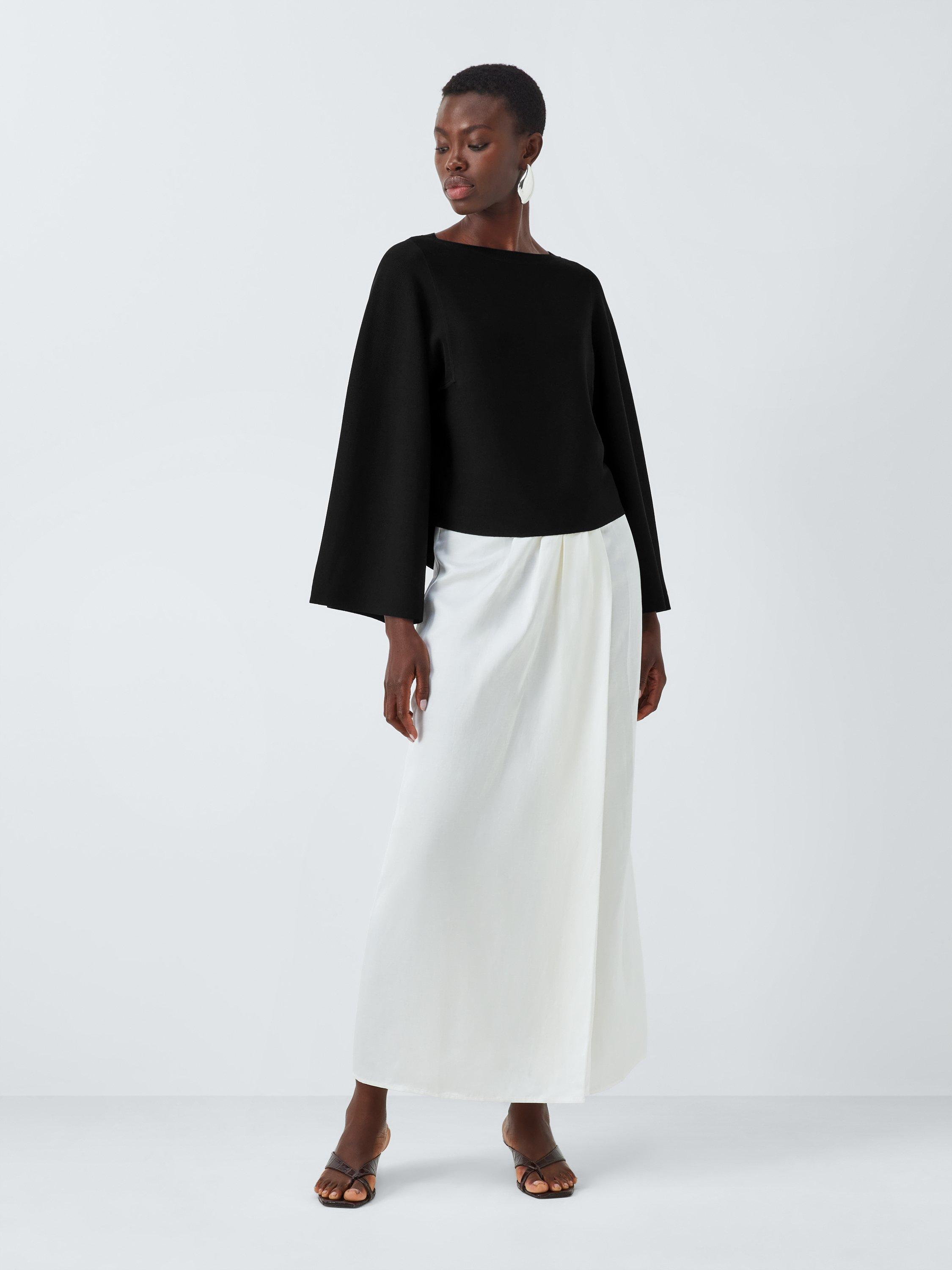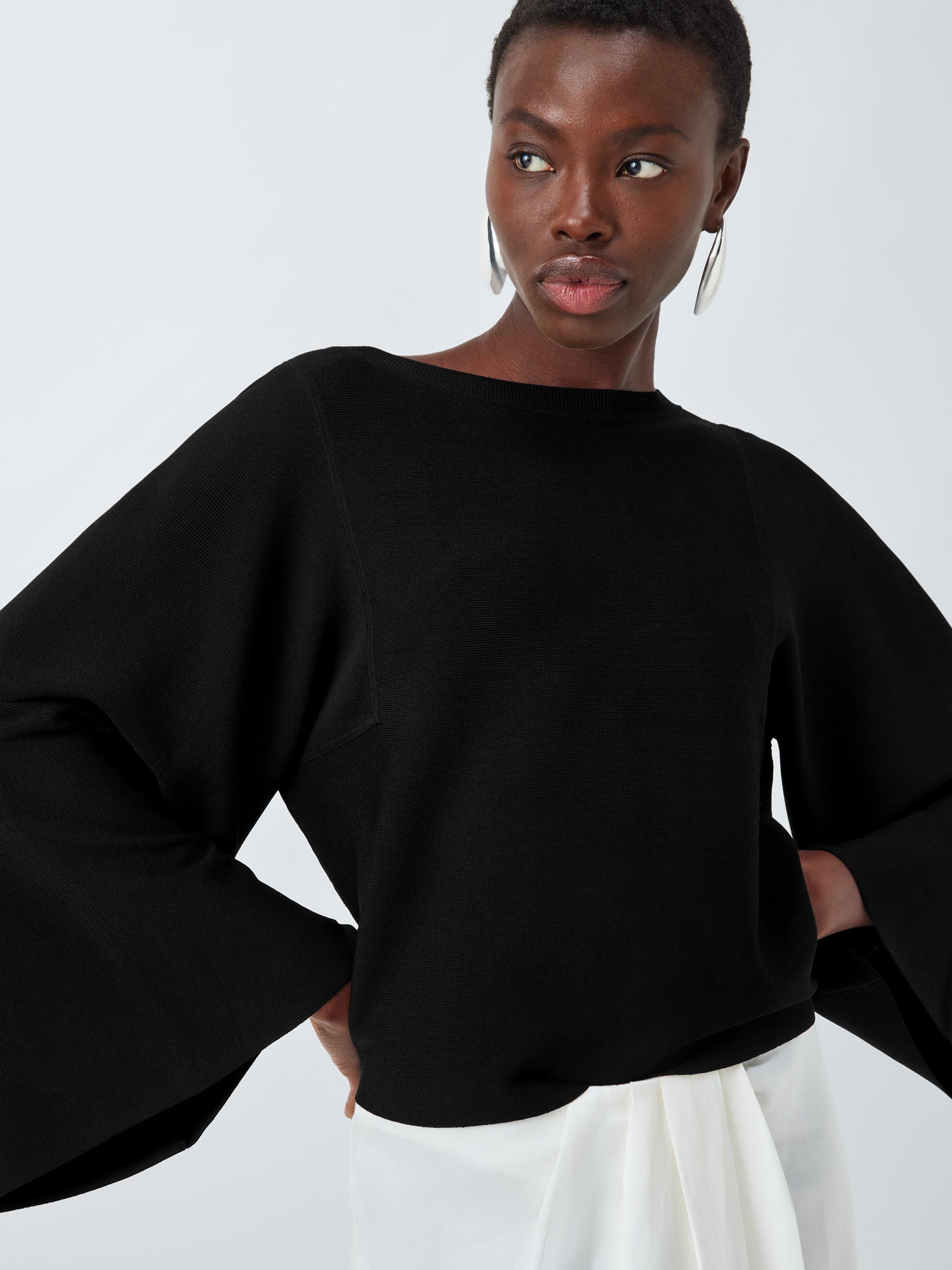 Made from a fluid fabric that drapes beautifully, this compact Knit top features statement three-quarter-length sleeves and a boat neckline. Team with a plain midi skirt and strappy sandals for summer evenings.