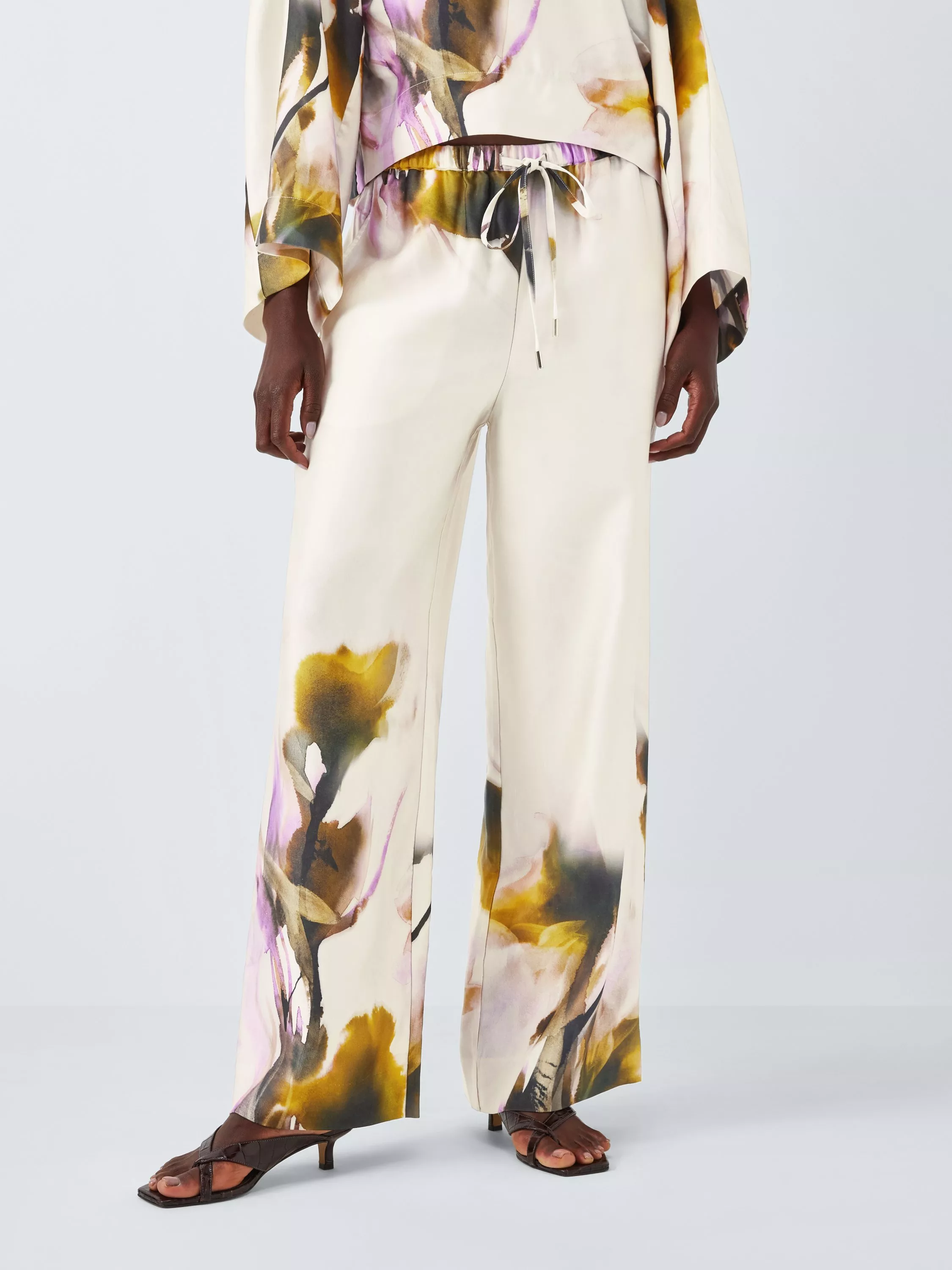 Woven from a lightweight, fluid fabric that drapes beautifully, these retro-inspired trousers feature an exclusive, hand-painted floral print. The elasticated waist with a drawstring creates a customised fit. Team with the matching floral print top for the full effect.