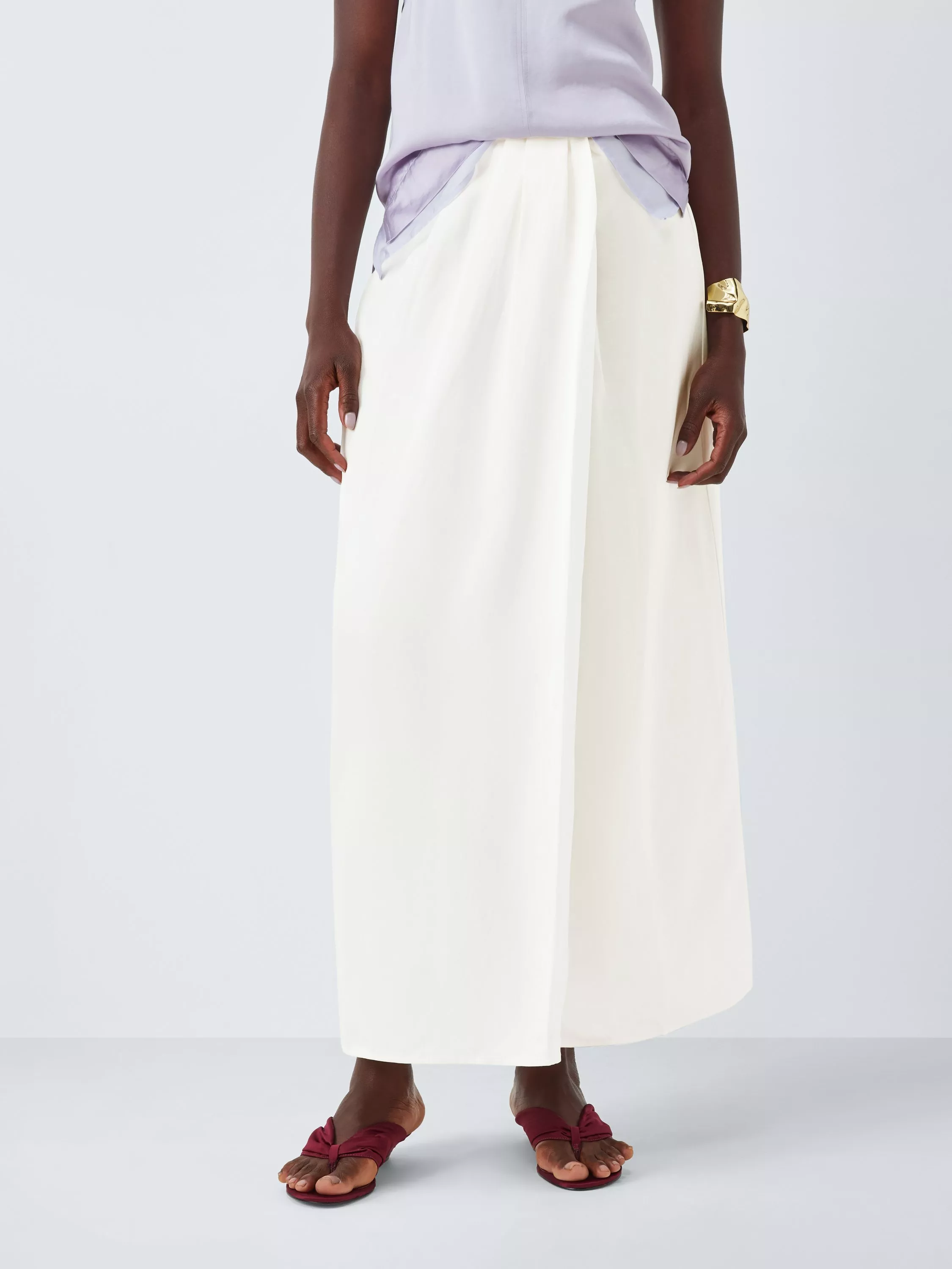 Woven from a lightweight linen and Tencel blended fabric that drapes beautifully, this skirt falls to maxi length with a split hem detail.