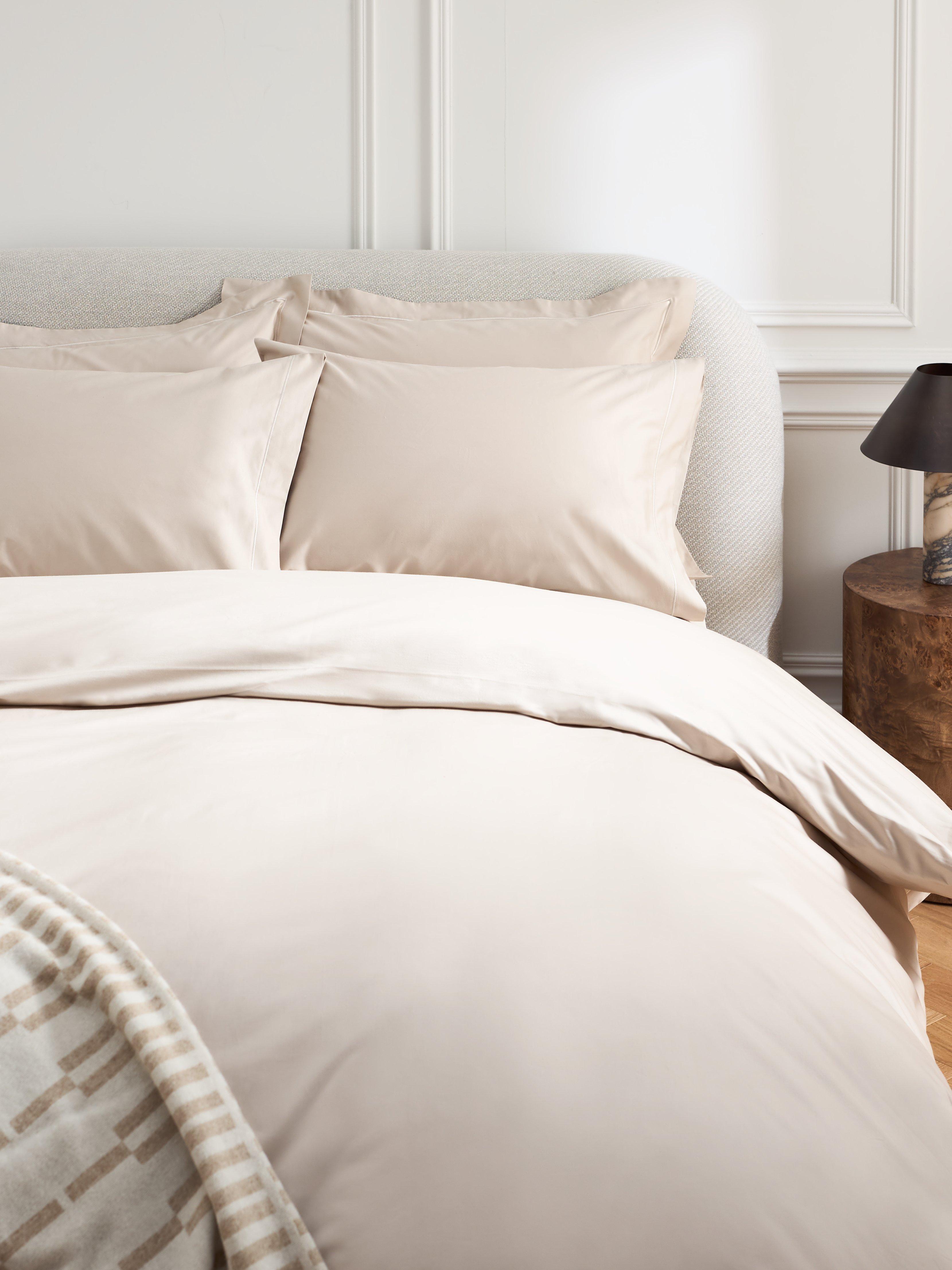 Cool and silky cotton bedding with a lustrous finish. Woven in a 600 thread count for a smoother feeling. The bedding features a single row of cord detailing as a subtle decorative contrast.