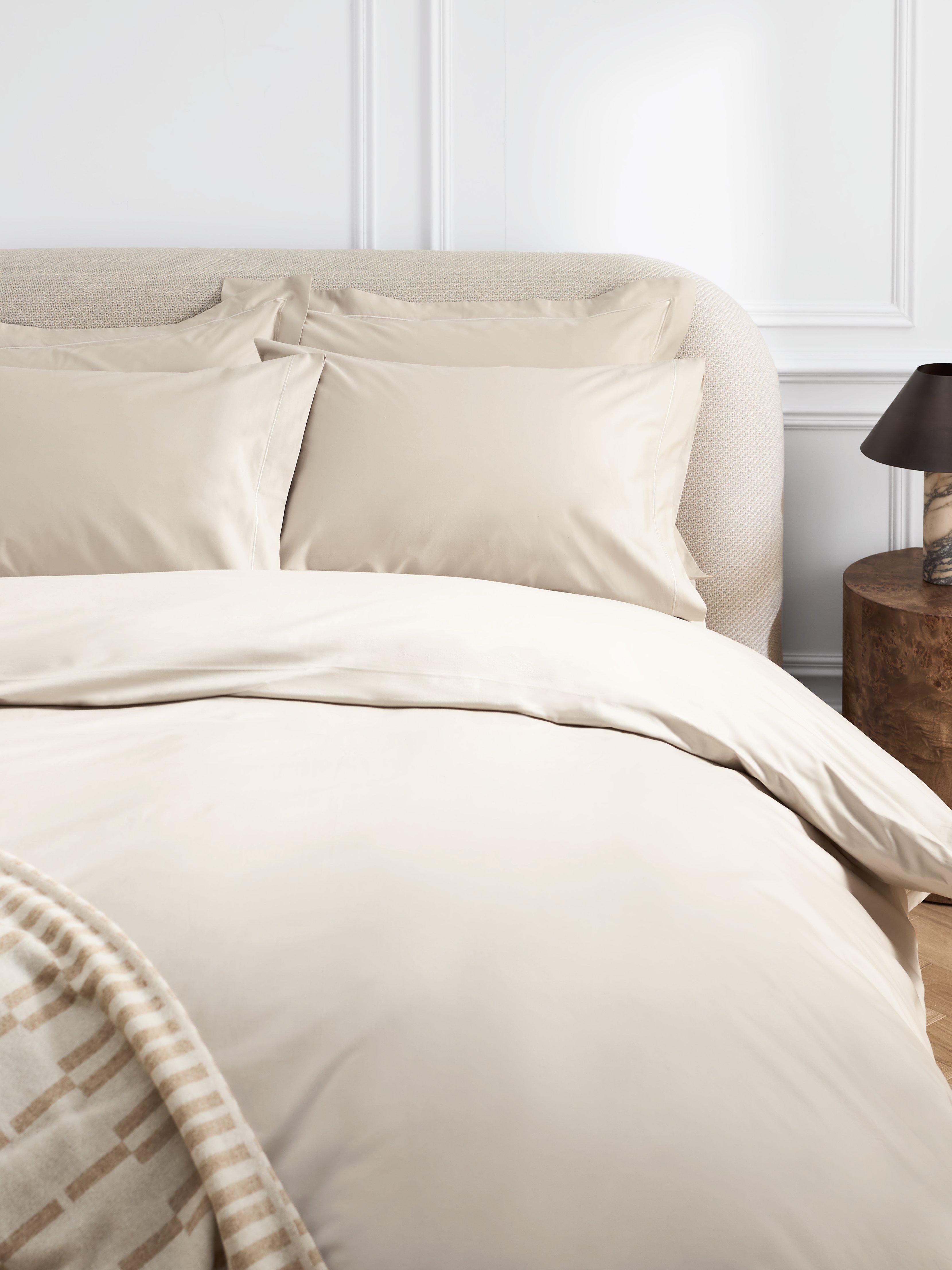 Cool and silky Egyptian cotton sateen bedding with a lustrous finish. Woven in a 600 thread count for a smoother feeling, this soft and durable bedding is naturally breathable for a comfortable night's sleep and features a single row of cord detailing as a subtle decorative contrast.