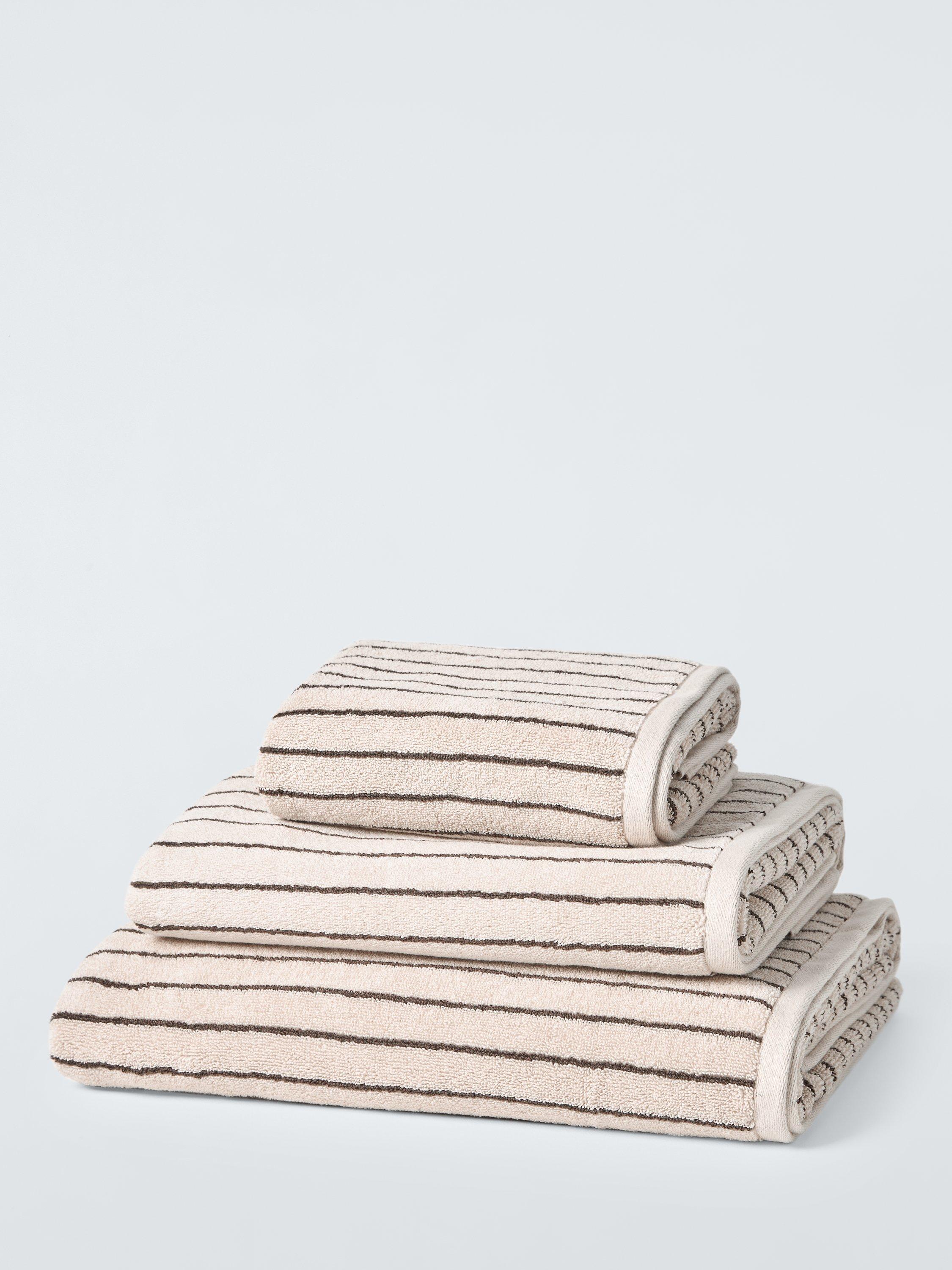 Combining two complementary colours and widths of stripe, these looped cotton towels are made from Egyptian cotton and are super soft and hard wearing.