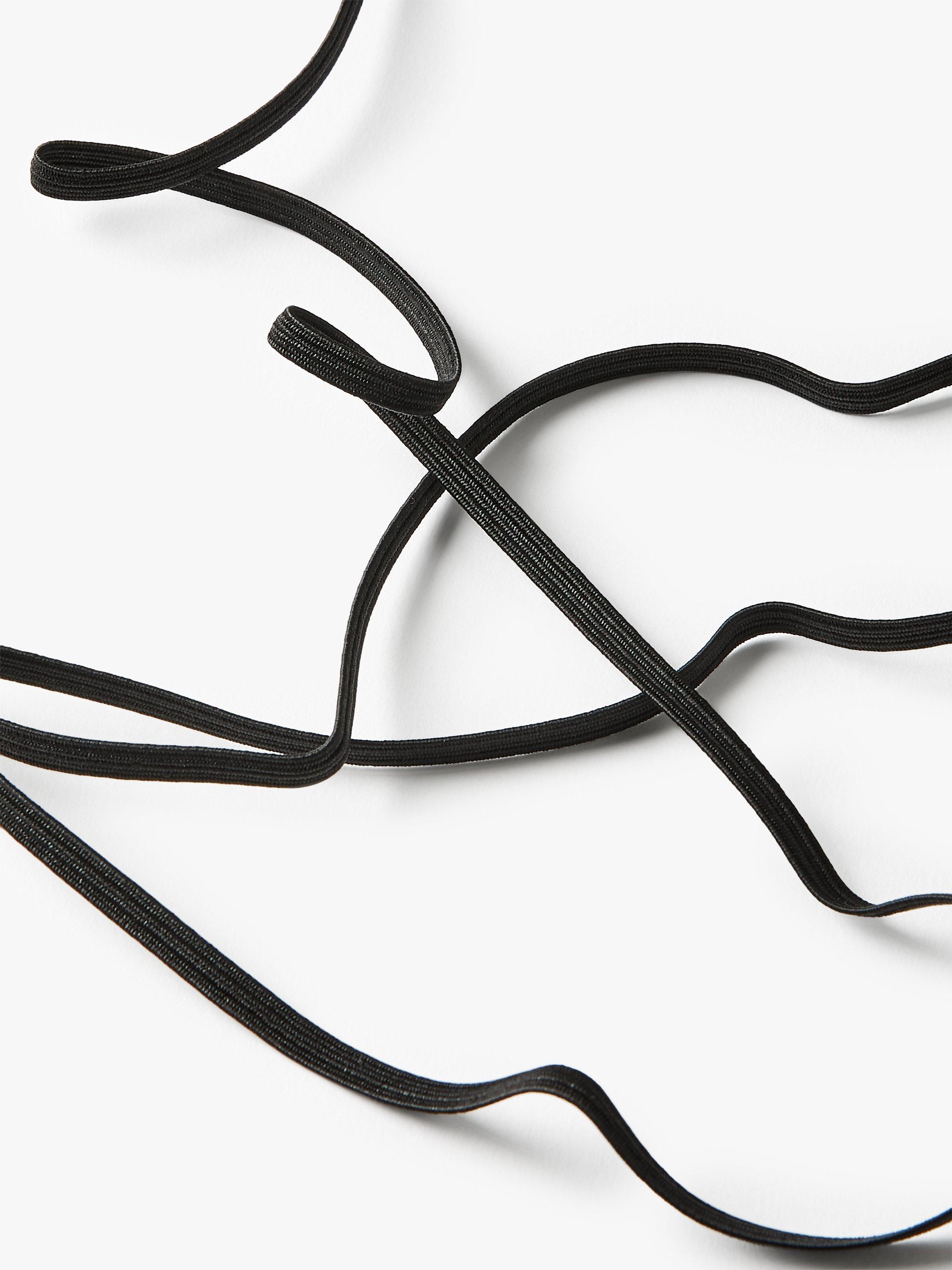 3 metres of 4mm elastic consisting of a polypropylene/rubber blend.