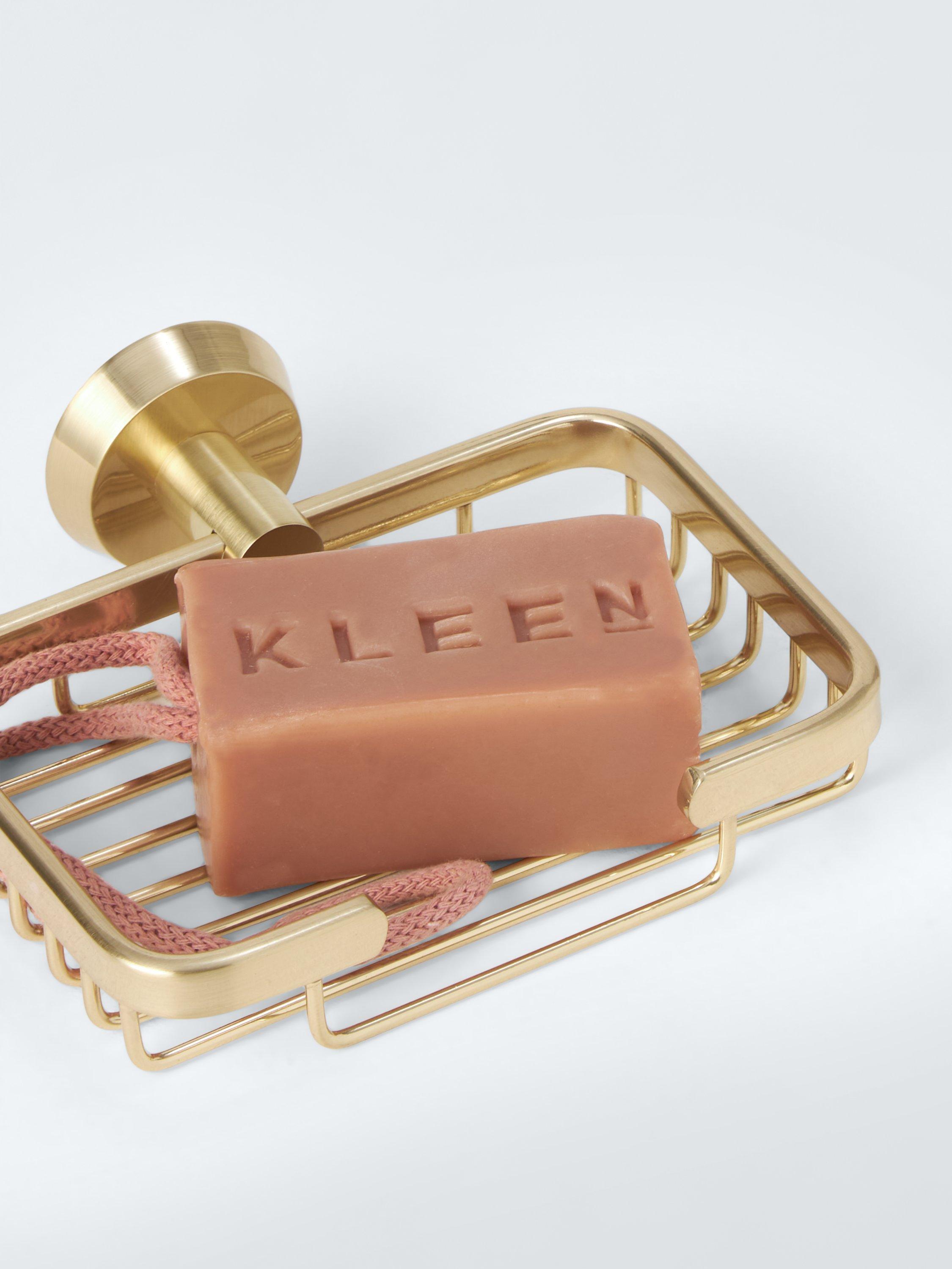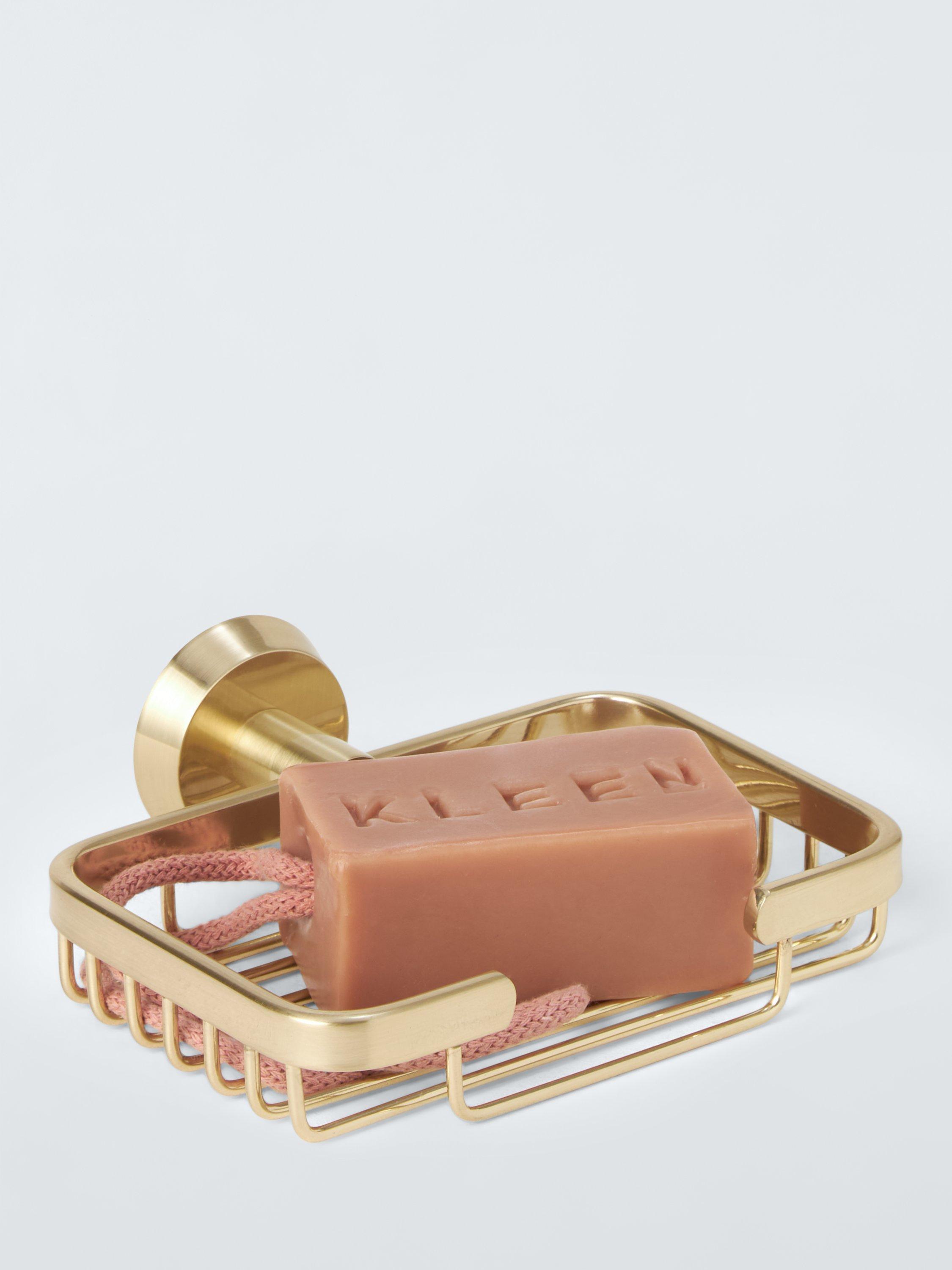 This wall-mounted wire soap basket can be situated over the sink, next to the bath or in a shower.