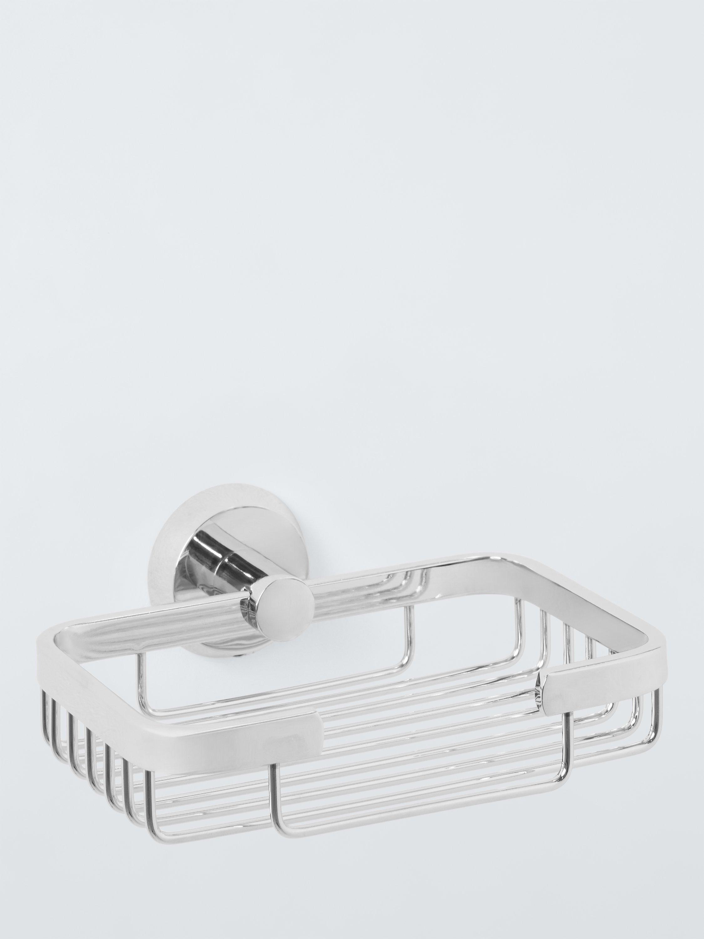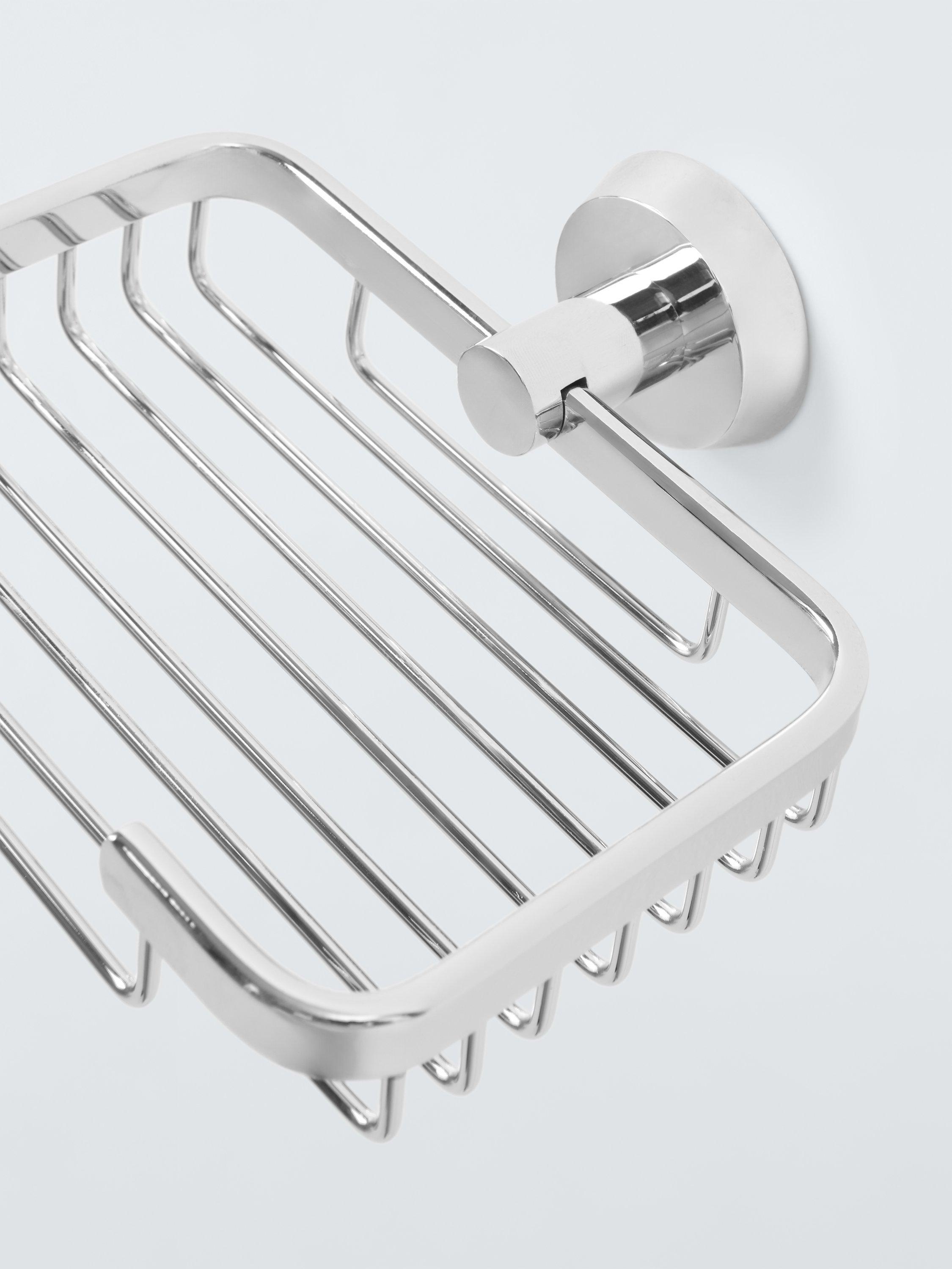 This wall-mounted wire soap basket can be situated over the sink, next to the bath or in a shower.