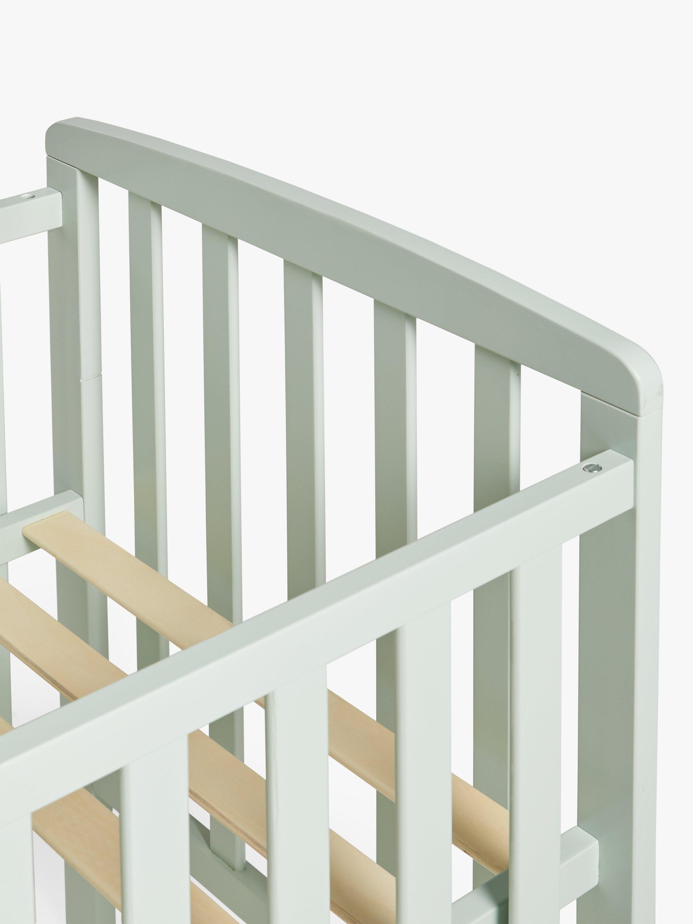 Suitable from birth, this cot requires a standard 120 x 60cm mattress with a maximum thickness of 12cm (sold separately). The cot complies with safety standard EN 716-1:2017+AC:2019.