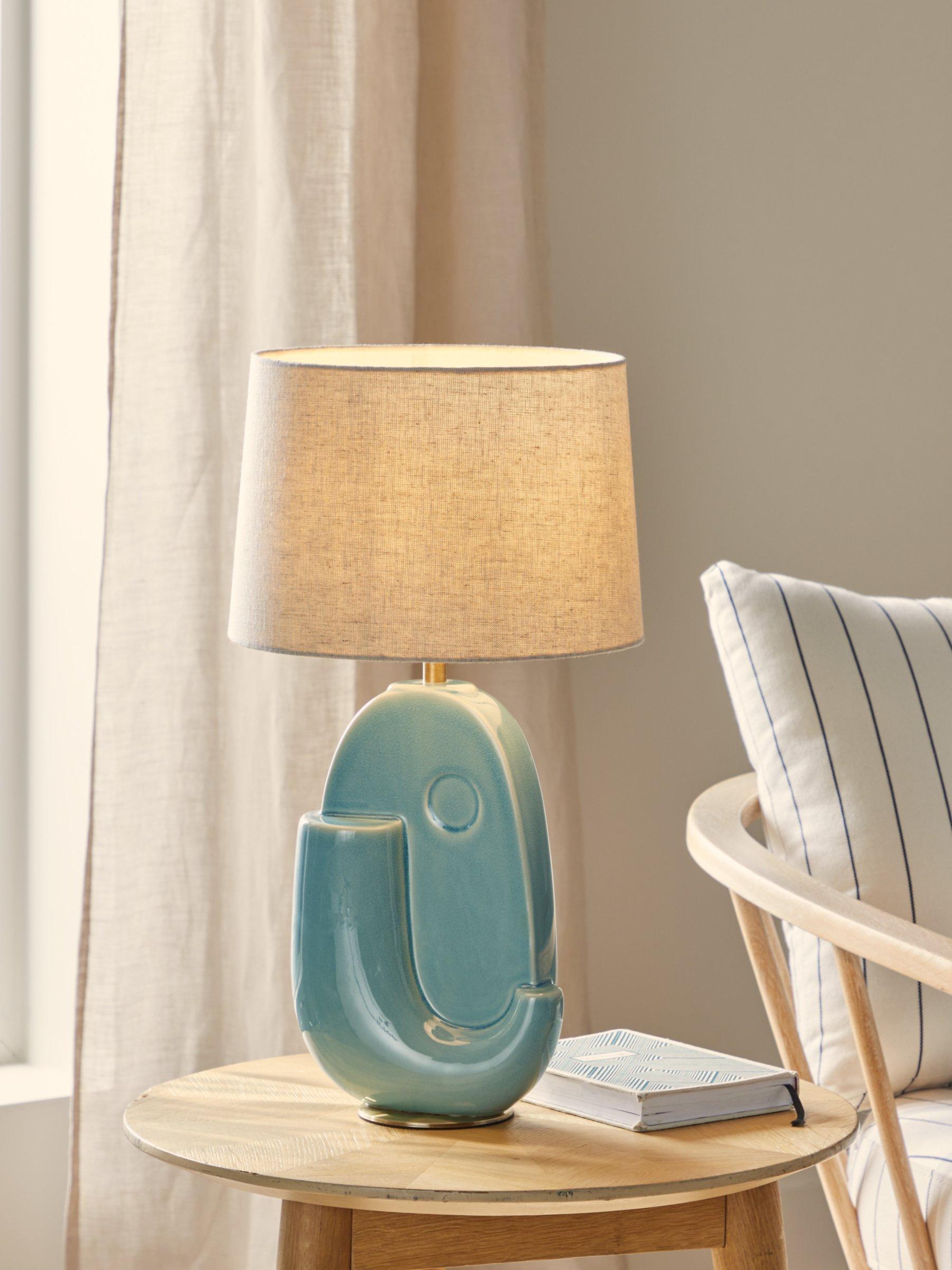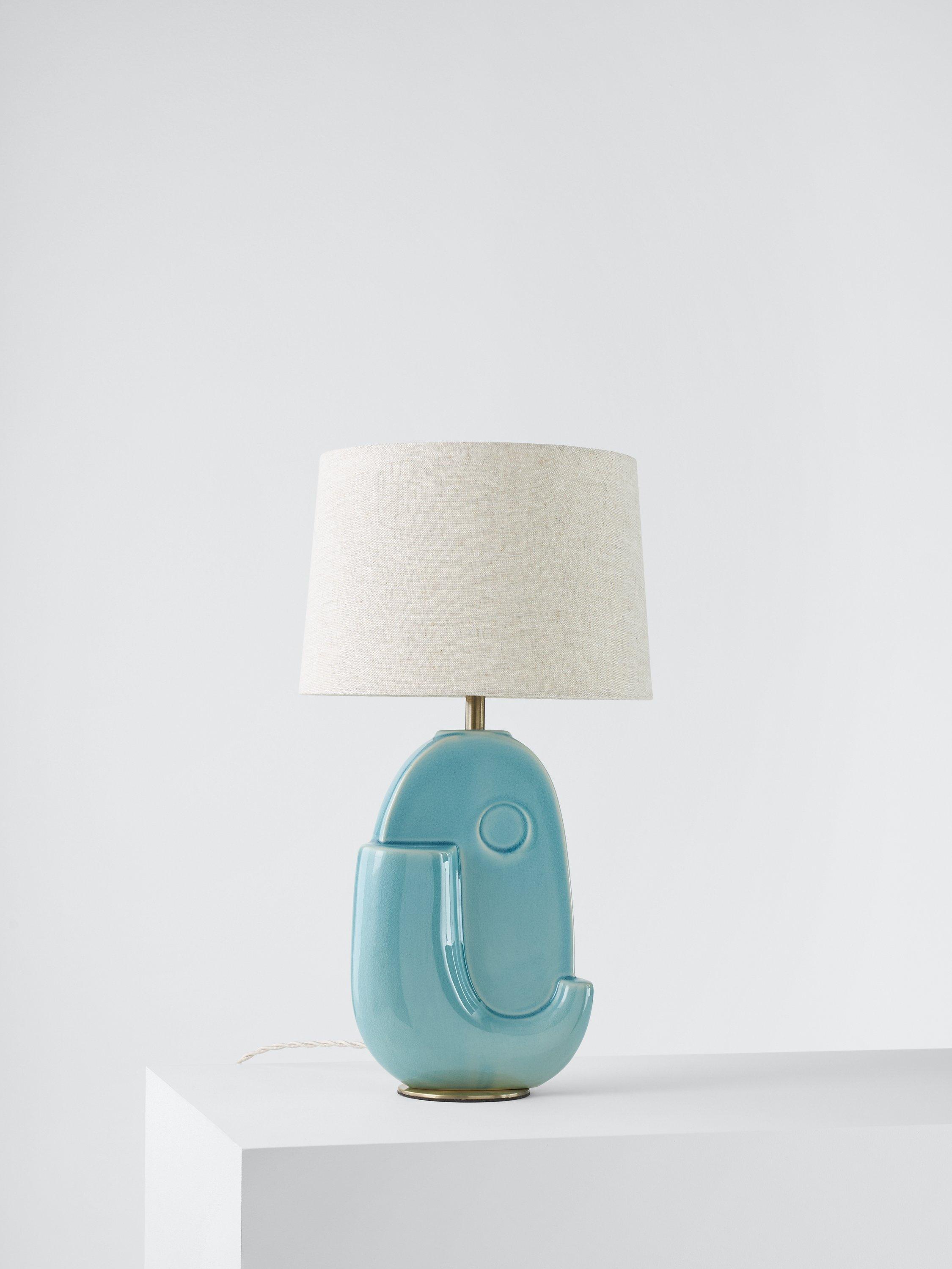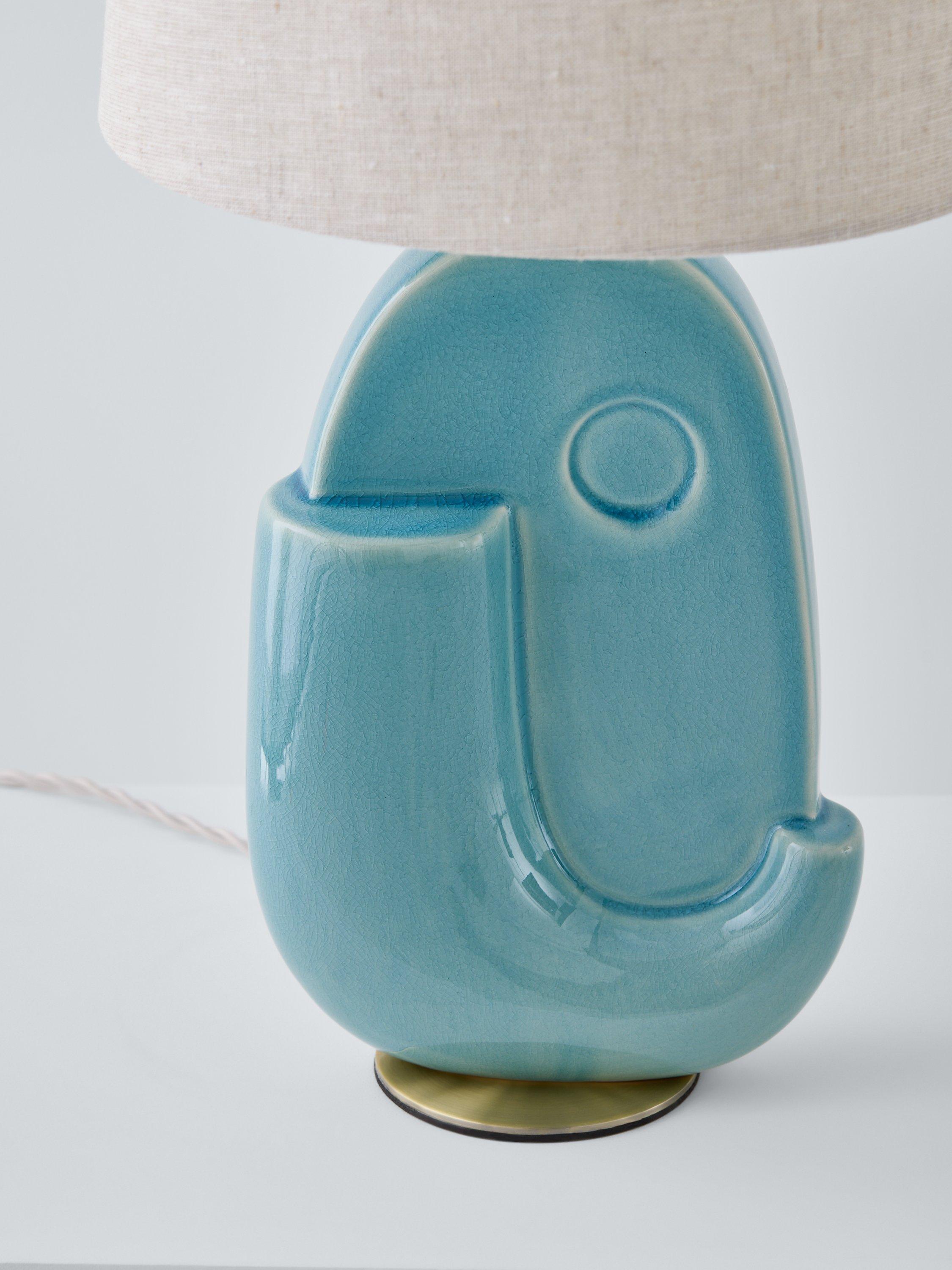 Our Elephant Table Lamp is a sculptural piece that is sure to create a talking point in your home. The ceramic base is finished with a transparent reactive glaze that is complemented by a neutral linen shade and braided fabric flex.