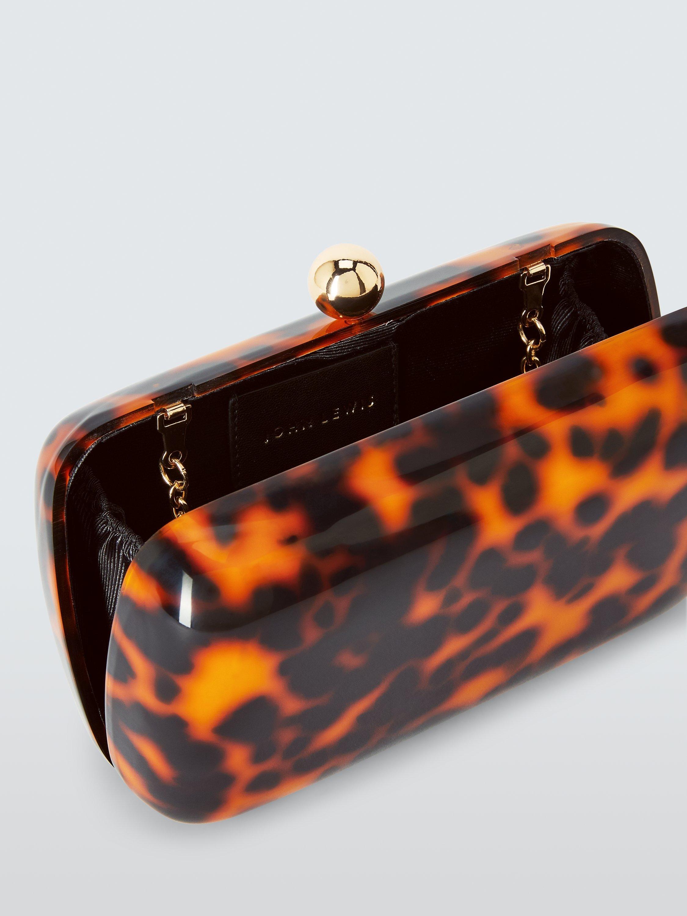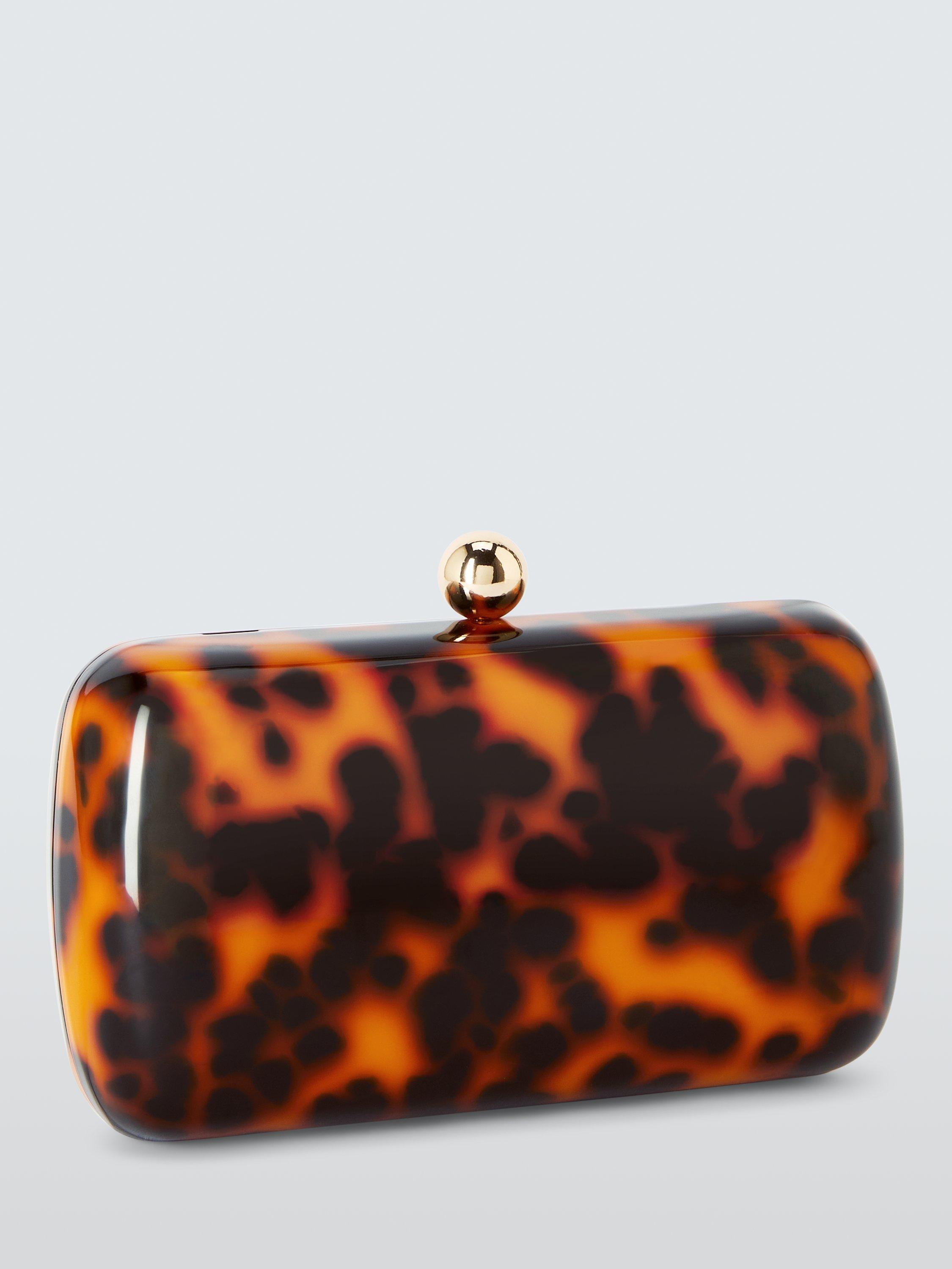 Complete with a gold-tone chain strap for versatile wearing, our Elle clutch bag is the perfect accessory for your evening occasions. Designed in a contemporary tortoiseshell style, this piece fastens with a clasp closure.