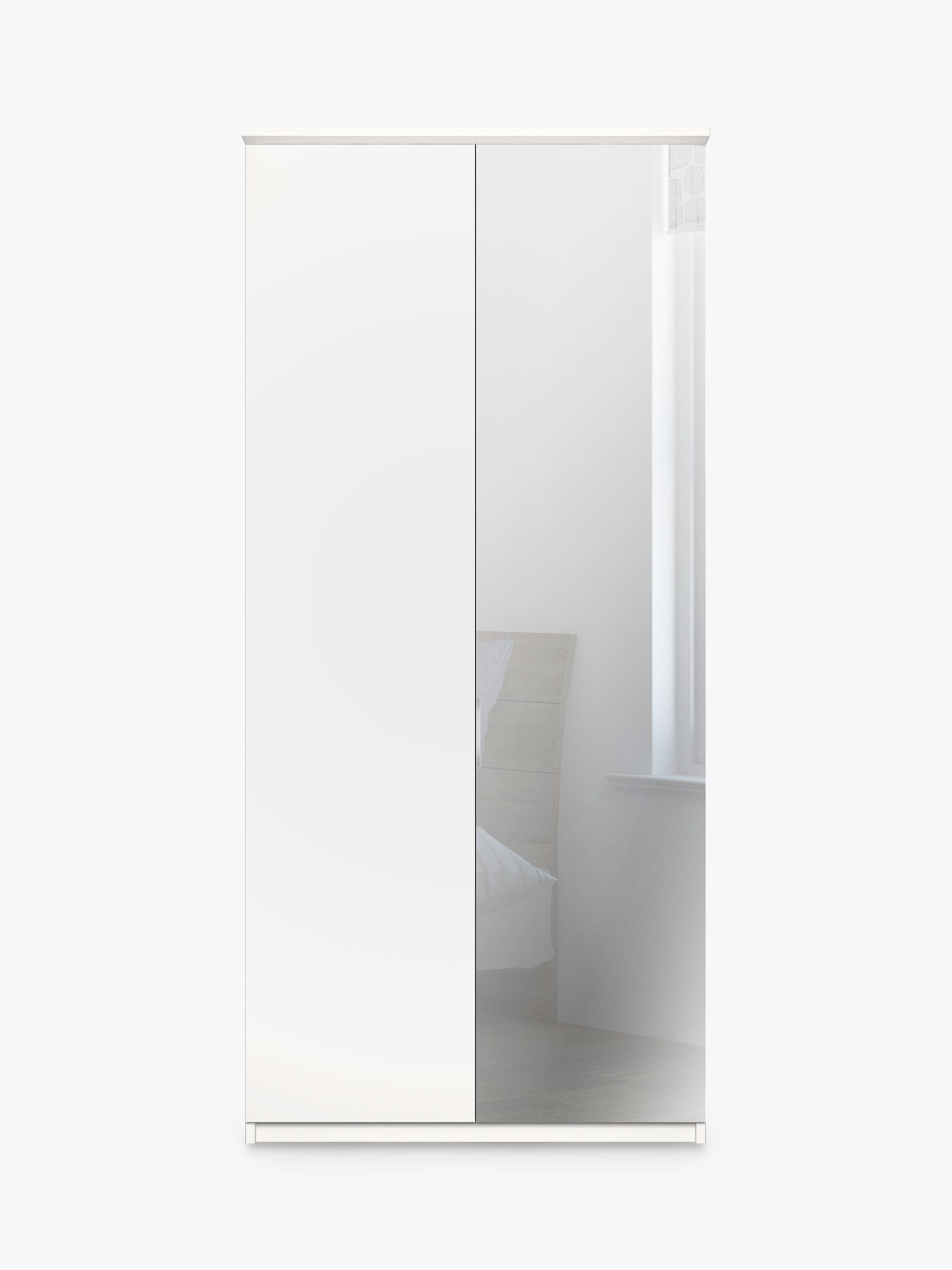 The mirrored door features a silver-tone handle, leading to a single compartment. The compartment is completed with two shelves and a hanging rail, all of which are fully adjustable for your convenience.