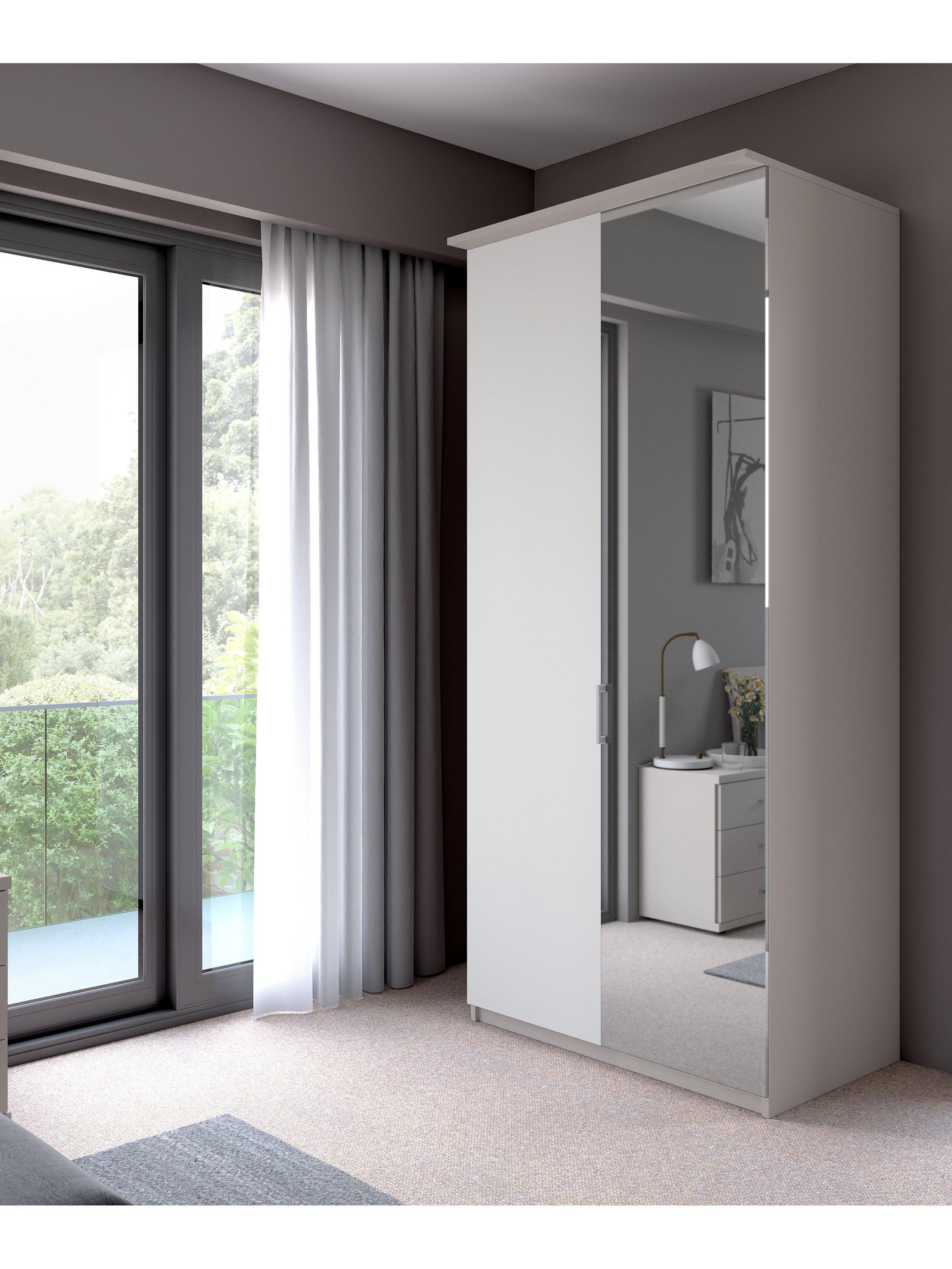 Combining style and functionality, this Elstra 100cm wardrobe has clean lines and an exterior complemented with an attractive cornice detail. It's available in a choice of Rustic Oak or Matt White finishes with a contrasting mirrored door on the right-hand side.