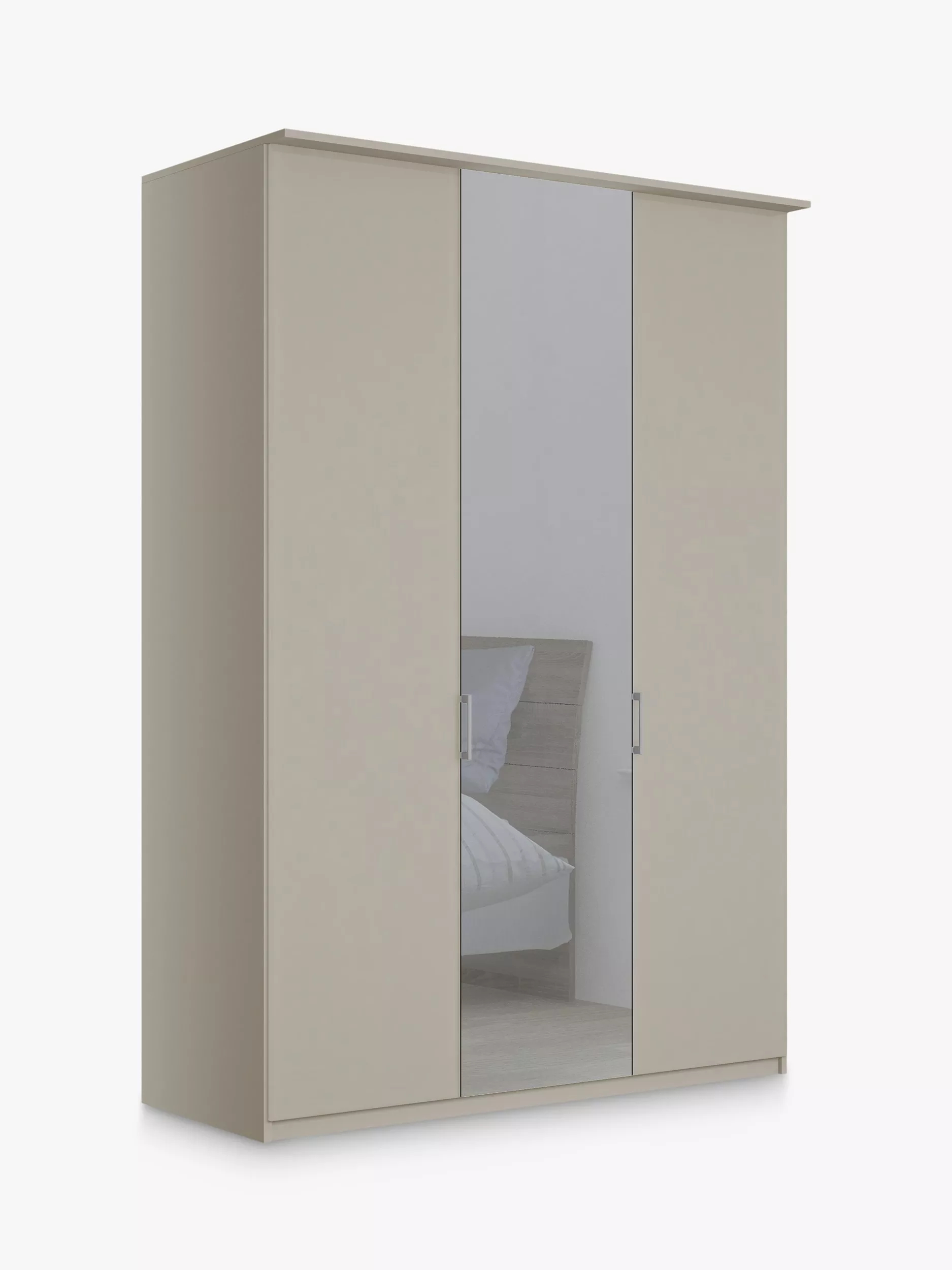 Silver-tone handle doors lead to a double and a single compartment. The compartments are completed with two shelves and a hanging rail, all of which are fully adjustable for your convenience.