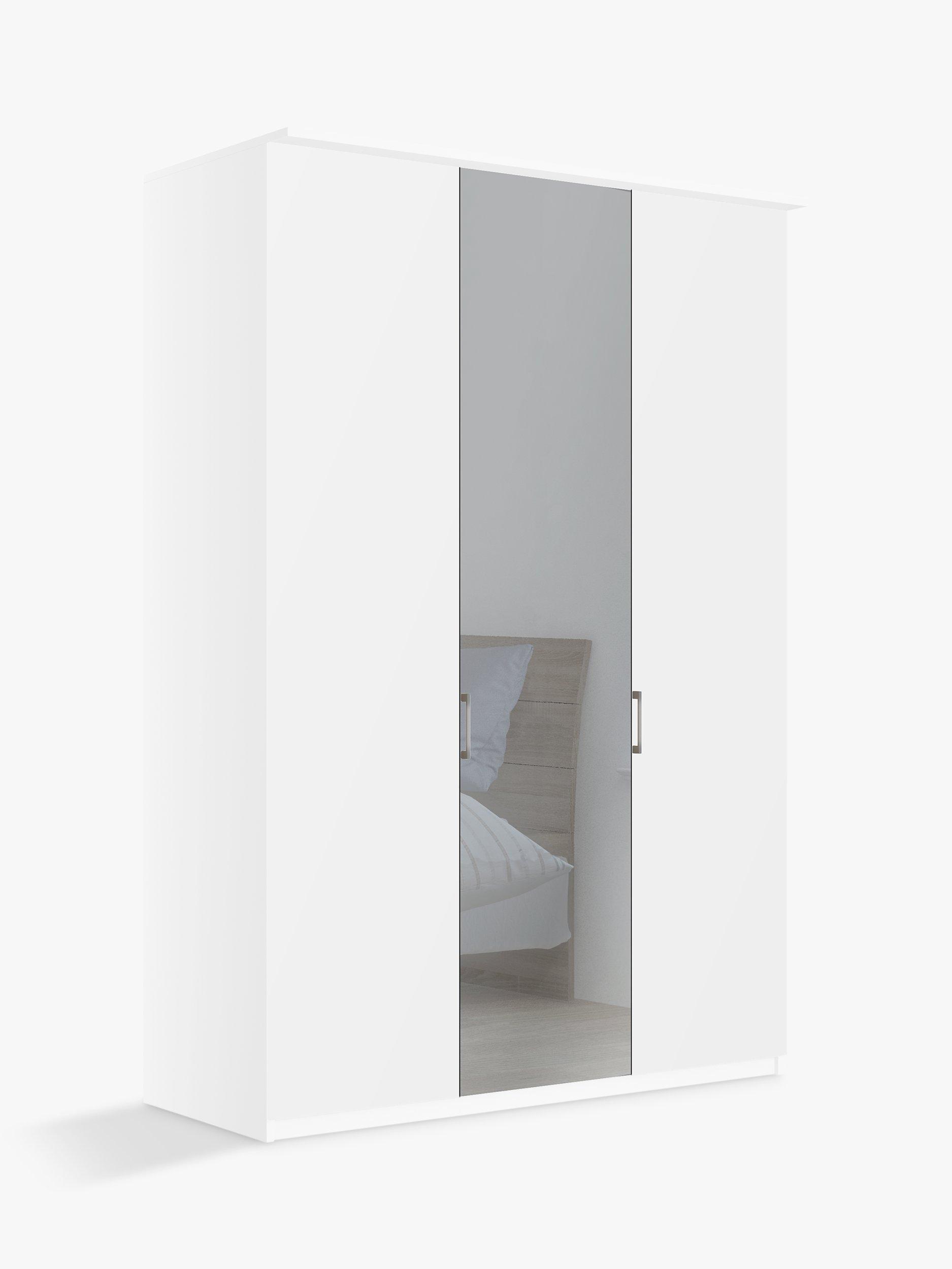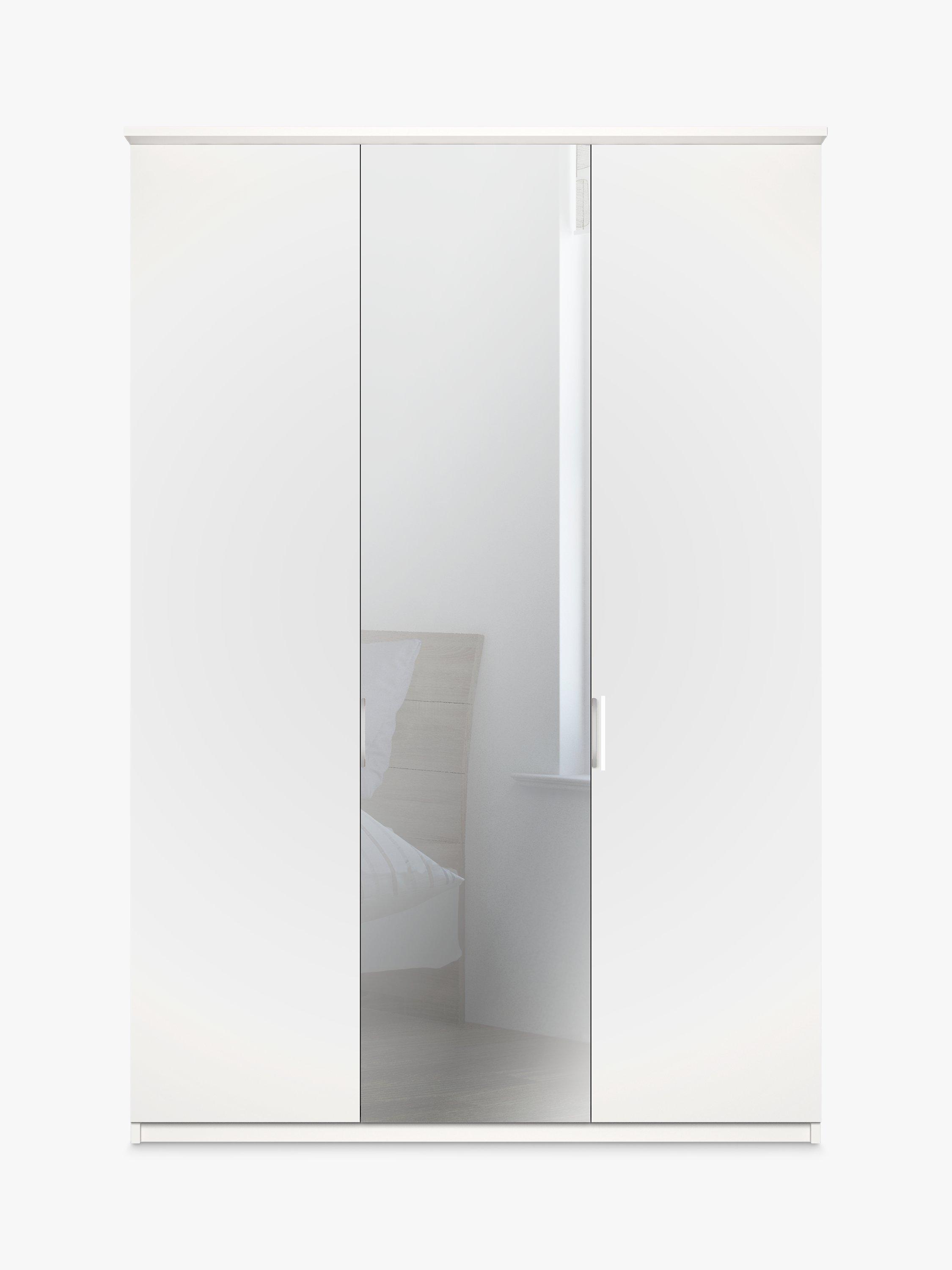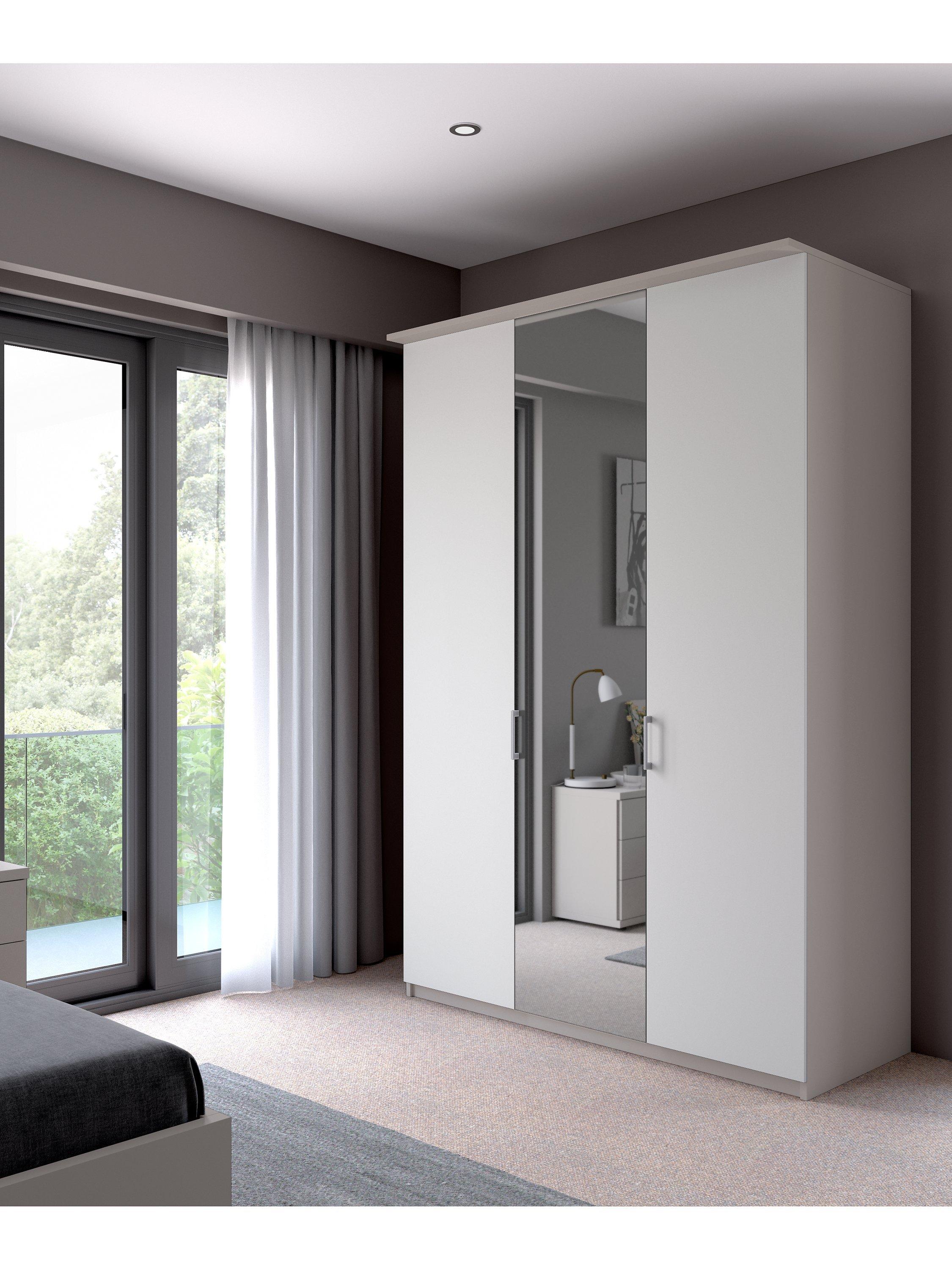 Combining style and functionality, this Elstra 150cm three-door wardrobe has clean lines and an exterior complemented with an attractive cornice detail. It's available in a choice of Rustic Oak or Matt White finishes with a contrasting mirrored middle door.