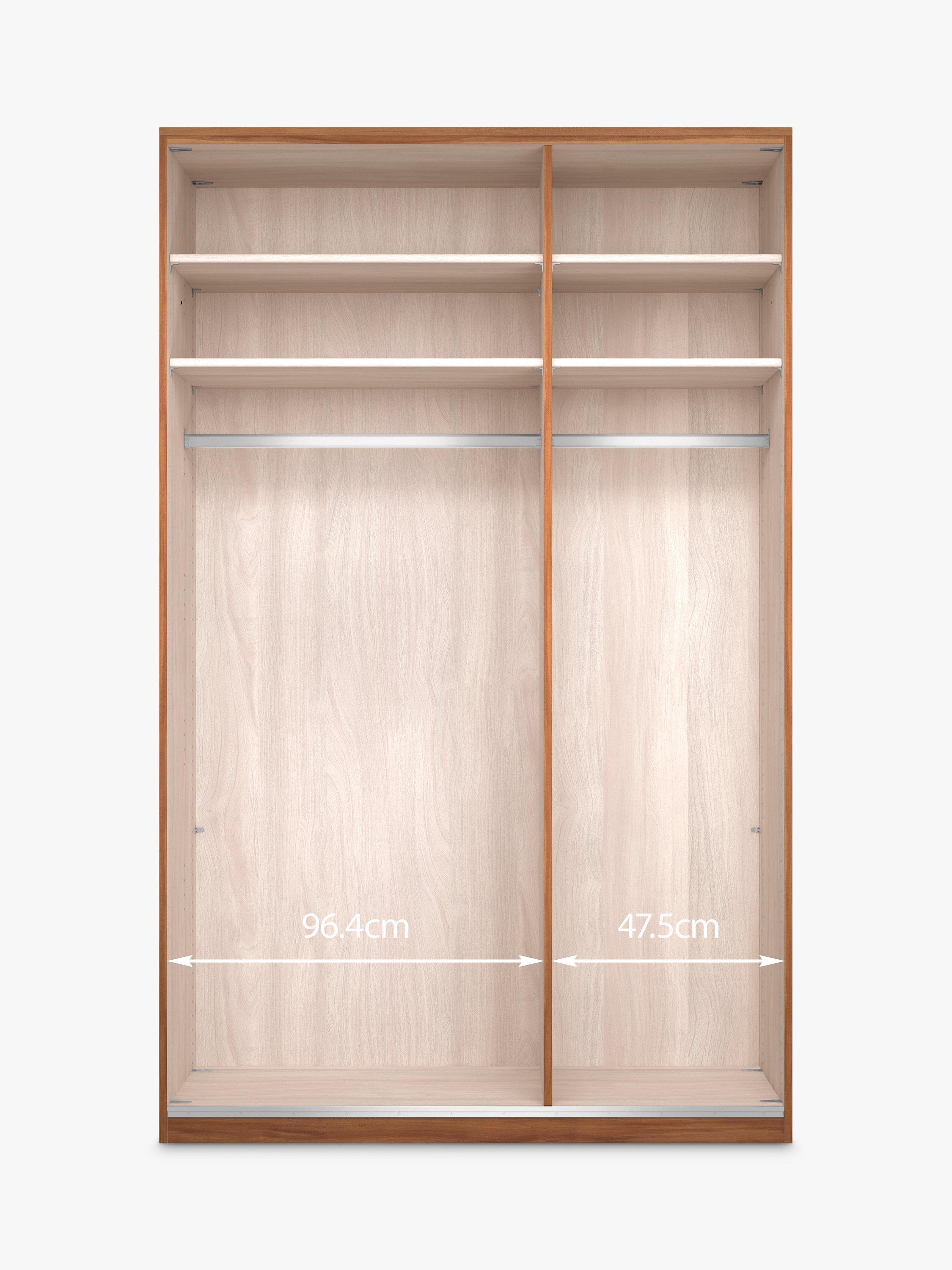 - 1. Shelf capacity 10kg2. Hanging rail capacity 40kg3. Mid-point internal shelf placement required for double hanging4. Dismantling and re-assembly required for product re-location