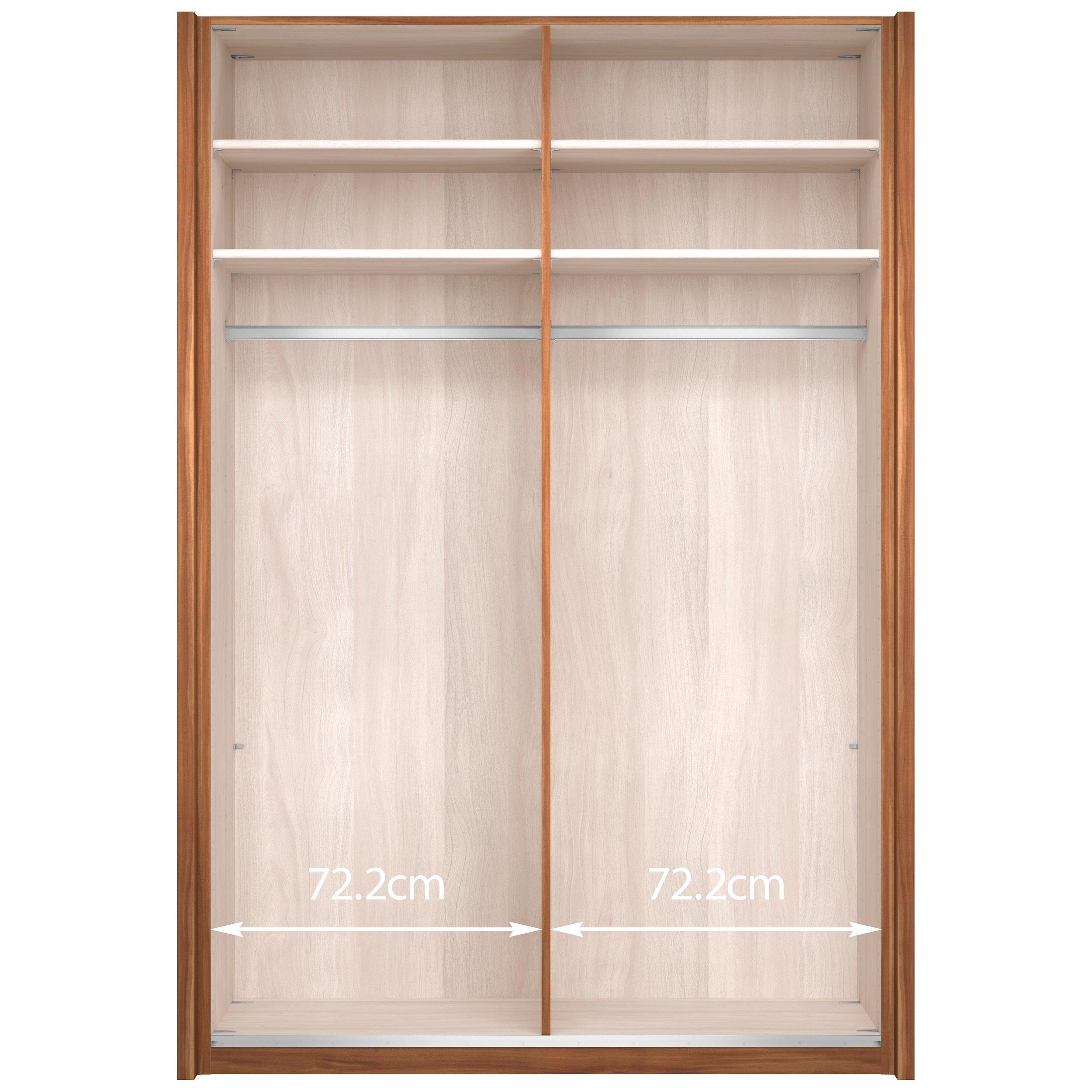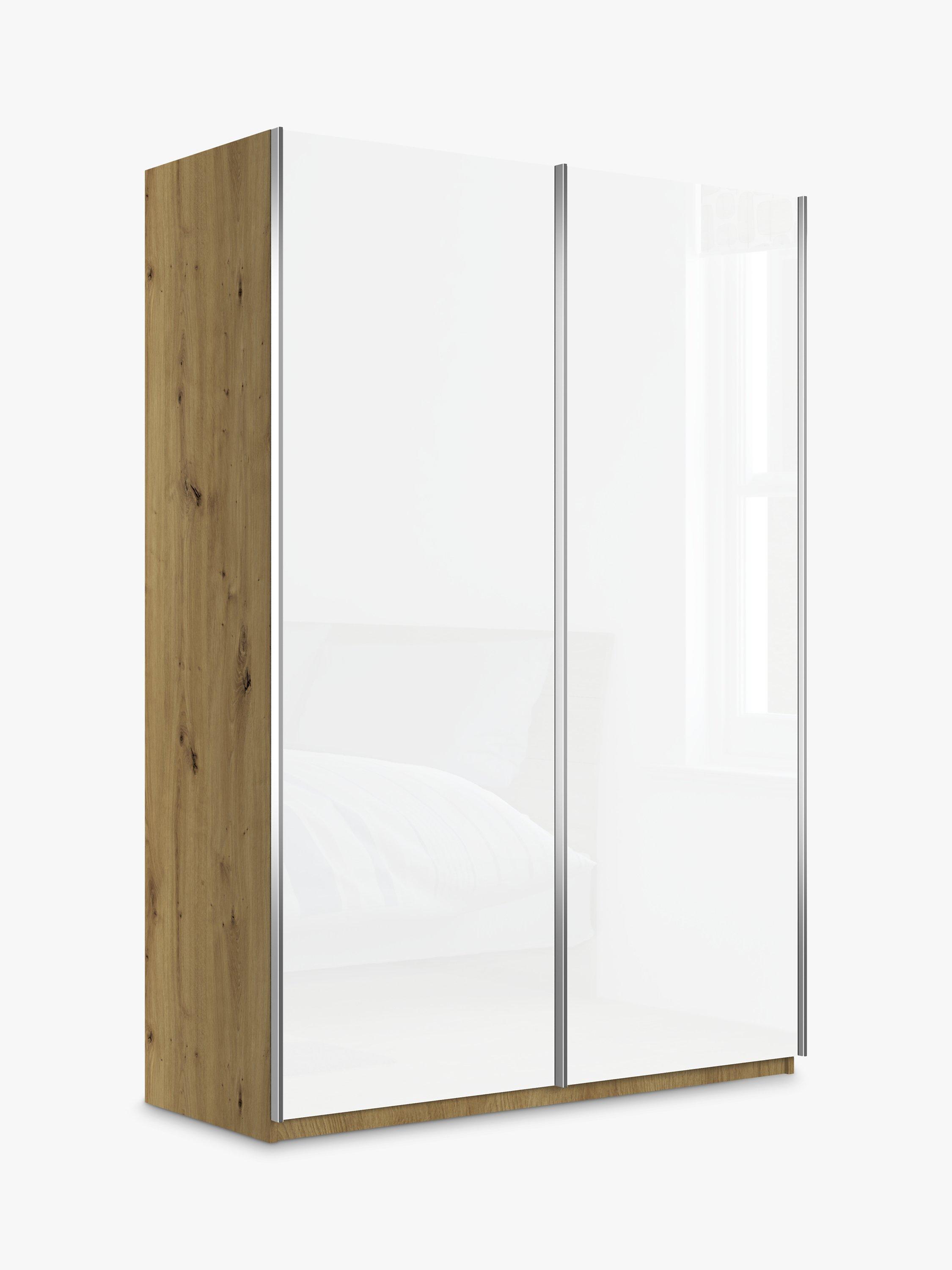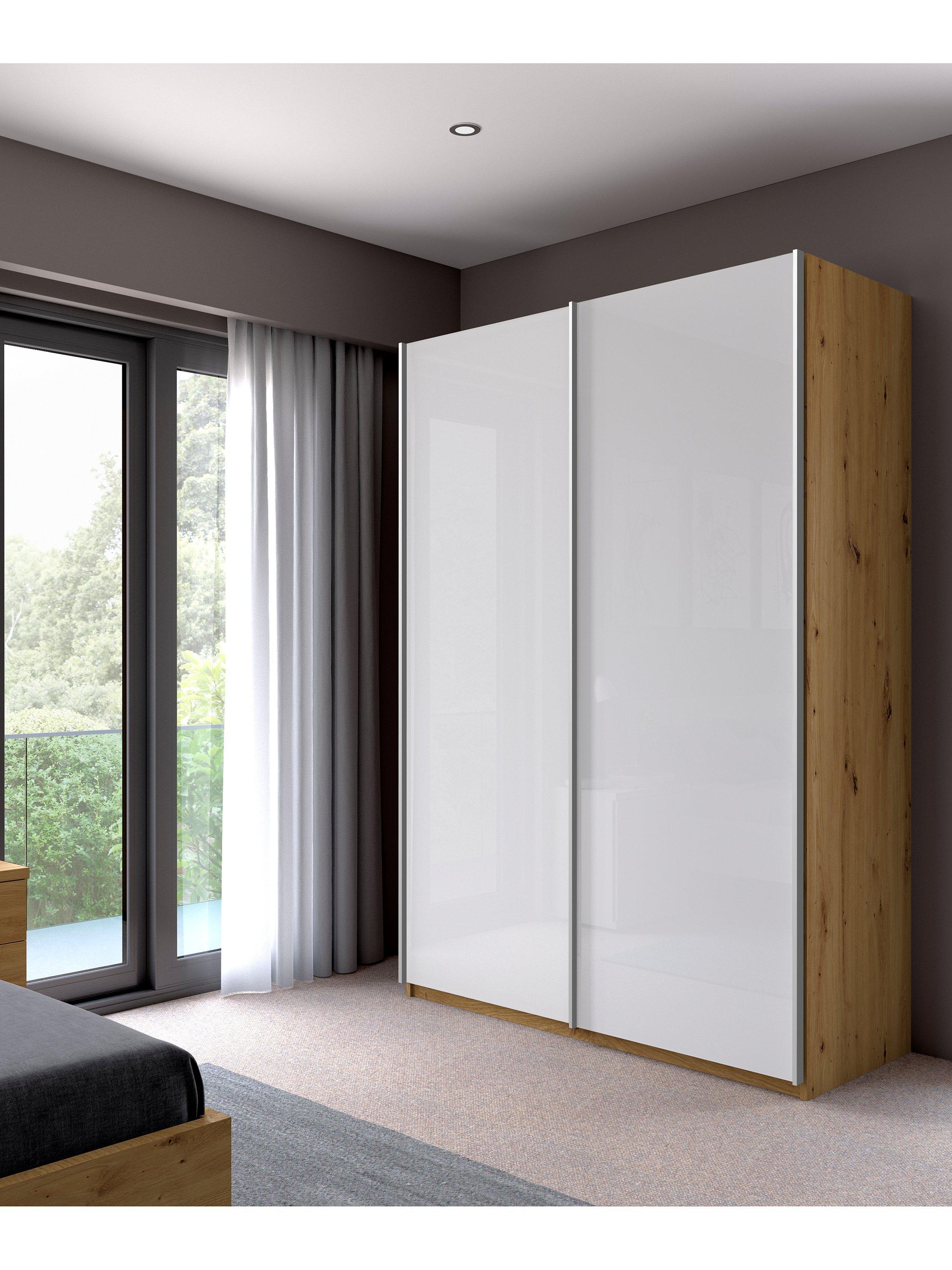 Combining style and functionality, the angular outline of the Elstra 150cm wardrobe is paired with a choice of Rustic Oak, Off White or Nocce (rich, dark, walnut) finishes and contrasting glass doors. Its contemporary appearance brings any bedroom up to date, while soft-close sliding doors ensure versatile and discreet use even in the smallest of bedrooms.
