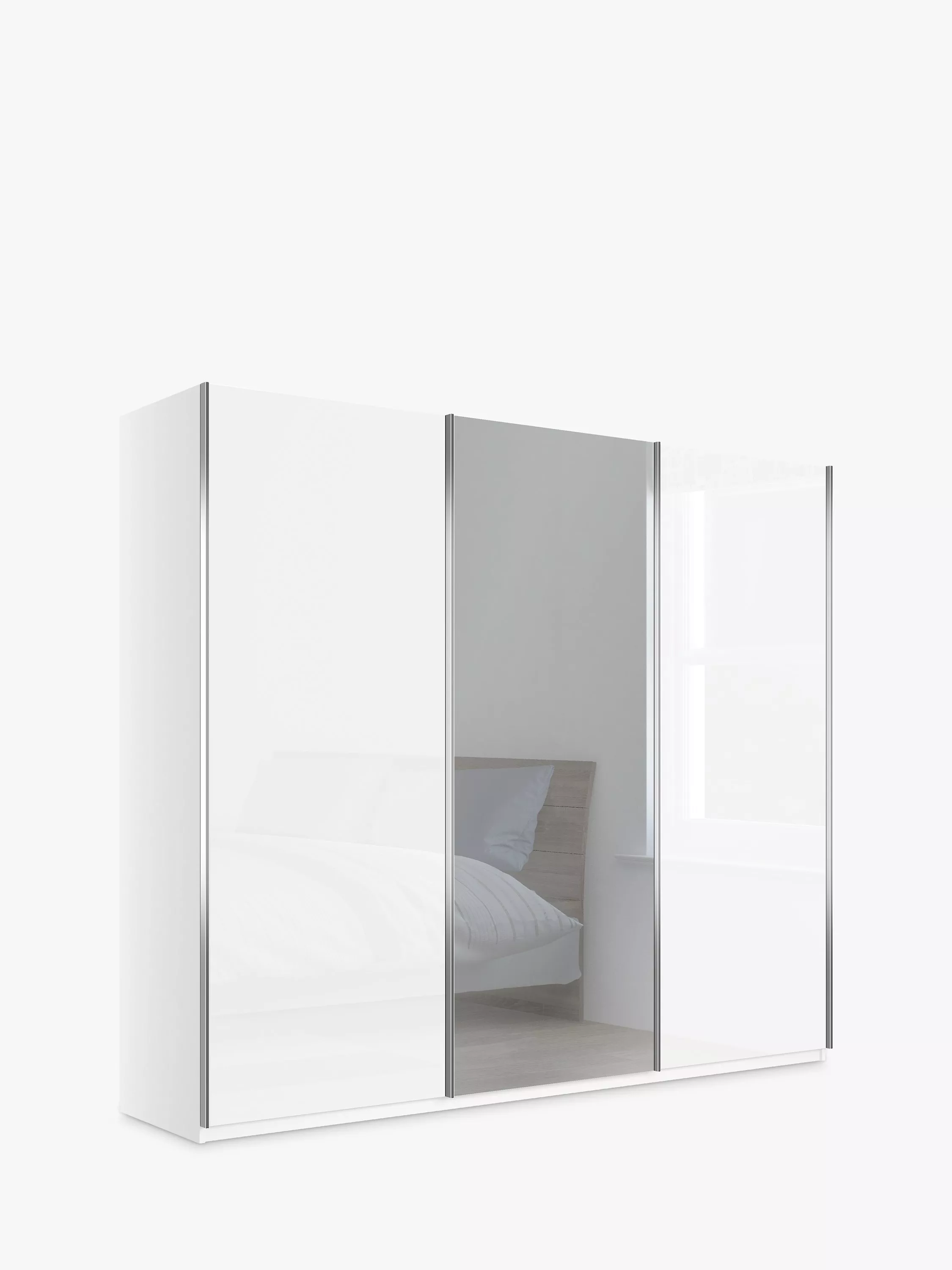 Combining style and functionality, the angular outline of the Elstra 250cm wardrobe is paired with a choice of Oak, Off White or Pebble Grey finishes and contrasting glass and mirrored doors. Its contemporary appearance brings any bedroom up to date, while soft-close sliding doors ensure versatile and discreet use even in the smallest of bedrooms.