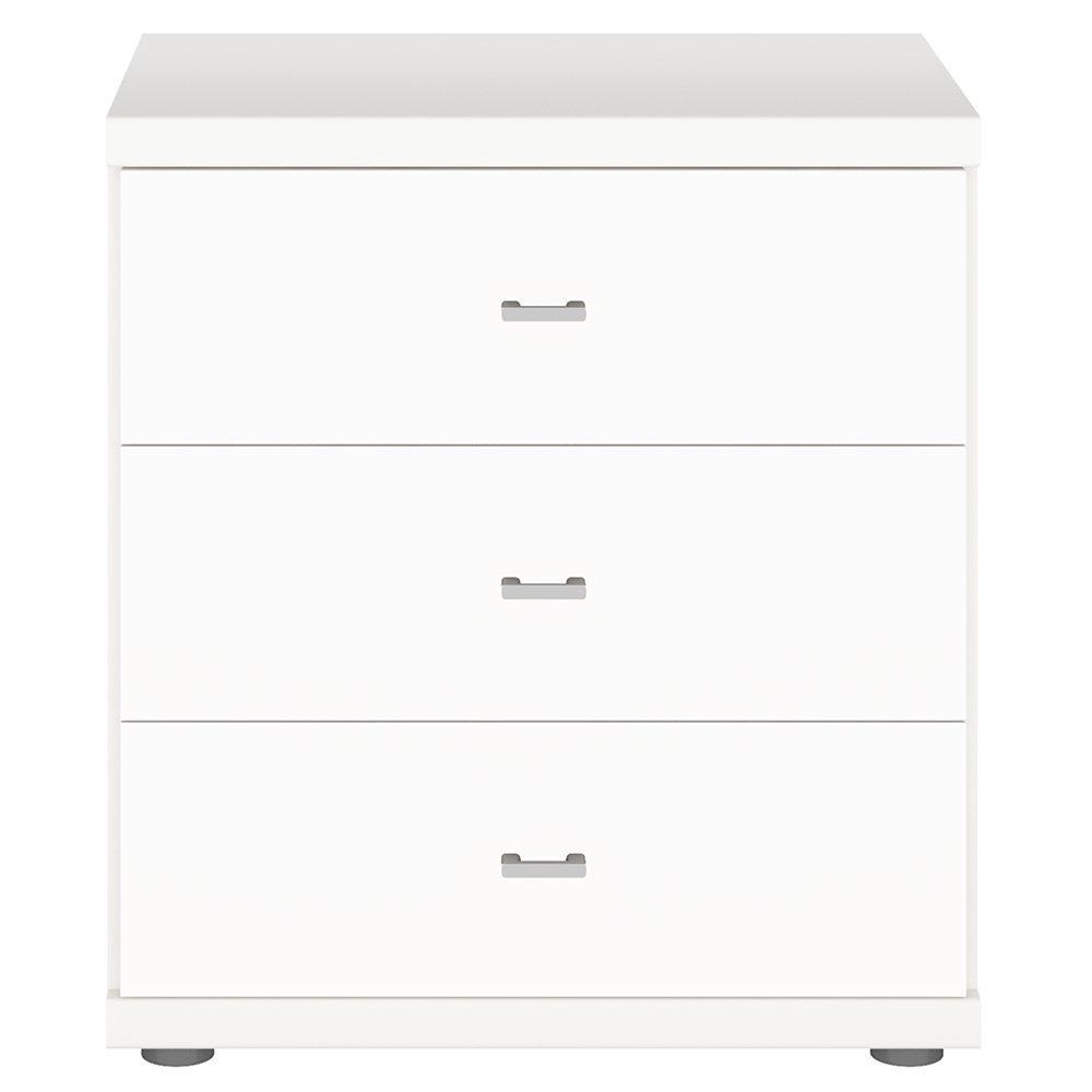 The pared-down design brings any bedroom up to date. Made with low feet, this bedside table is sturdy and makes an ideal spot for a bedside lamp. Separate your items among the three drawers, each one smoothly opening for ease of use with robust metal handles.