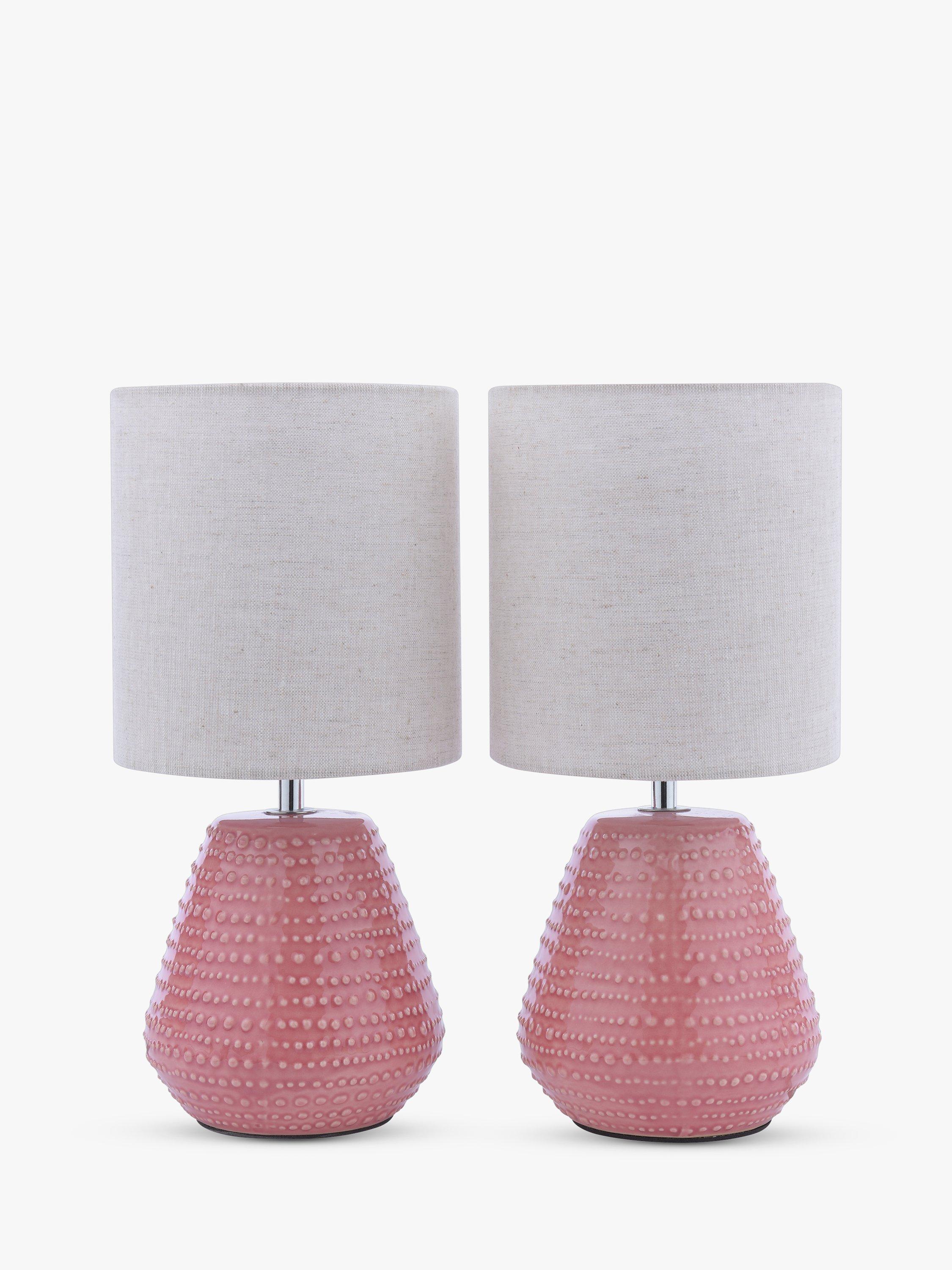 The Elwood set of two offers an eye-catching ceramic base. Finished with a stunning transparent reactive glaze which not only accentuates the textured patterned base but also adds a pop of colour. With a linen shade and fabric flex, these lamps would be fitting of any bedside table.