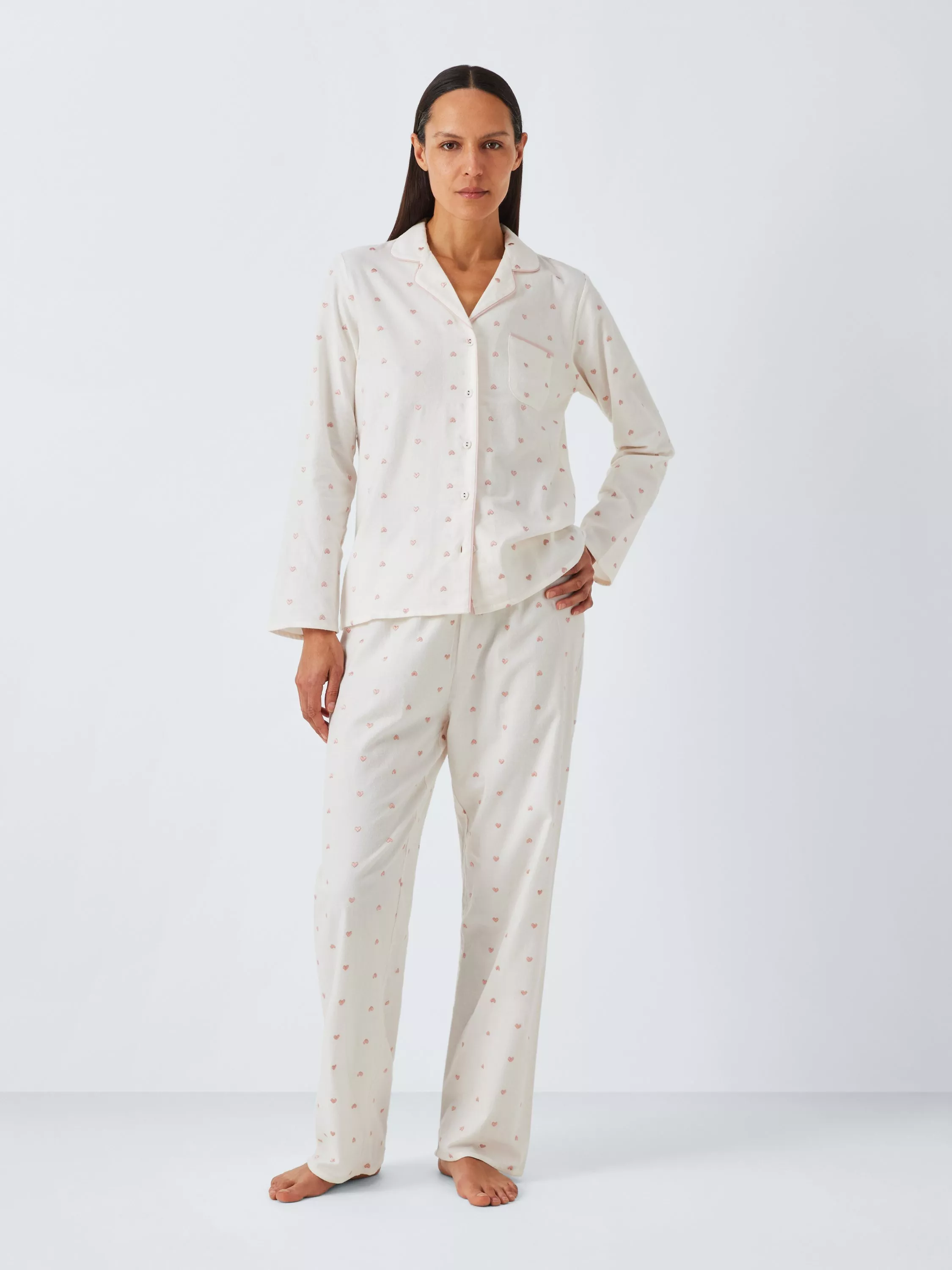 A refined set of pyjamas made from 100% cotton for softness and breathability, embroidered with hearts to match the trim detail.