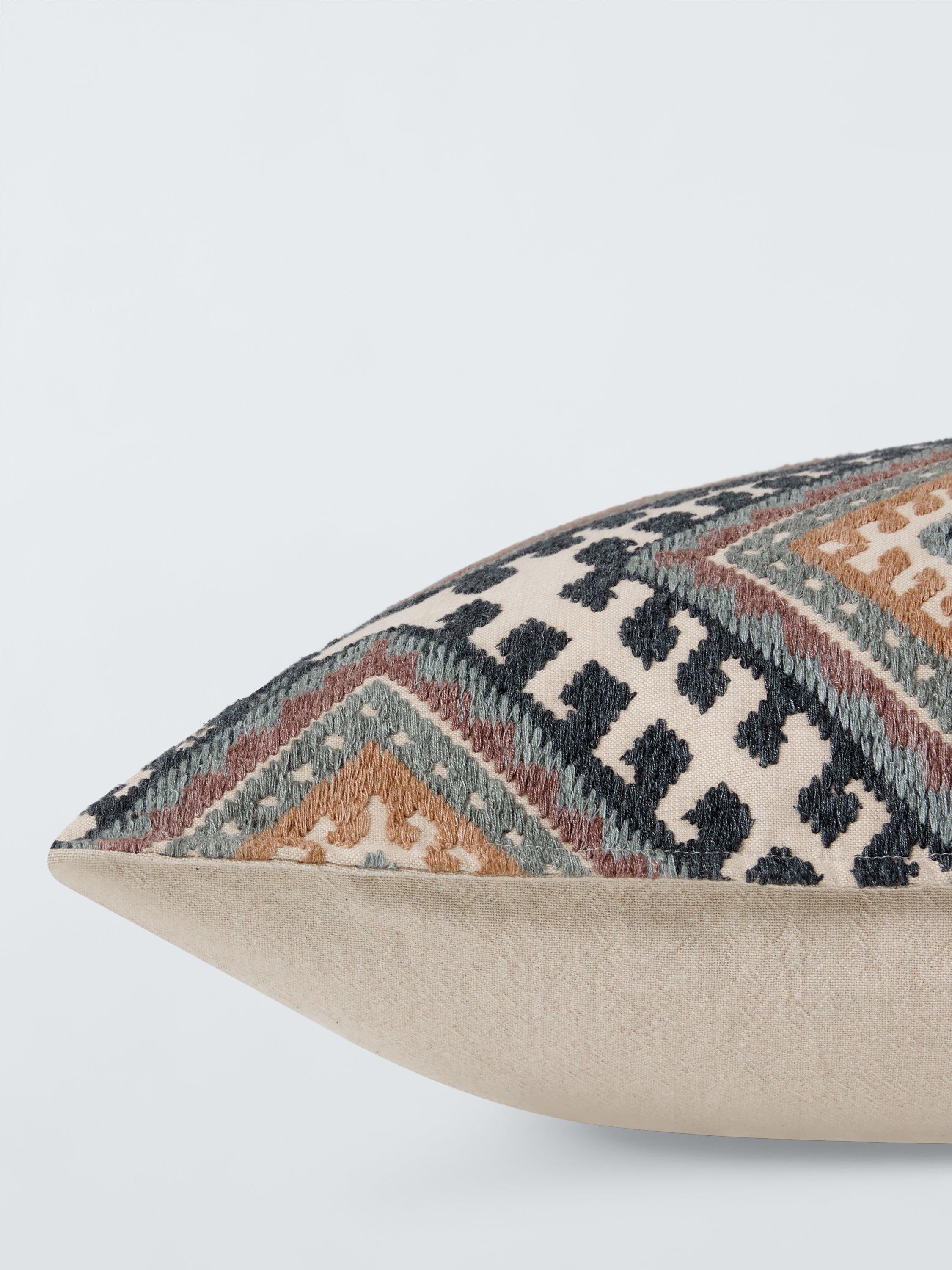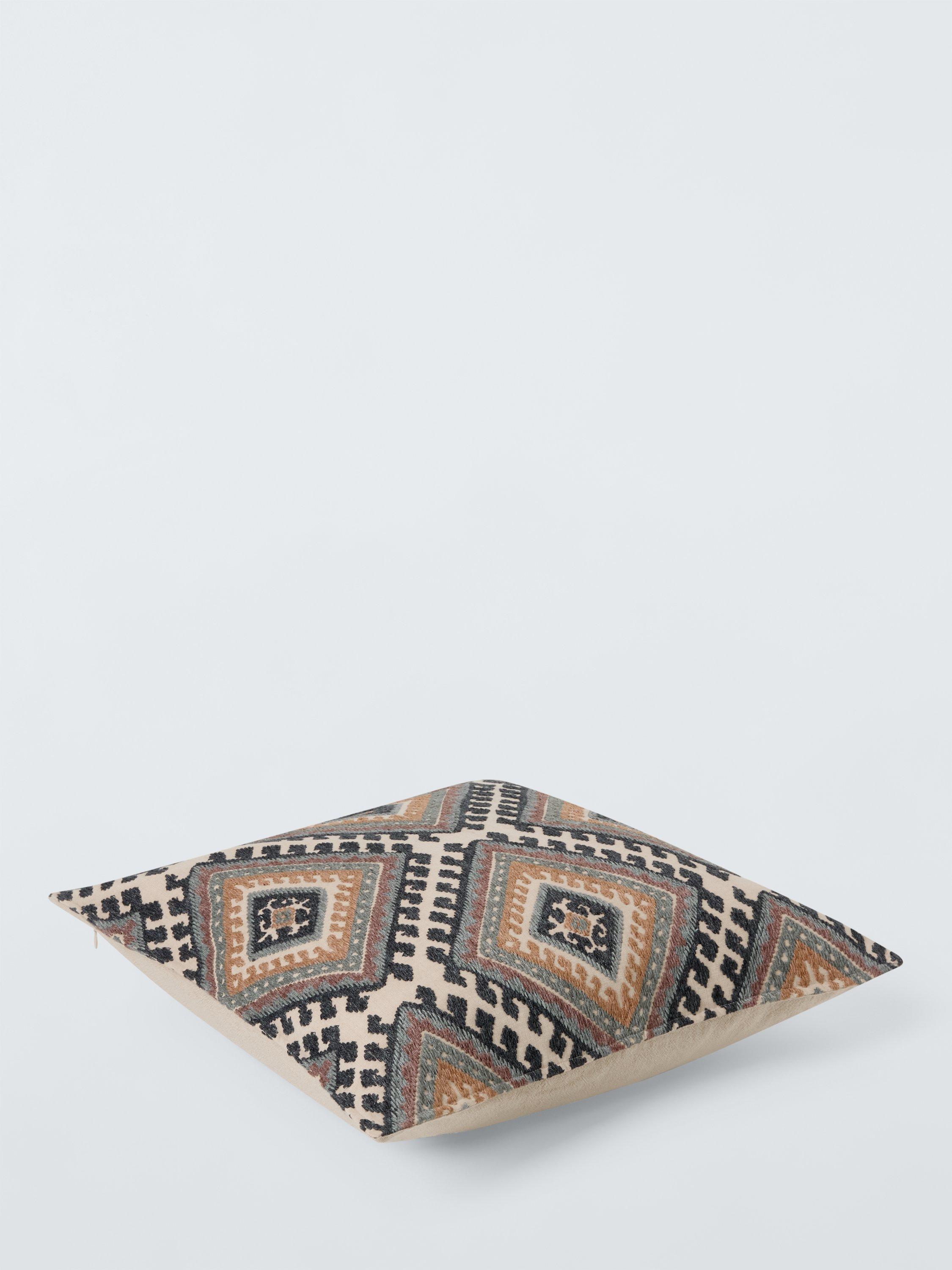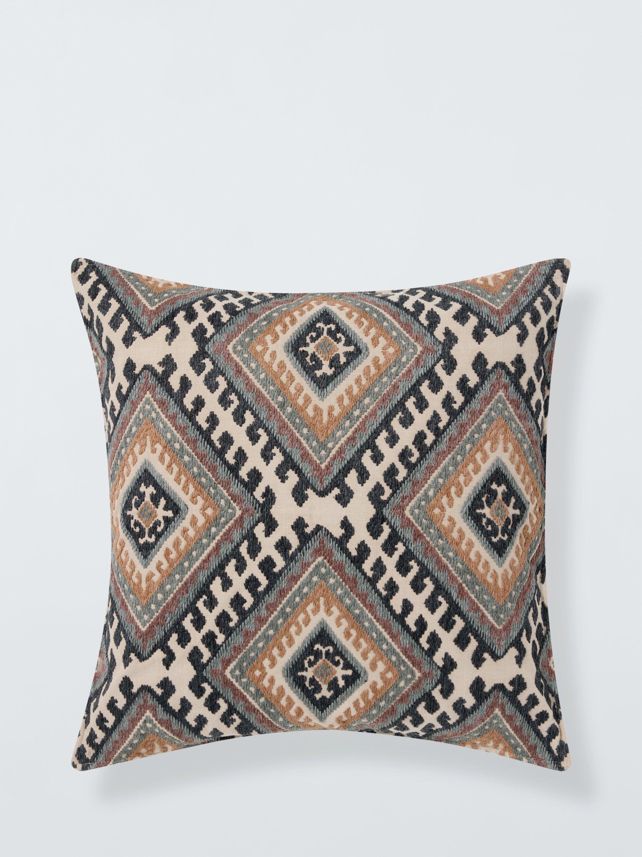 An intricately embroidered Kelim design that looks great on a plain sofa. The reverse is plain.