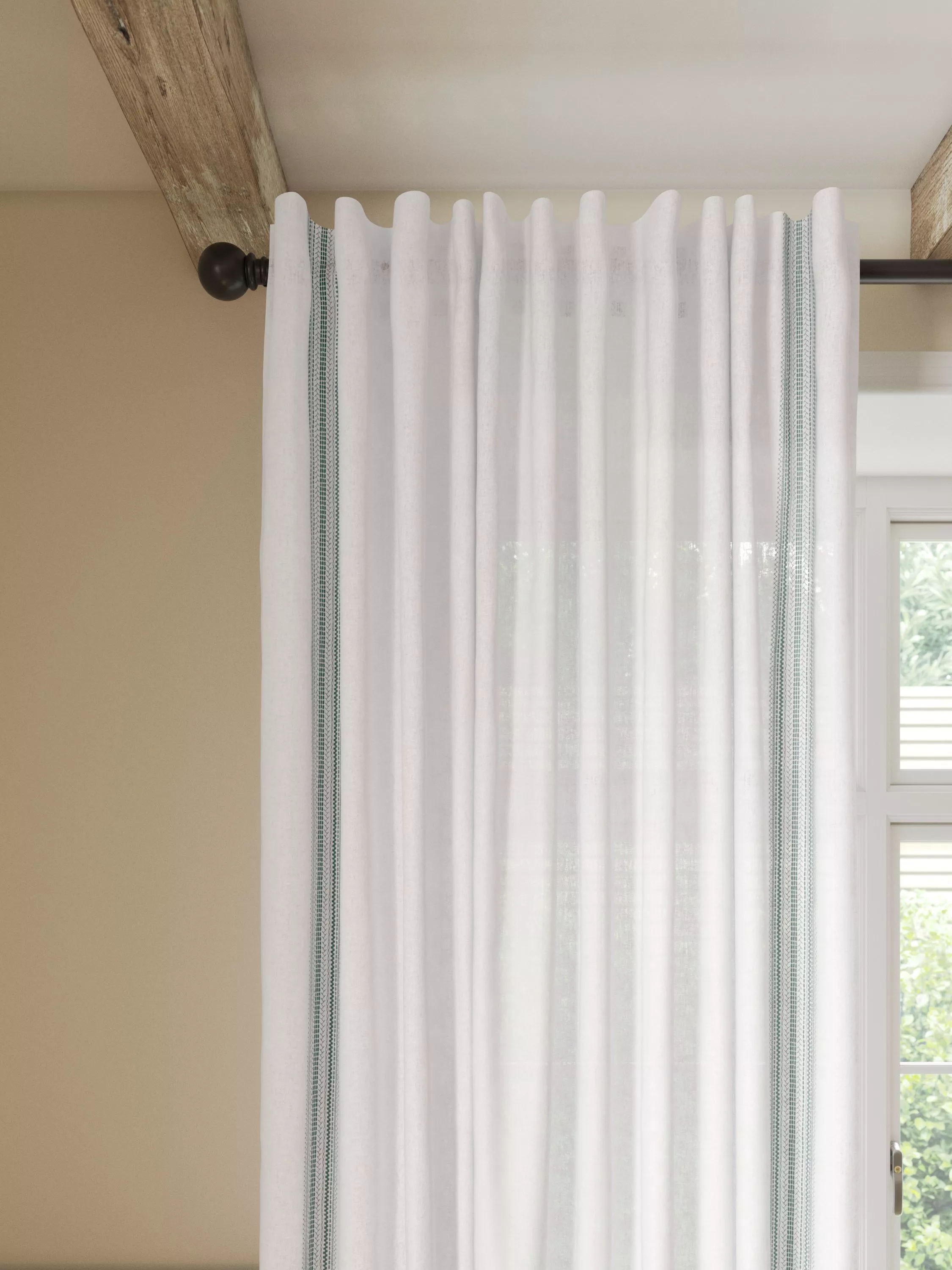 John LewisEmbroidered Slot Top/Hidden Tab Voile Panel, Sage/White
