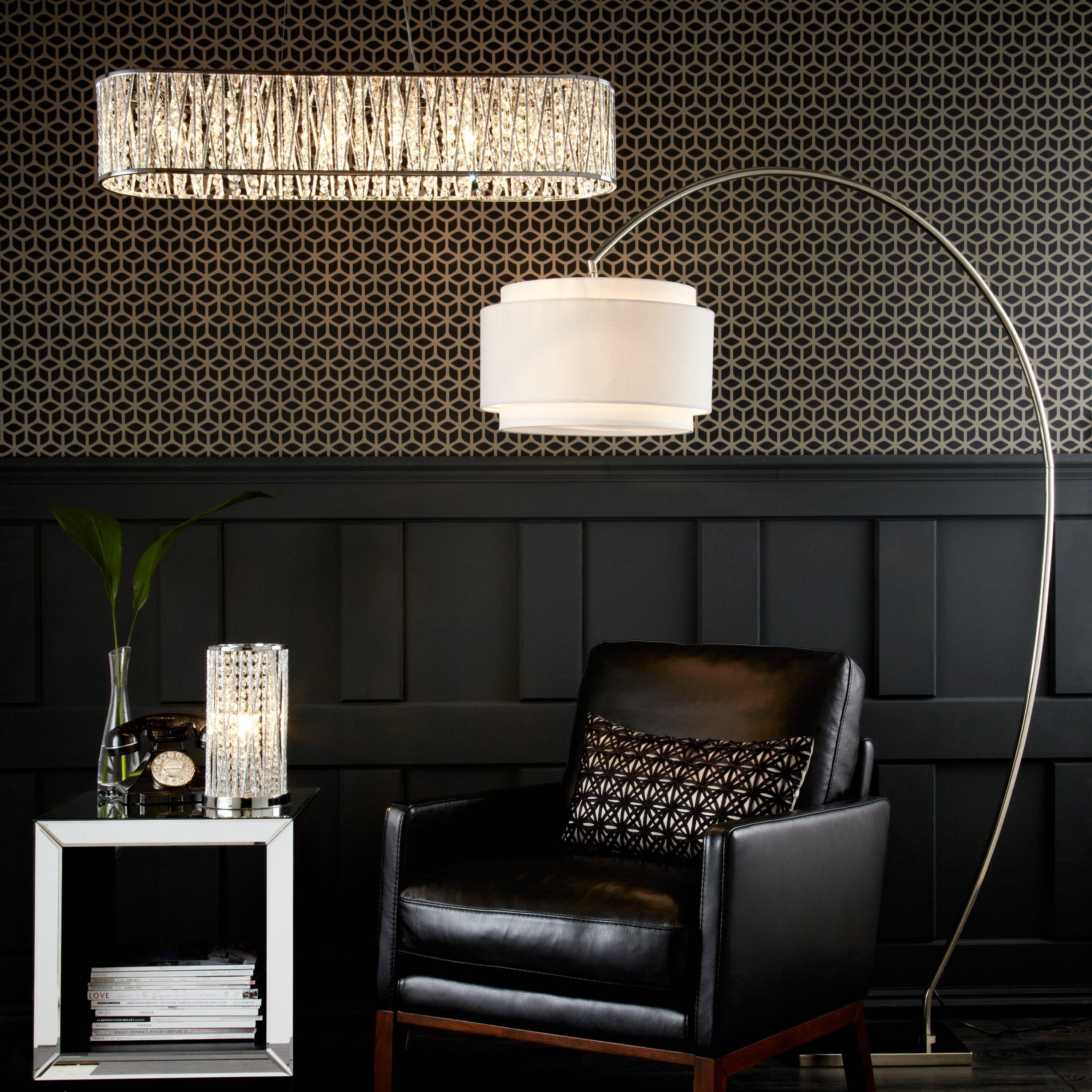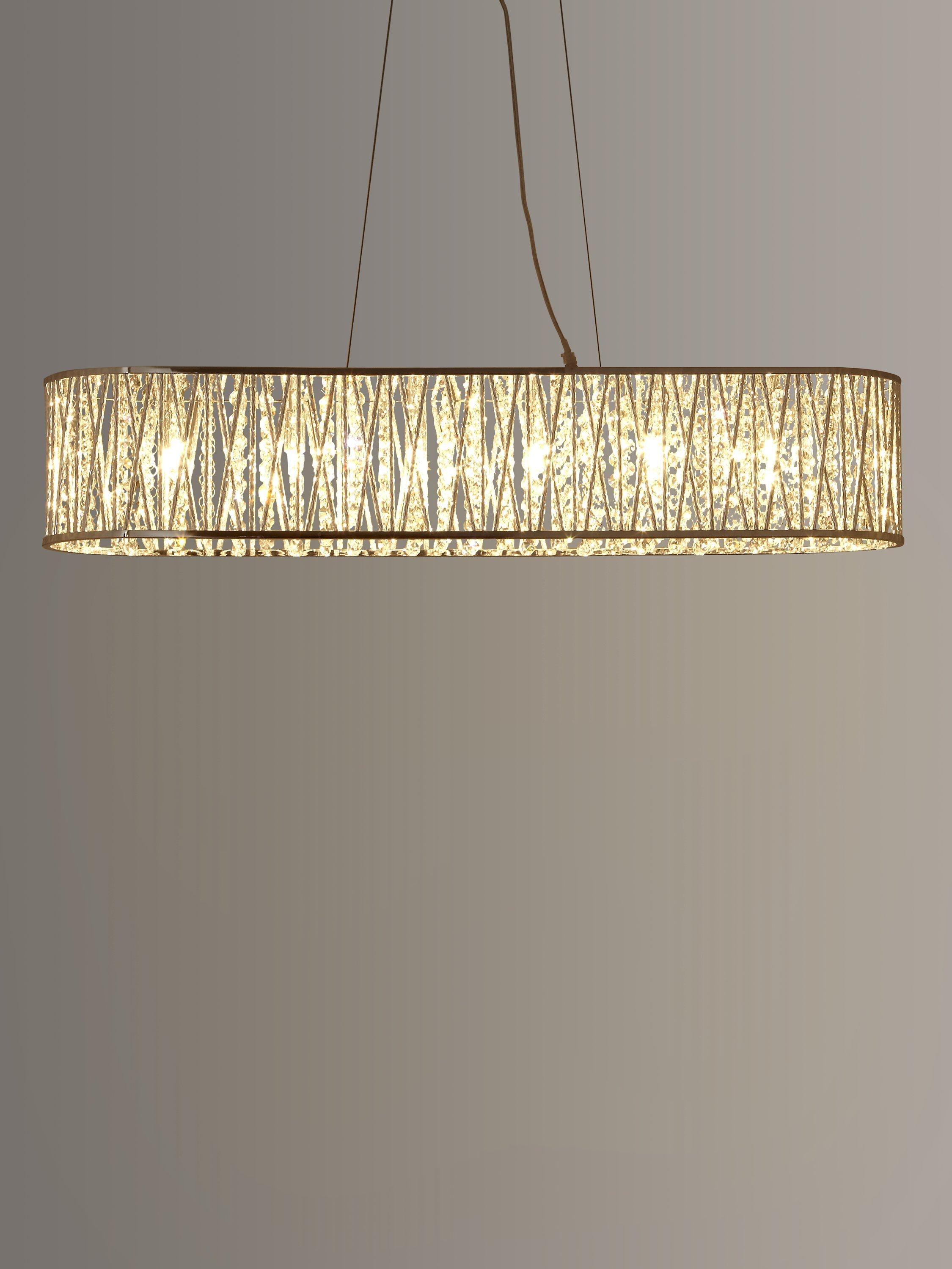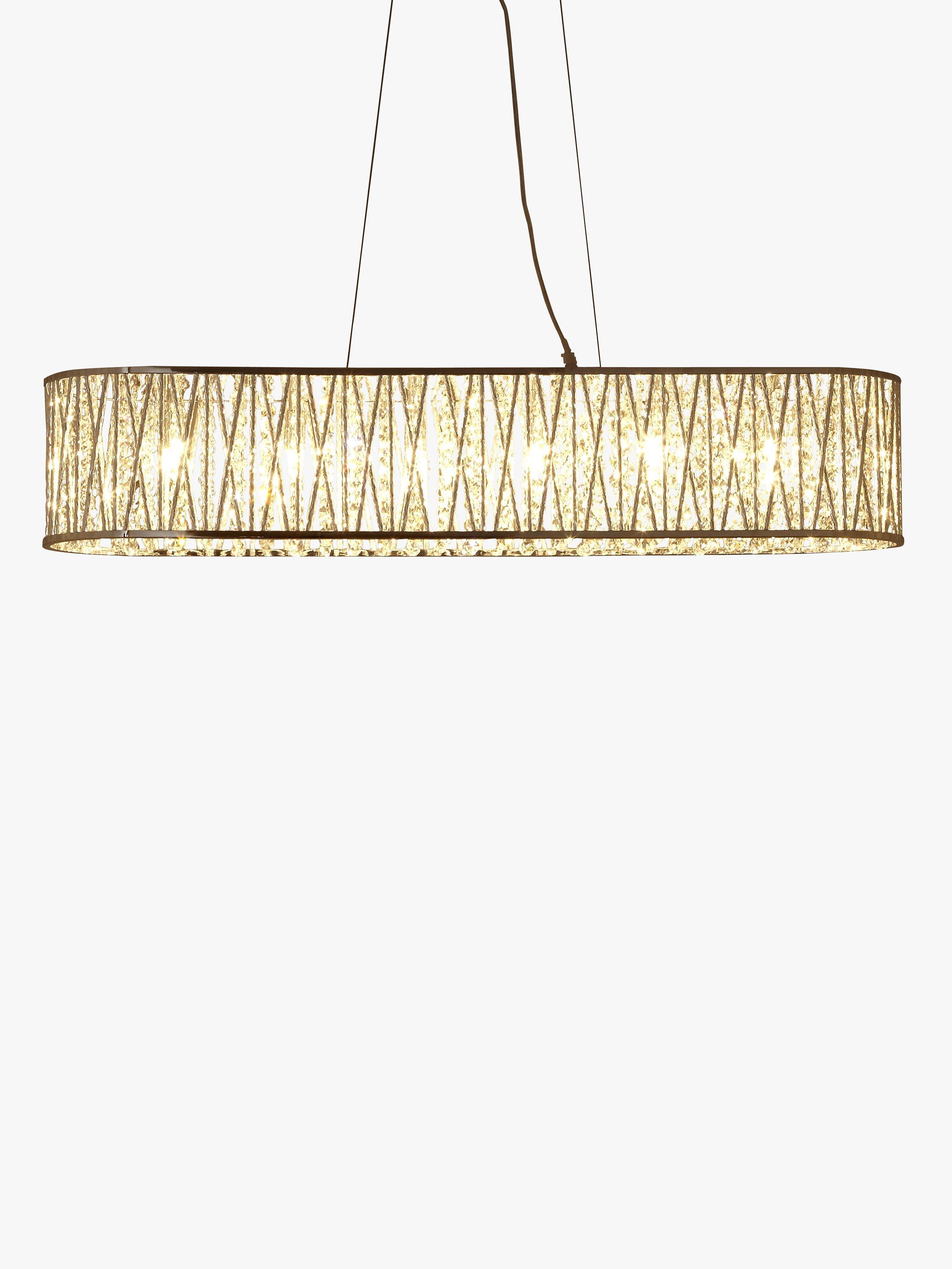Hang this long light above a dining table for the ultimate in chic luxury. The beautiful bar pendant is lavished in lines of gorgeous beads with a high shine metal mesh running around the outside. It looks stunning when lit, with the light shining through the glass and casting a gorgeous display against its surroundings.