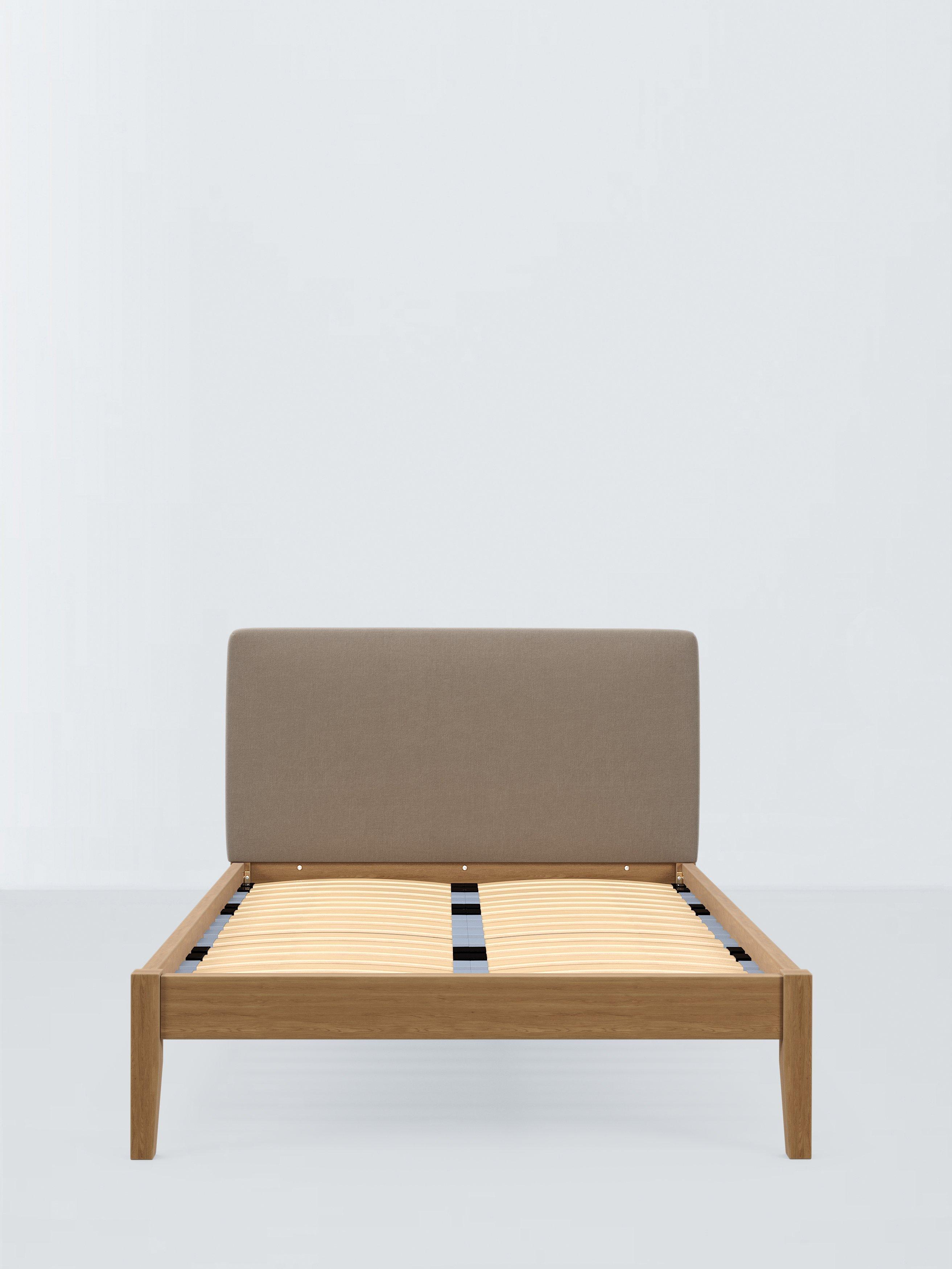 Meet Emilia Kitami, our bed frame which is designed with an upholstered headboard and a sturdy solid oak base. It's a classic, clean-lined style but the well-padded headboard gives it a modern edge, and it can be upholstered in a fabric of your choice. We've added sprung Smart Slats to the base which provide enhanced support where you need it most.