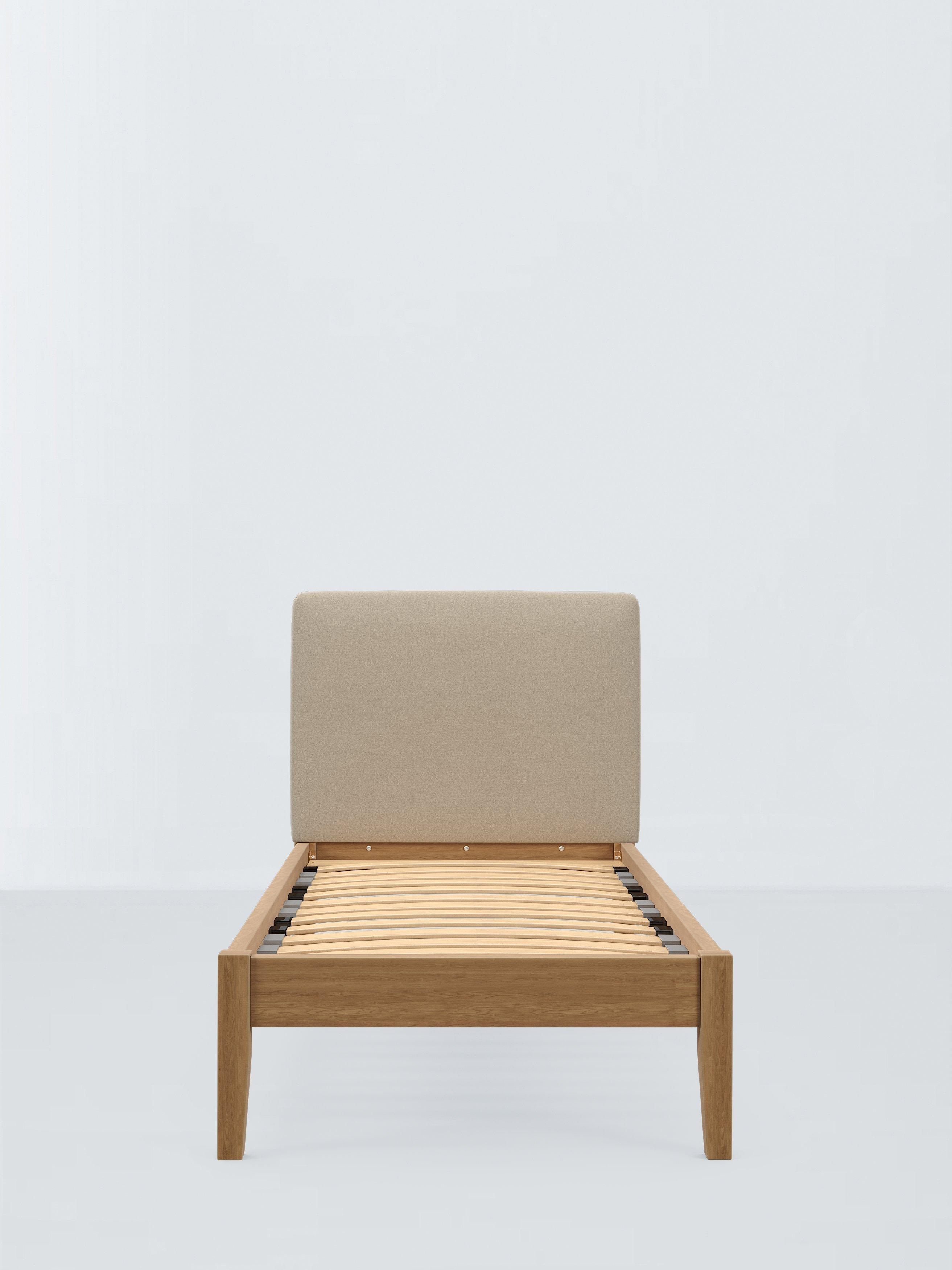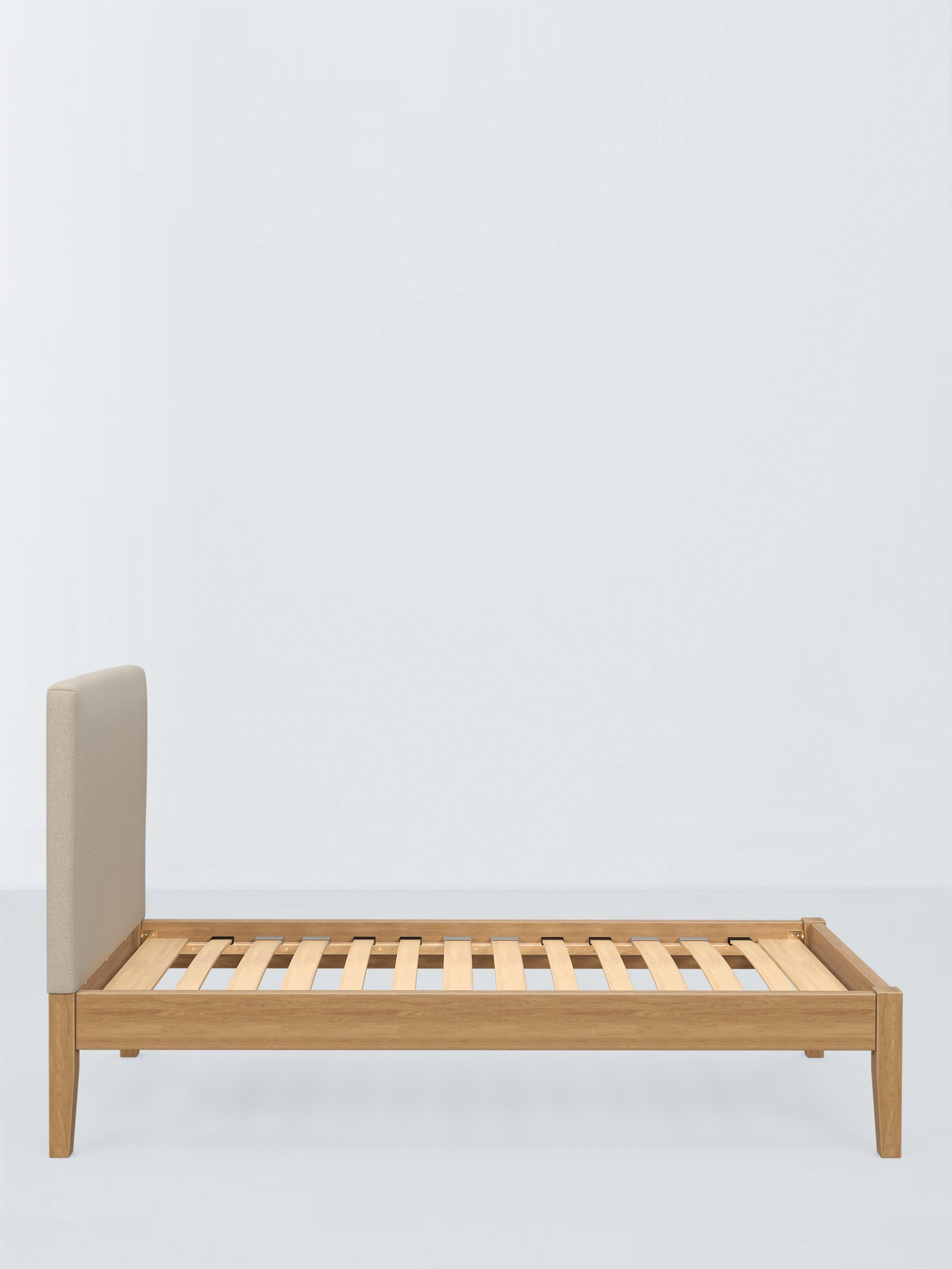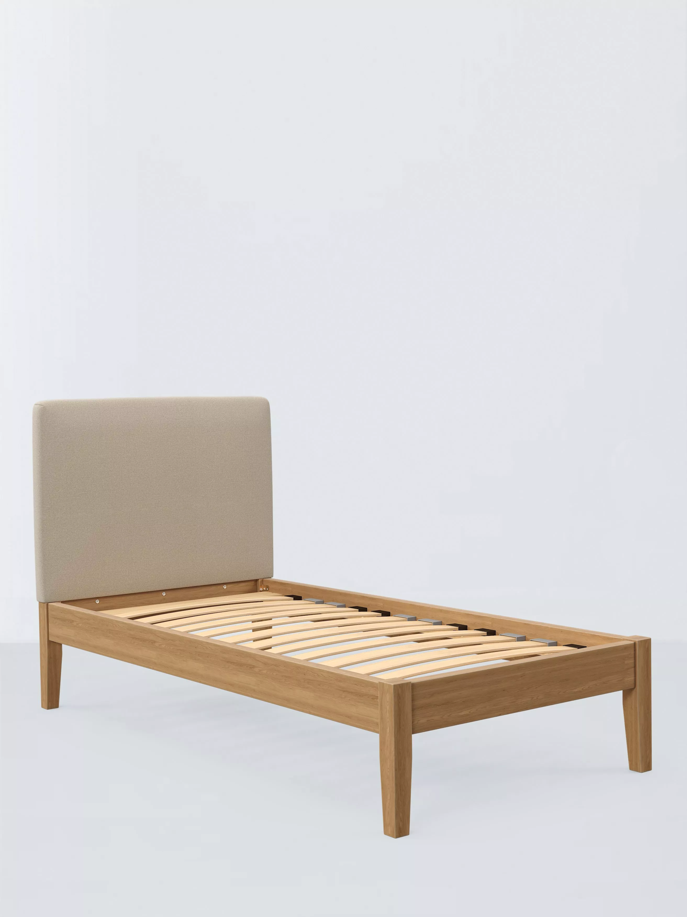 Meet Emilia Kitami, our bed frame which is designed with an upholstered headboard and a sturdy solid oak base. It's a classic, clean-lined style but the well-padded headboard gives it a modern edge, and it can be upholstered in a fabric of your choice. We've added sprung Smart Slats to the base which provide enhanced support where you need it most.