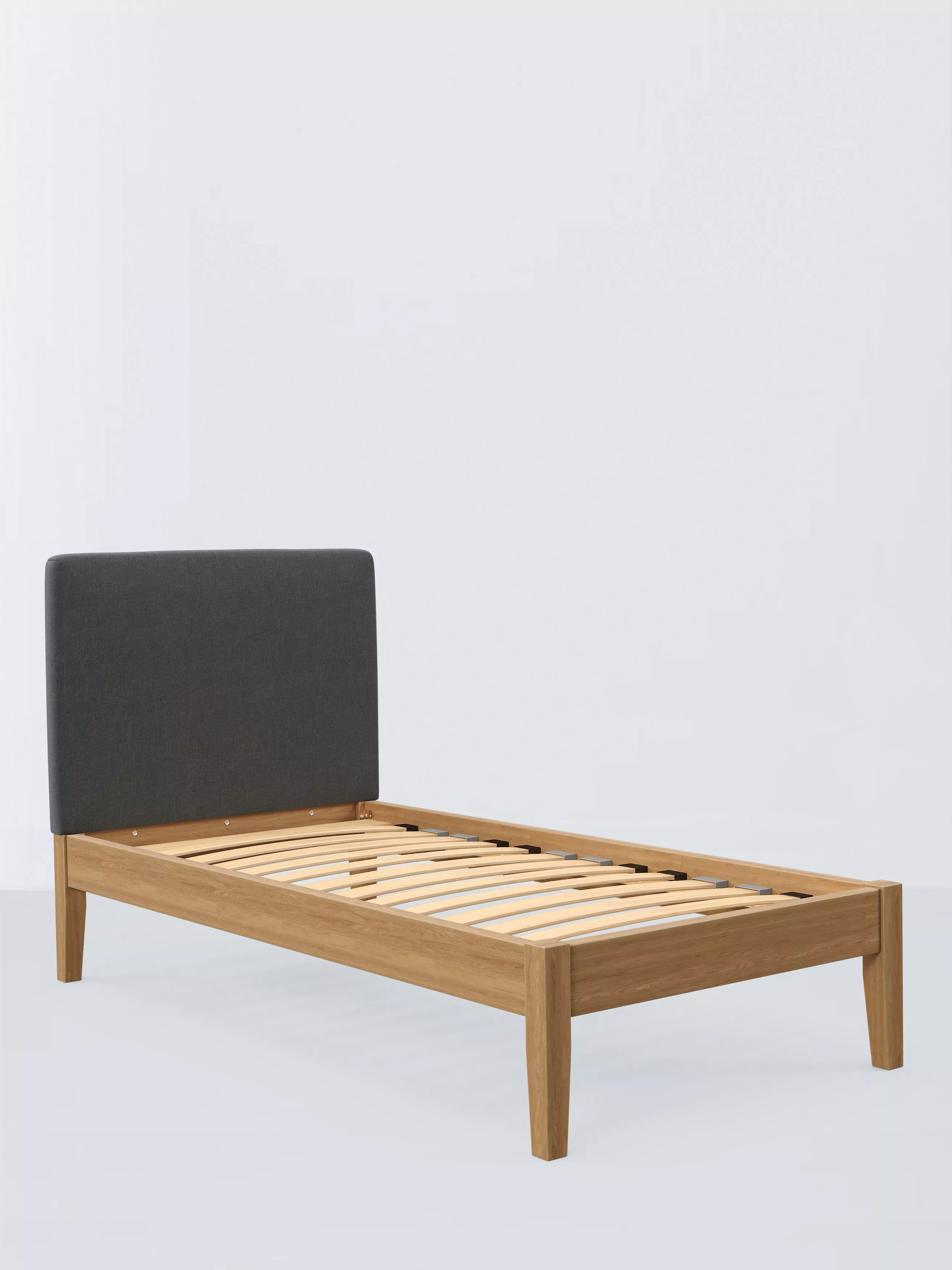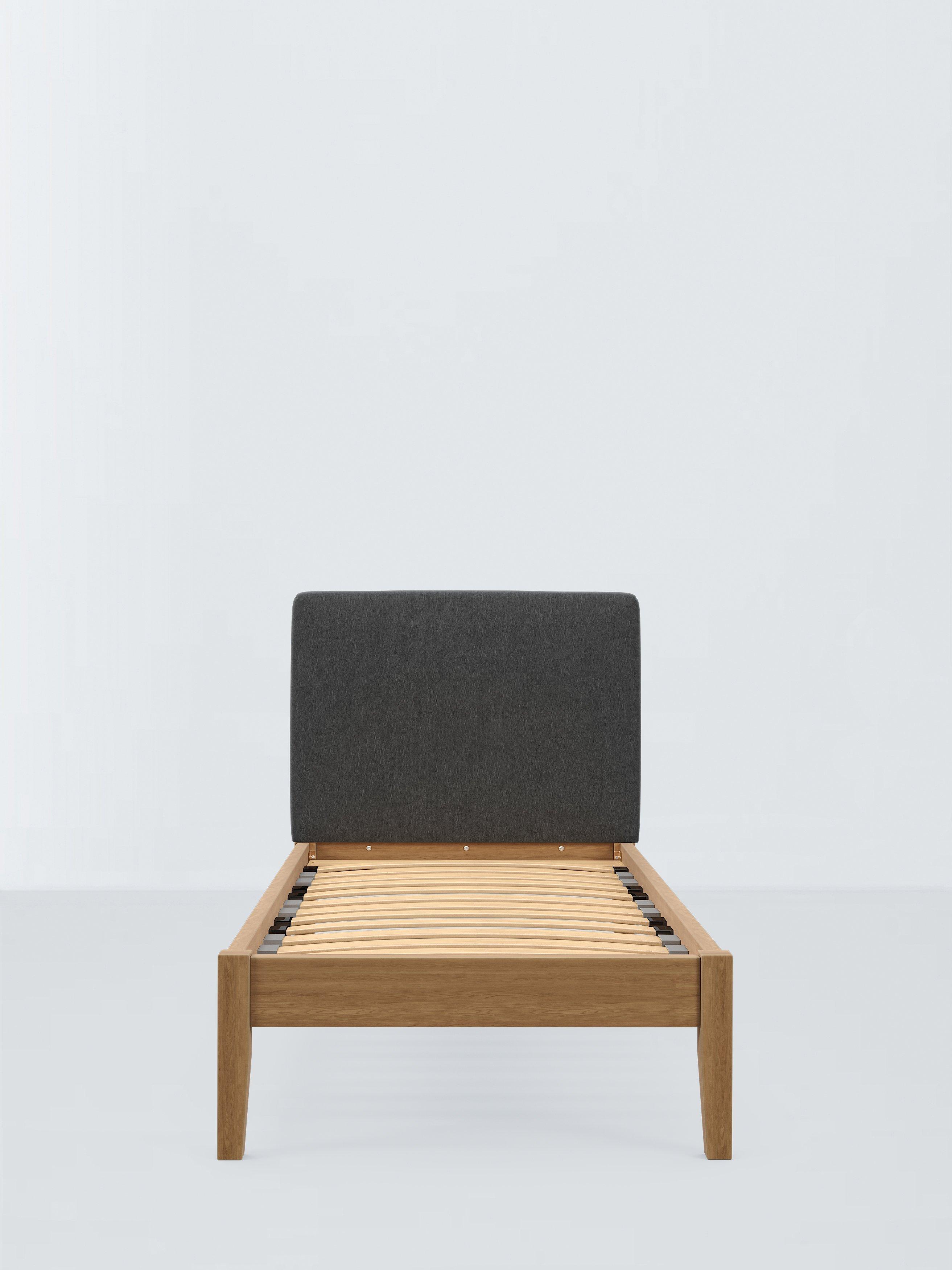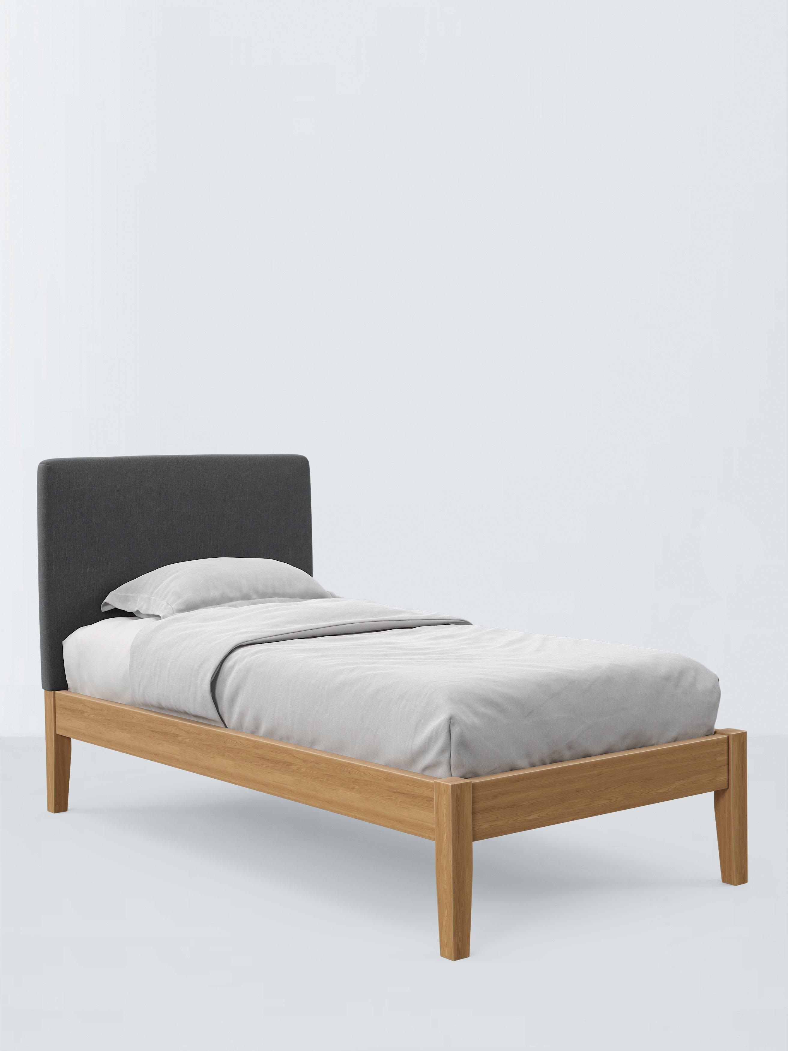 Meet Emilia Kitami, our bed frame which is designed with an upholstered headboard and a sturdy solid oak base. It's a classic, clean-lined style but the well-padded headboard gives it a modern edge, and it can be upholstered in a fabric of your choice. We've added sprung Smart Slats to the base which provide enhanced support where you need it most.