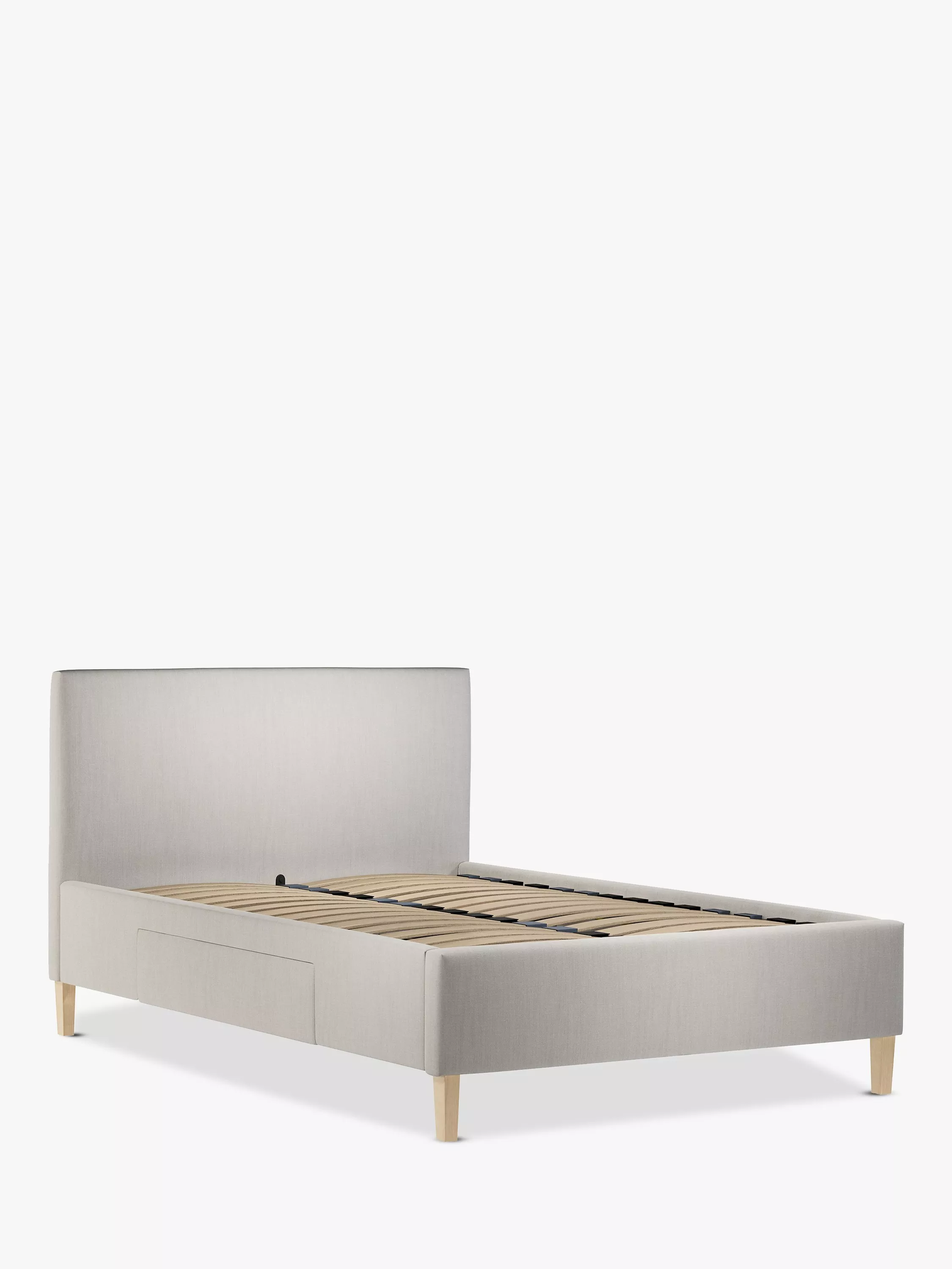 We've kept the design of our Emily storage bed frame simple and clean-lined so it's a practical choice for modern bedrooms. Easy to assemble and made from high-quality timbers, its versatile shape incorporates a large and well-padded headboard and there's a spacious, soft-close drawer on either side of the frame. We've added sprung slats in the base to provide a more supportive foundation for your mattress.