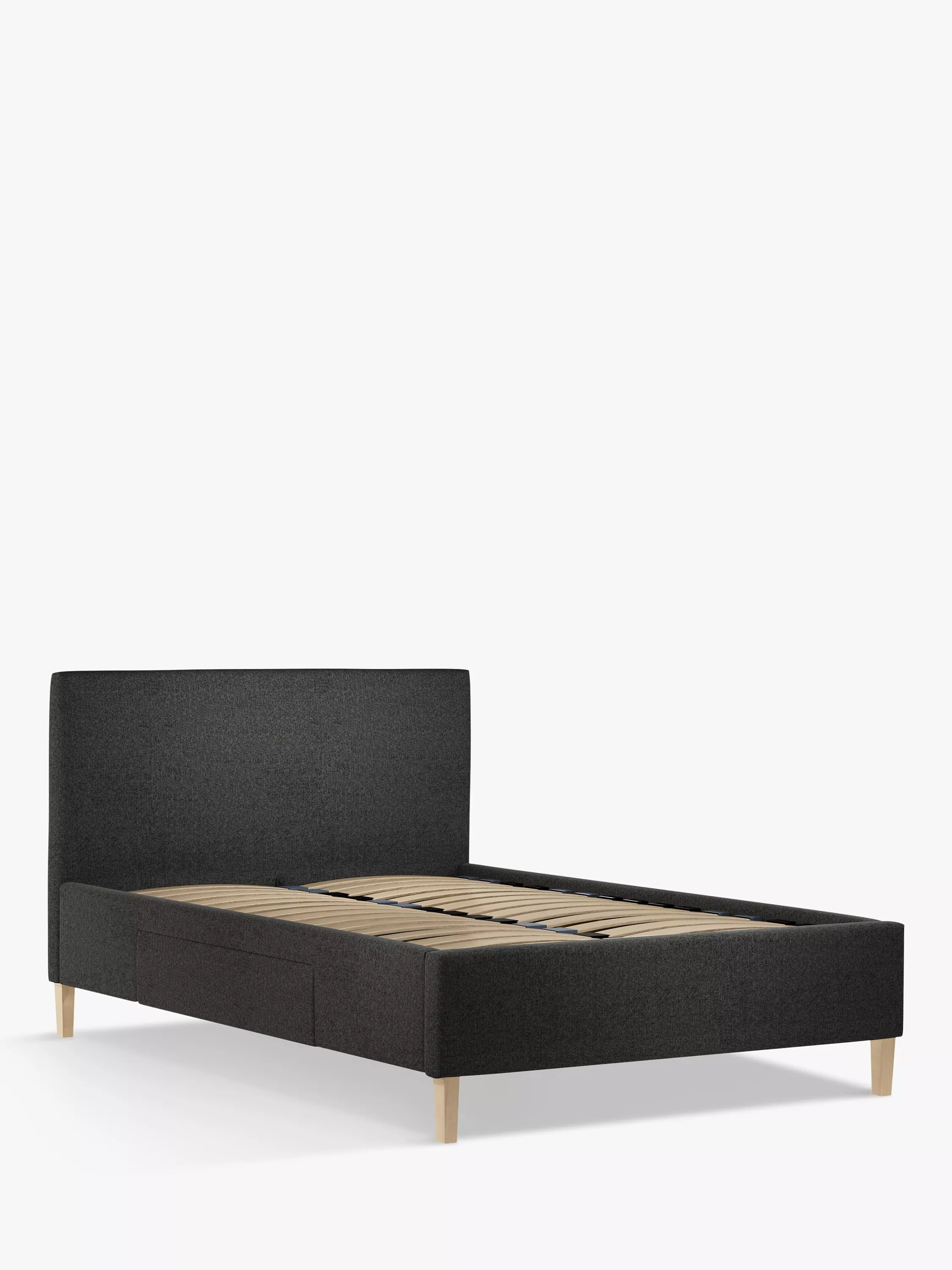 We've kept the design of our Emily storage bed frame simple and clean-lined so it's a practical choice for modern bedrooms. Easy to assemble and made from high-quality timbers, its versatile shape incorporates a large and well-padded headboard and there's a spacious, soft-close drawer on either side of the frame. We've added sprung slats in the base to provide a more supportive foundation for your mattress.
