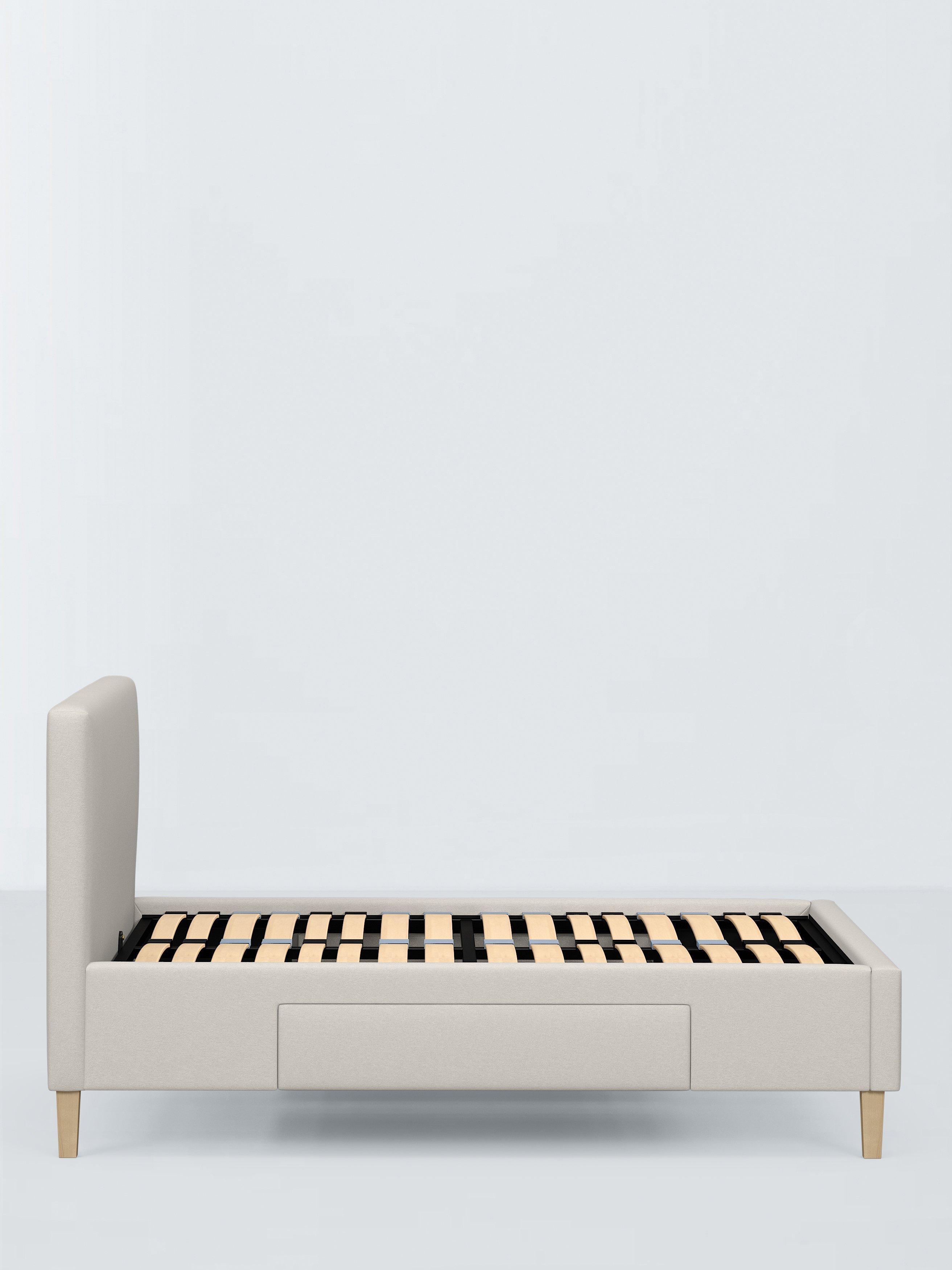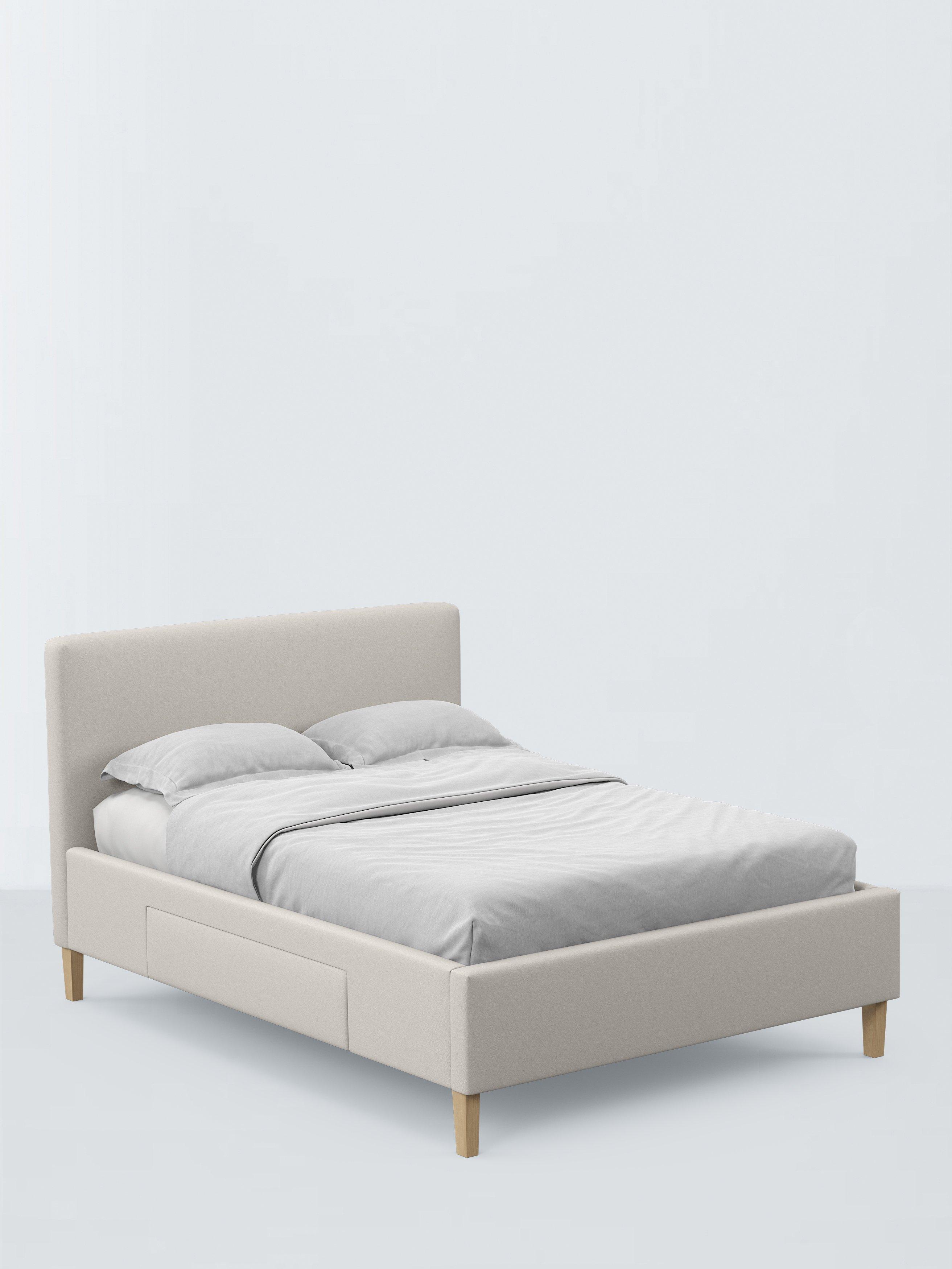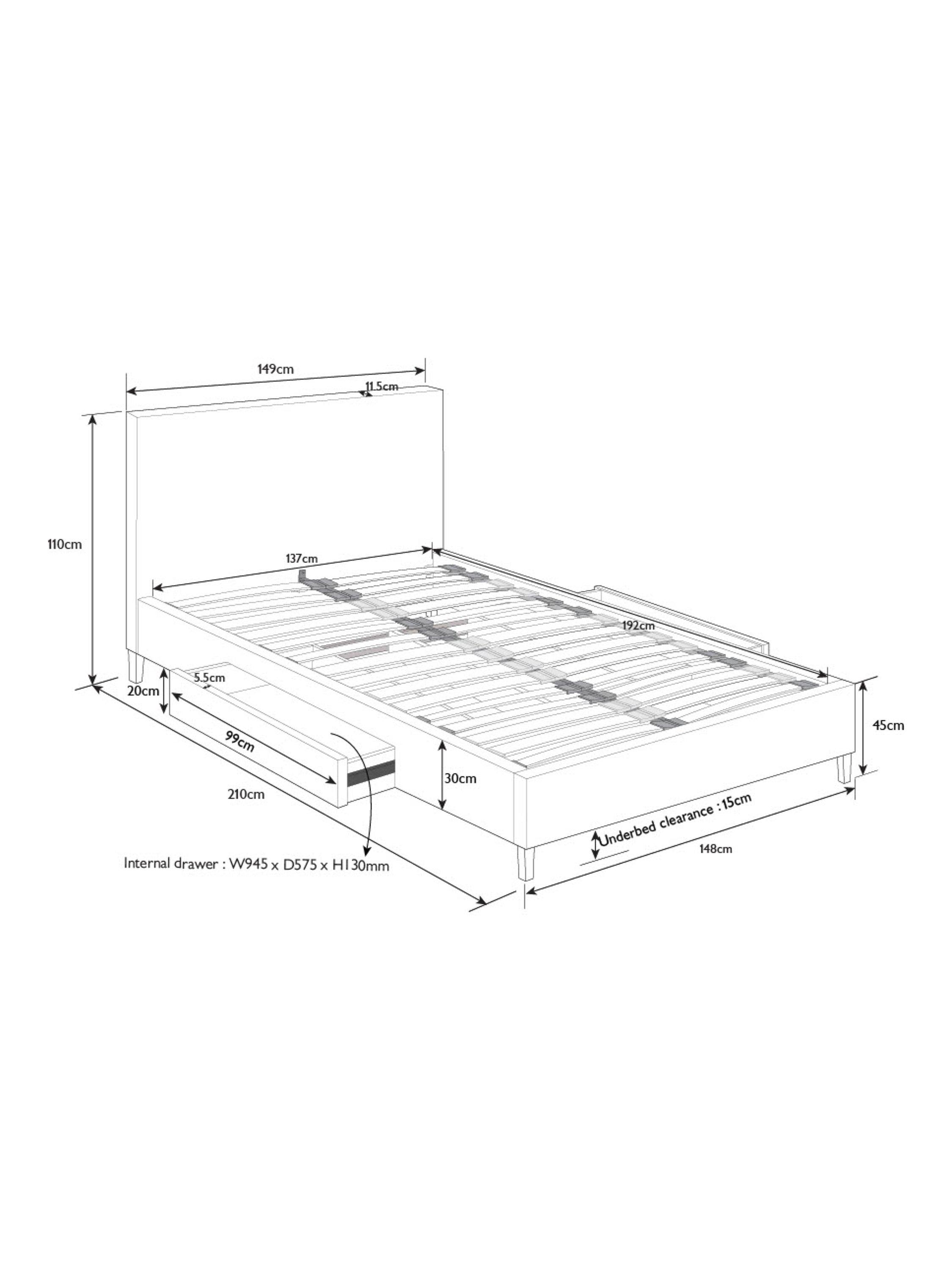We've kept the design of our Emily storage bed frame simple and clean-lined so it's a practical choice for modern bedrooms. Easy to assemble and made from high-quality timbers, its versatile shape incorporates a large and well-padded headboard and there's a spacious, soft-close drawer on either side of the frame. We've added sprung slats in the base to provide a more supportive foundation for your mattress.